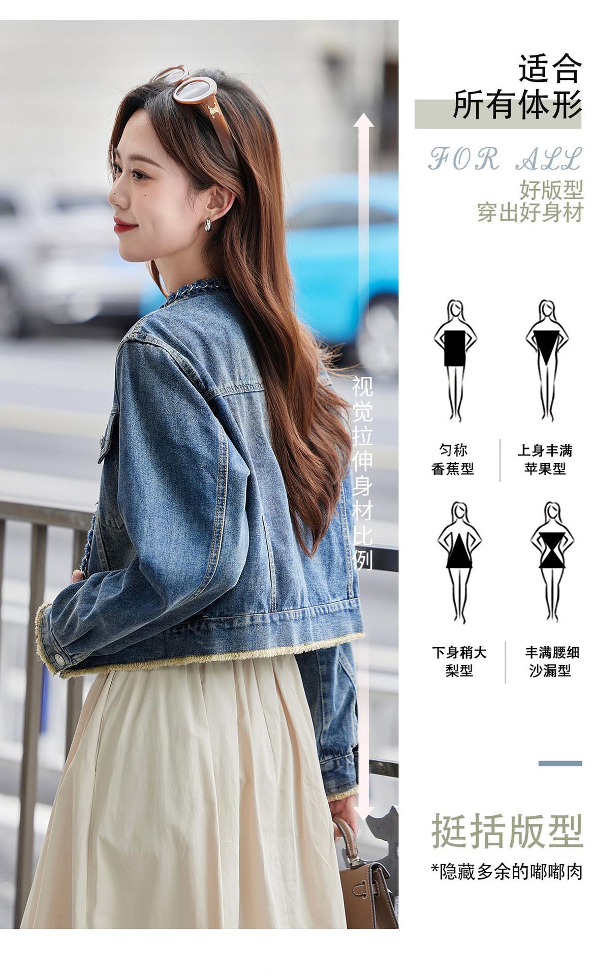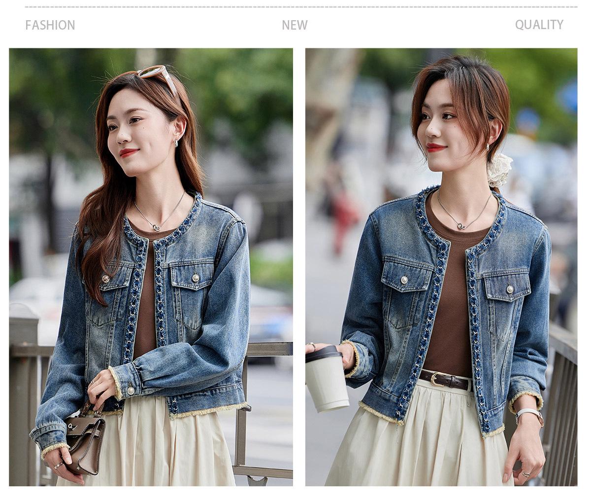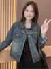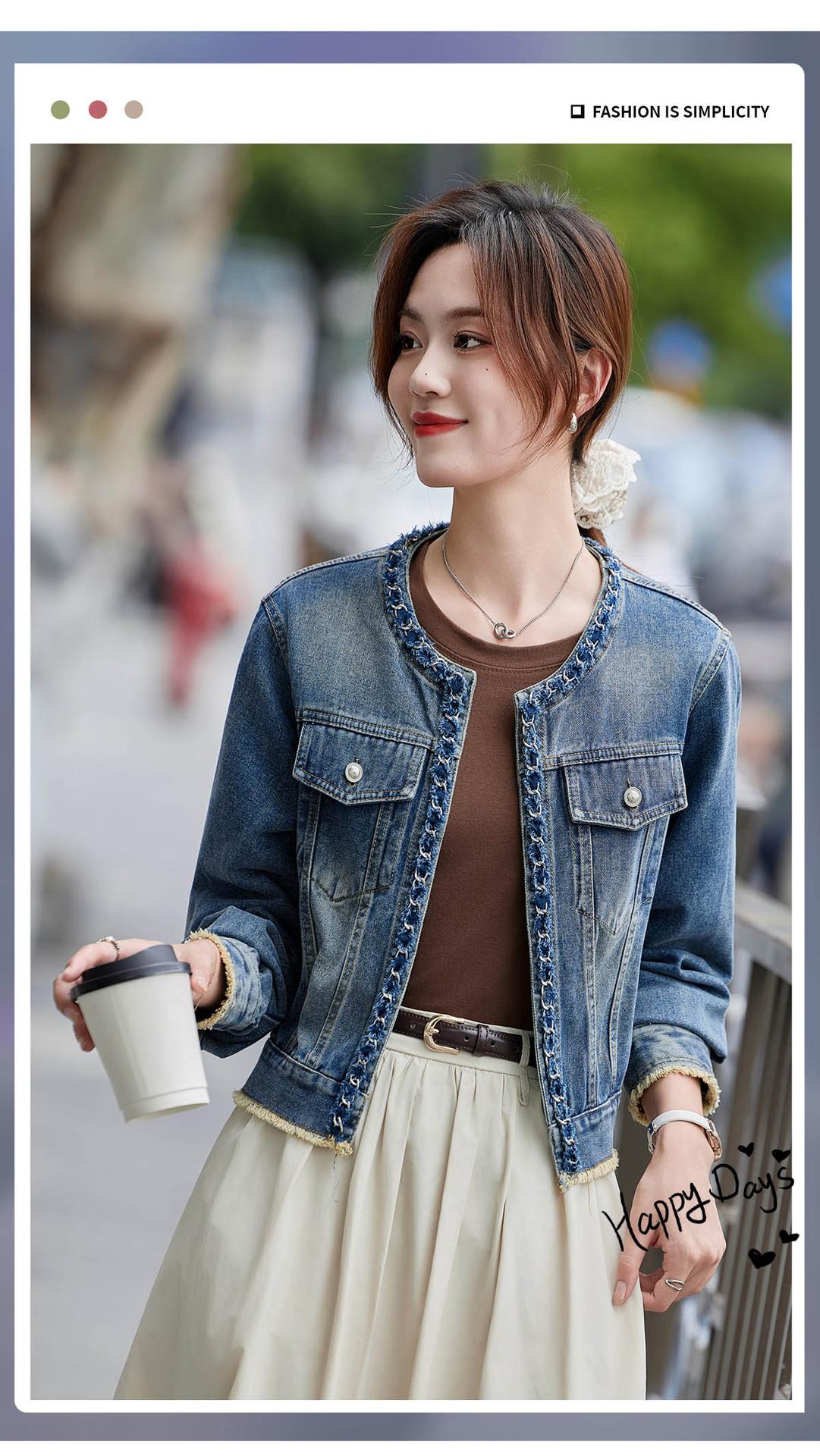 Chaqueta vaquera petite estilo coreano para mujer otoño 2025 nuevo estilo popular este año moda cuello redondo chaqueta corta top