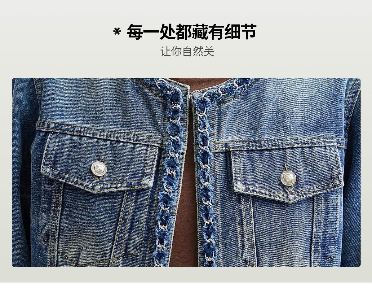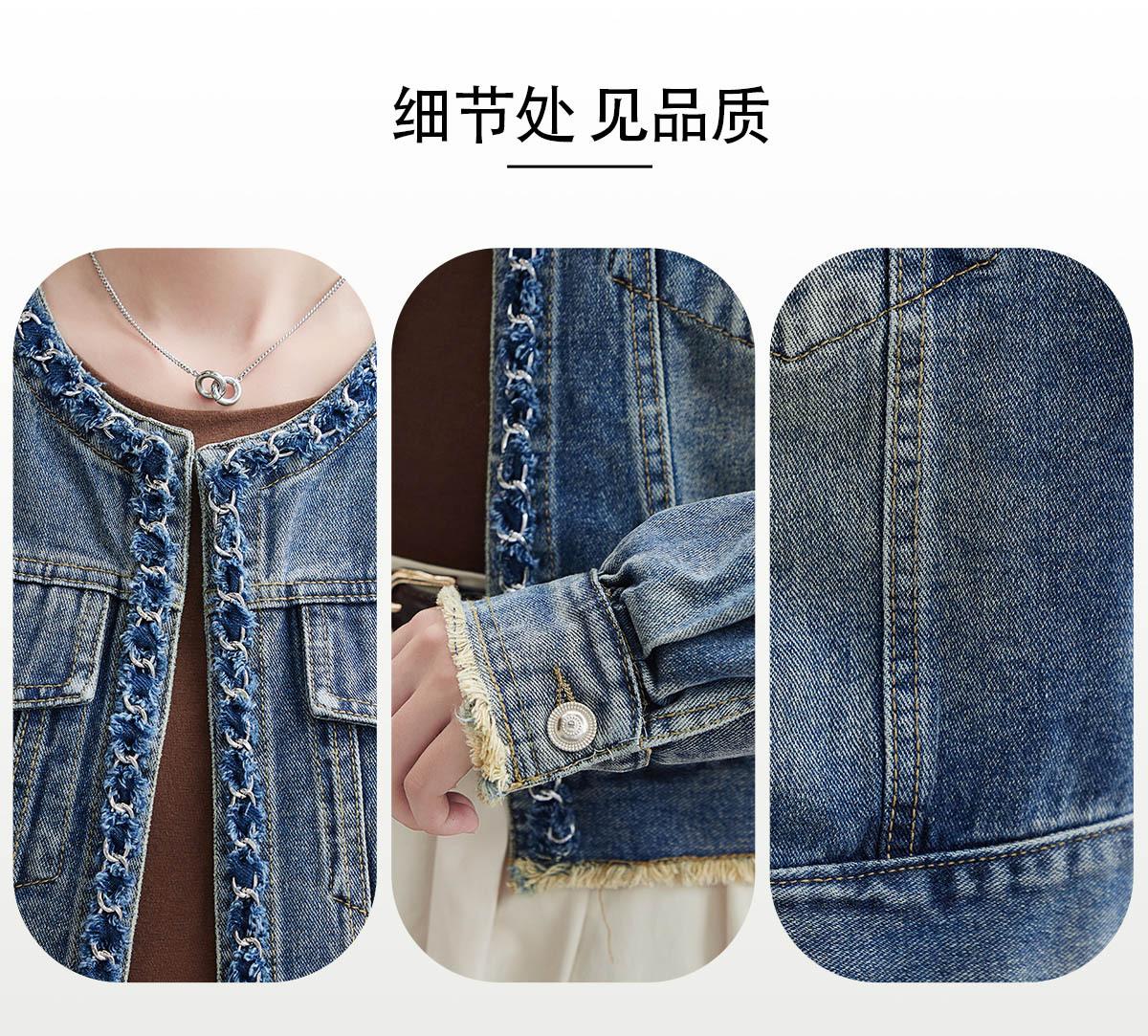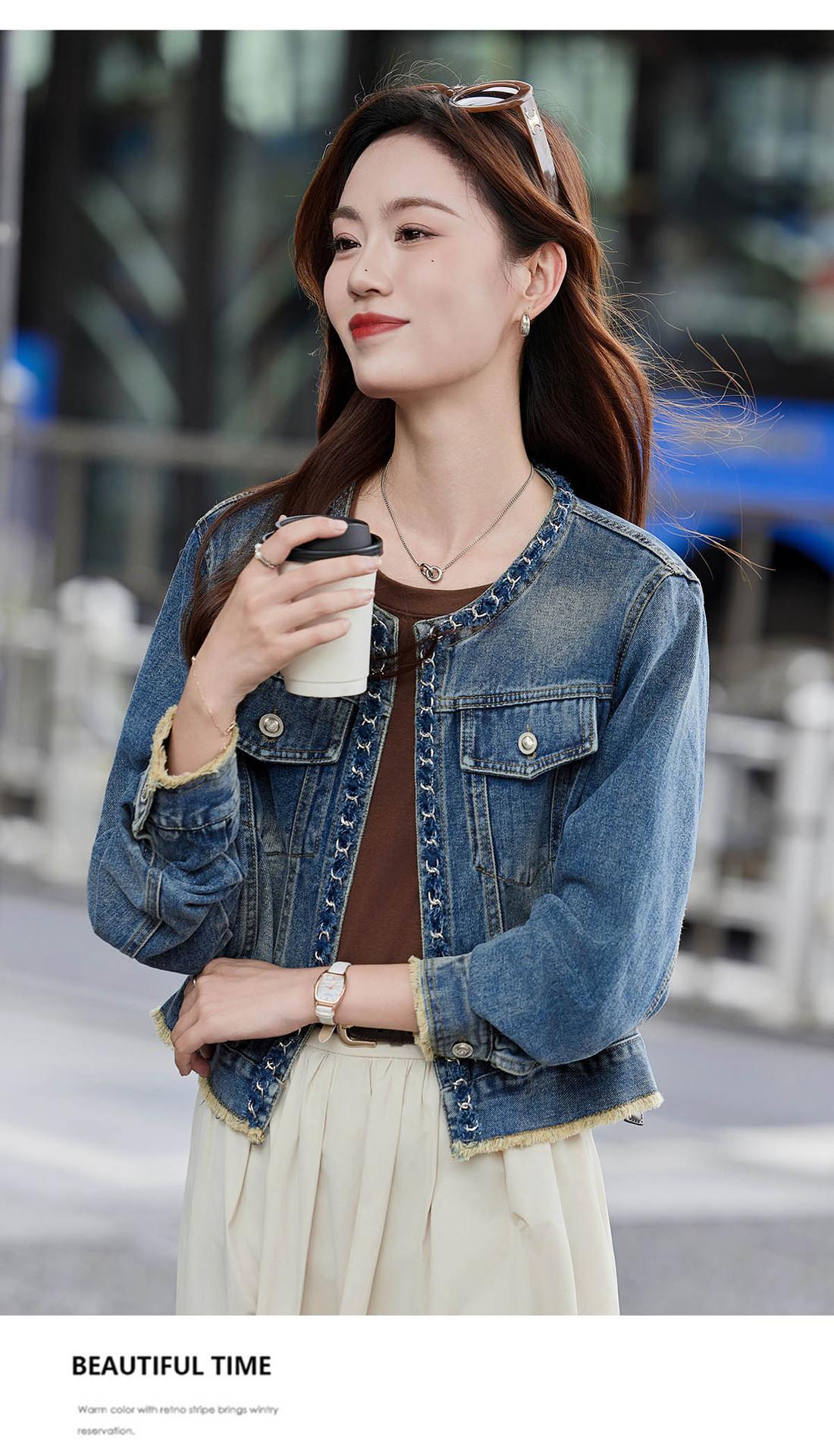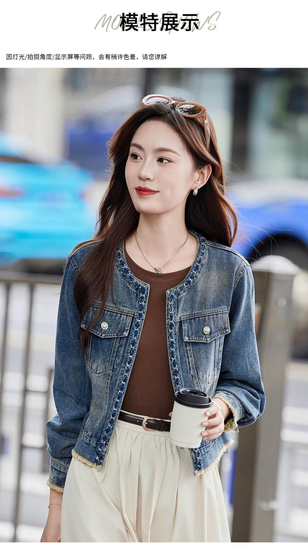 Chaqueta vaquera petite estilo coreano para mujer otoño 2025 nuevo estilo popular este año moda cuello redondo chaqueta corta top