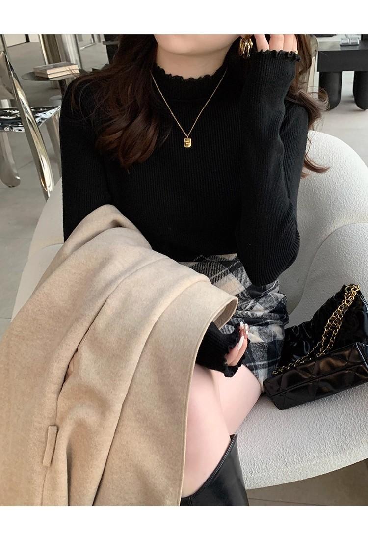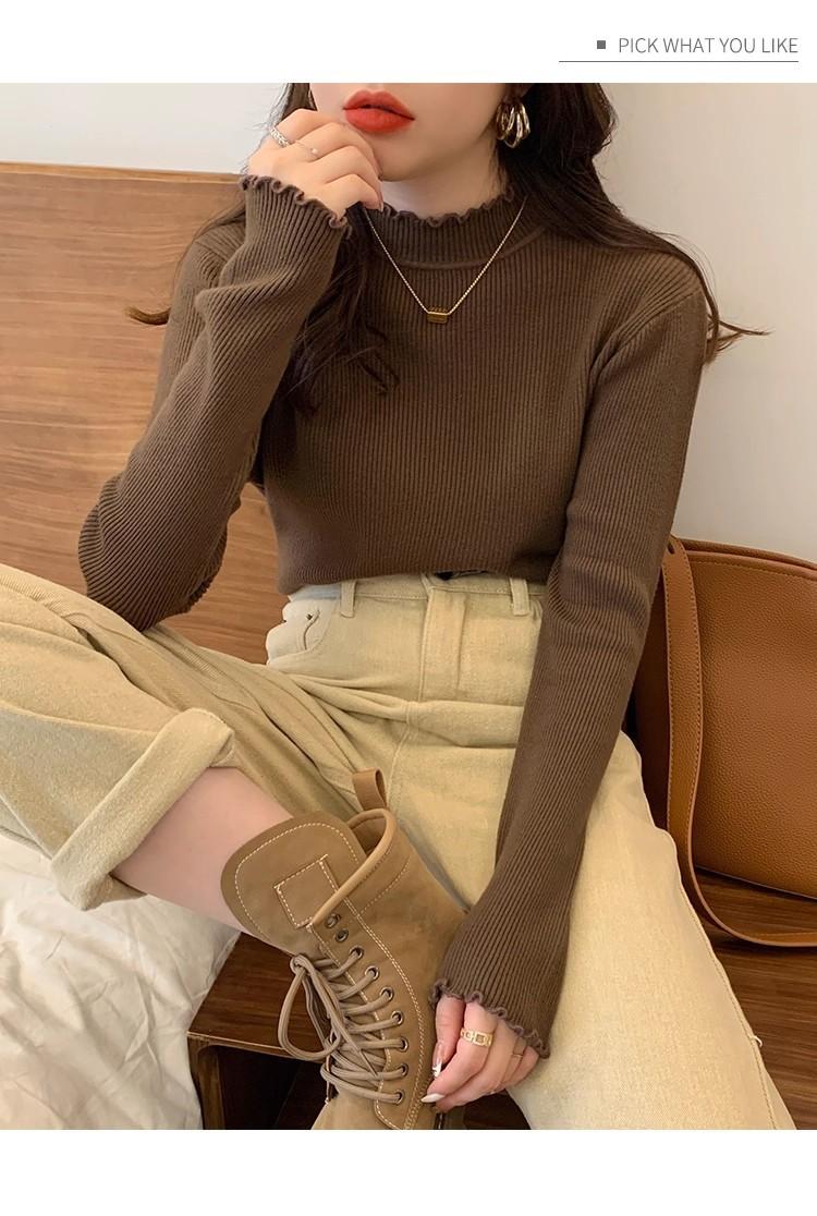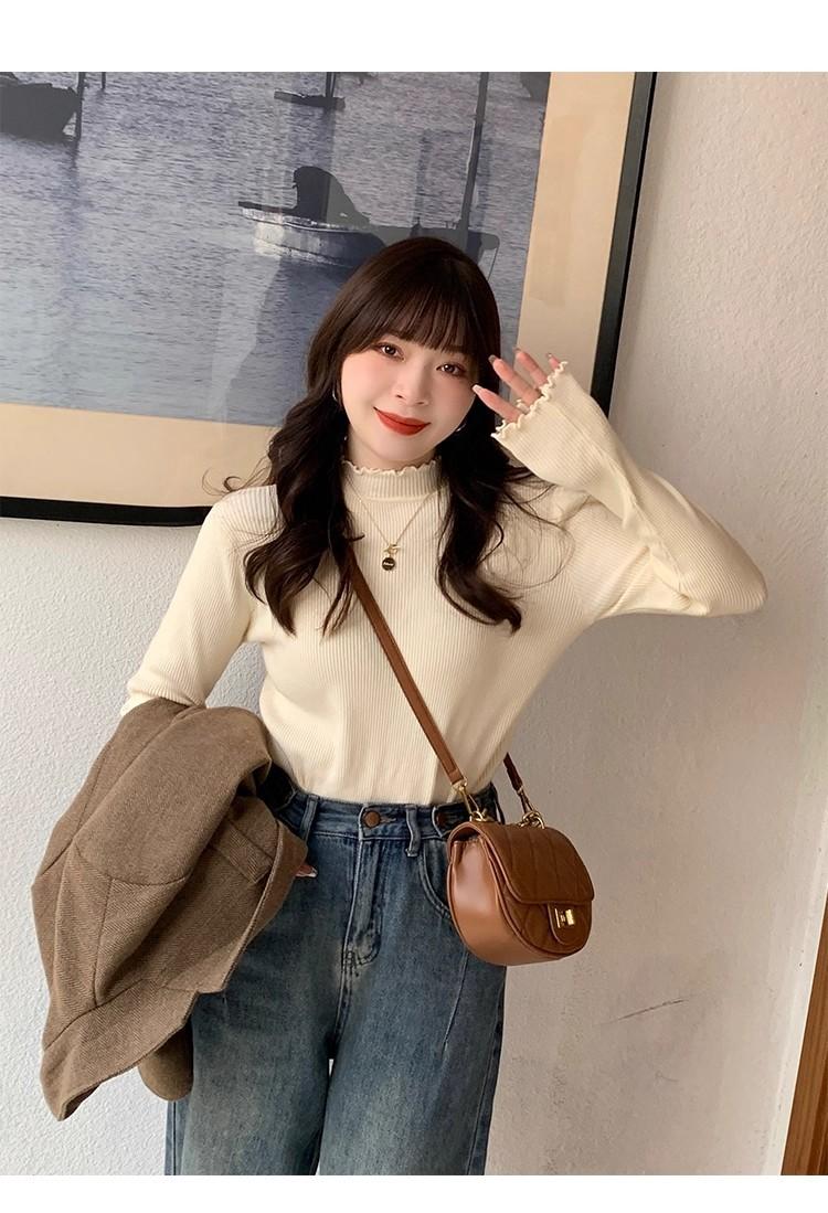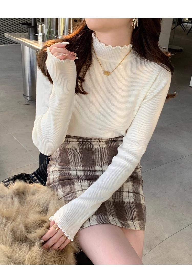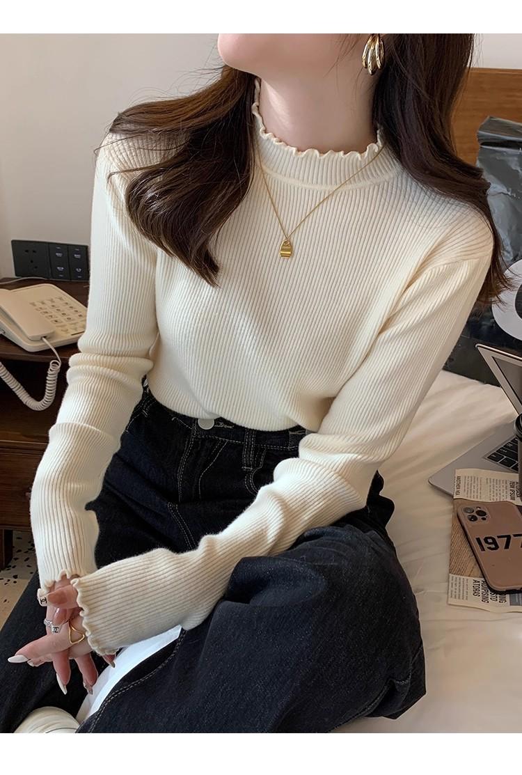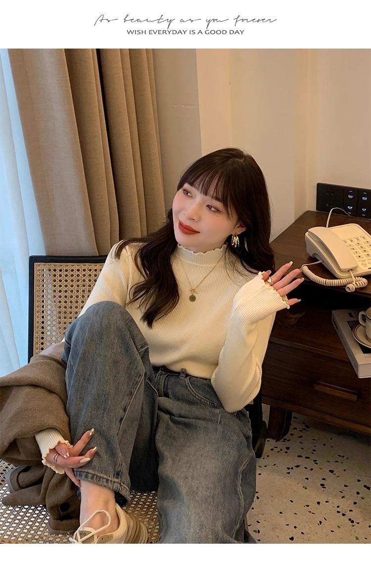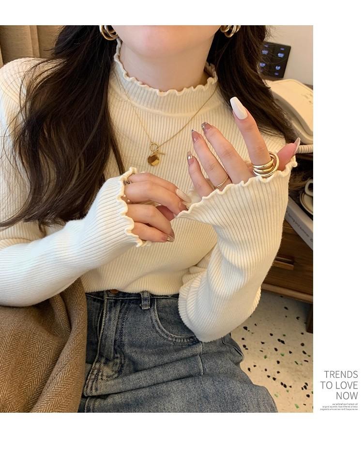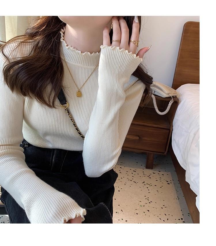 Suéter de Punto de Cuello Medio Alto para Mujer 2025 Nuevo Otoño/Invierno Ropa Interior de Gama Alta Nuevo Top Cuello Medio Borde con Volantes Camiseta Básica