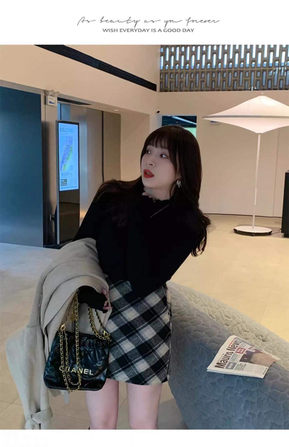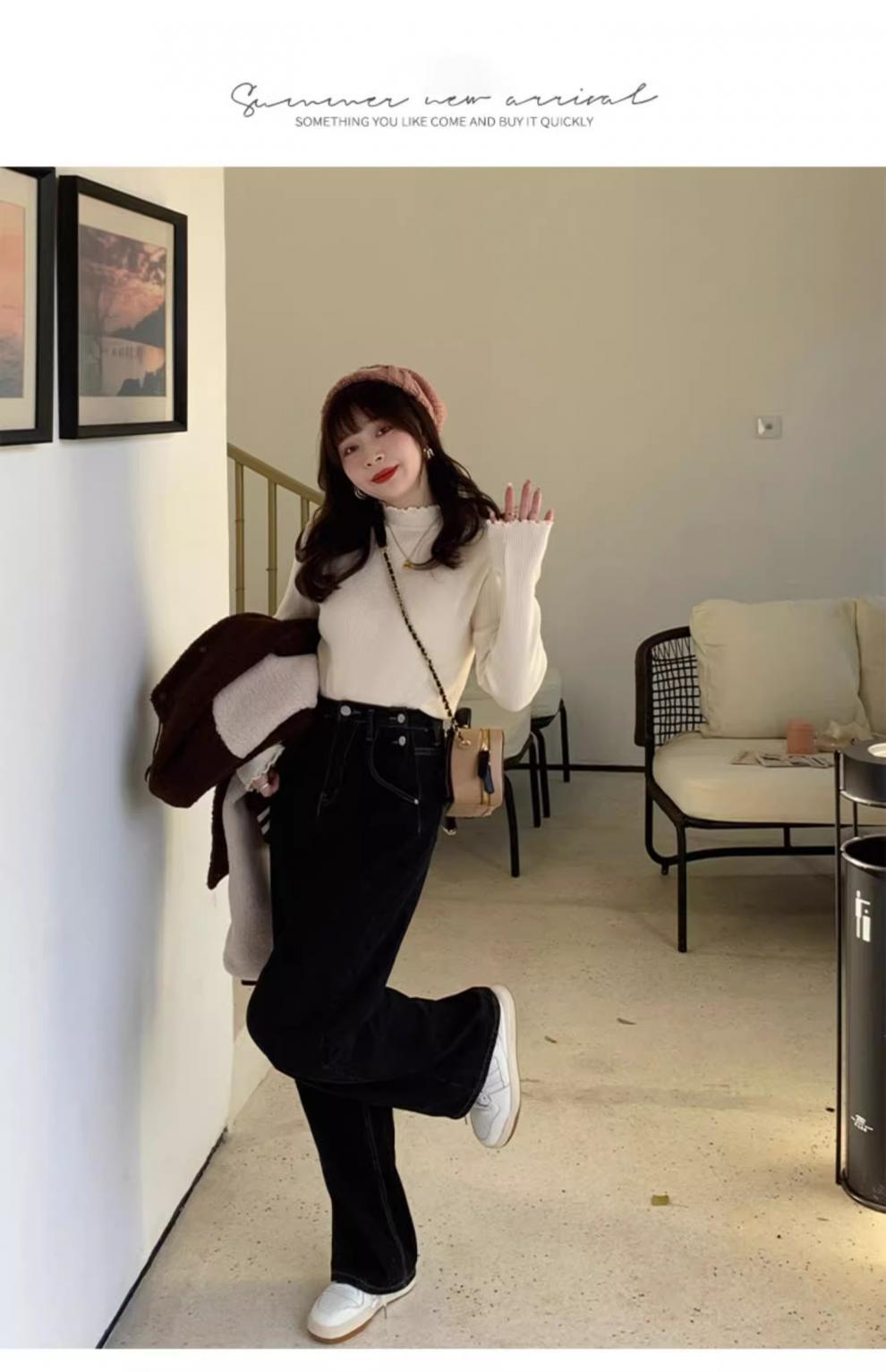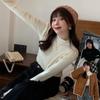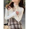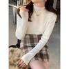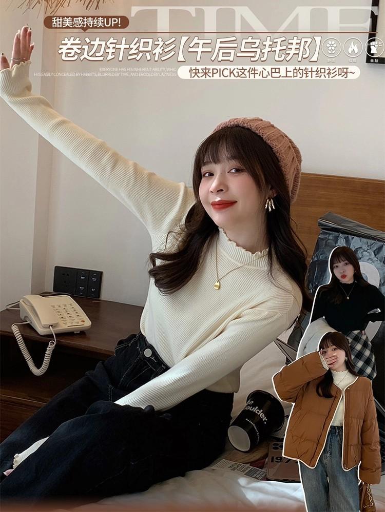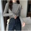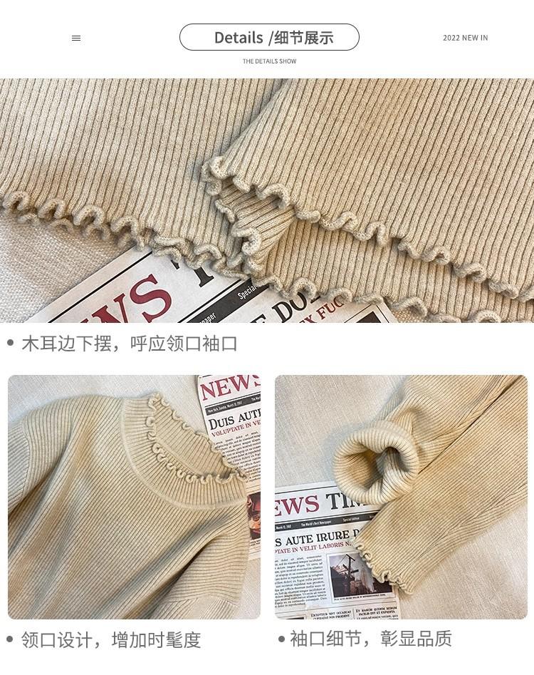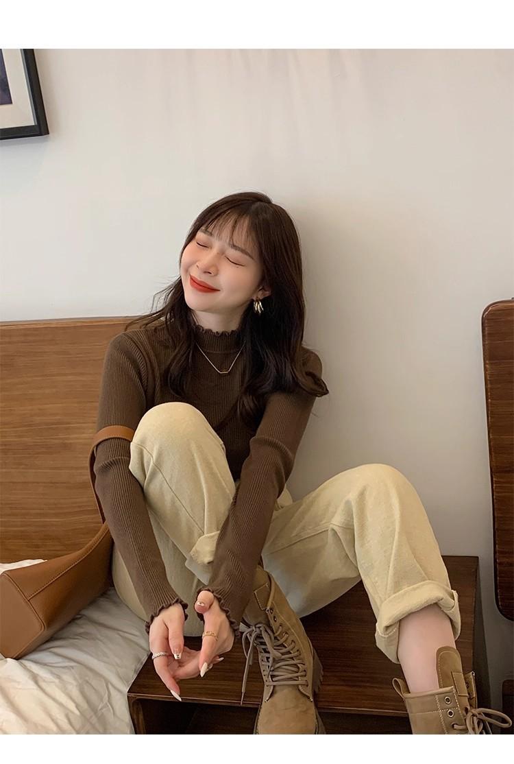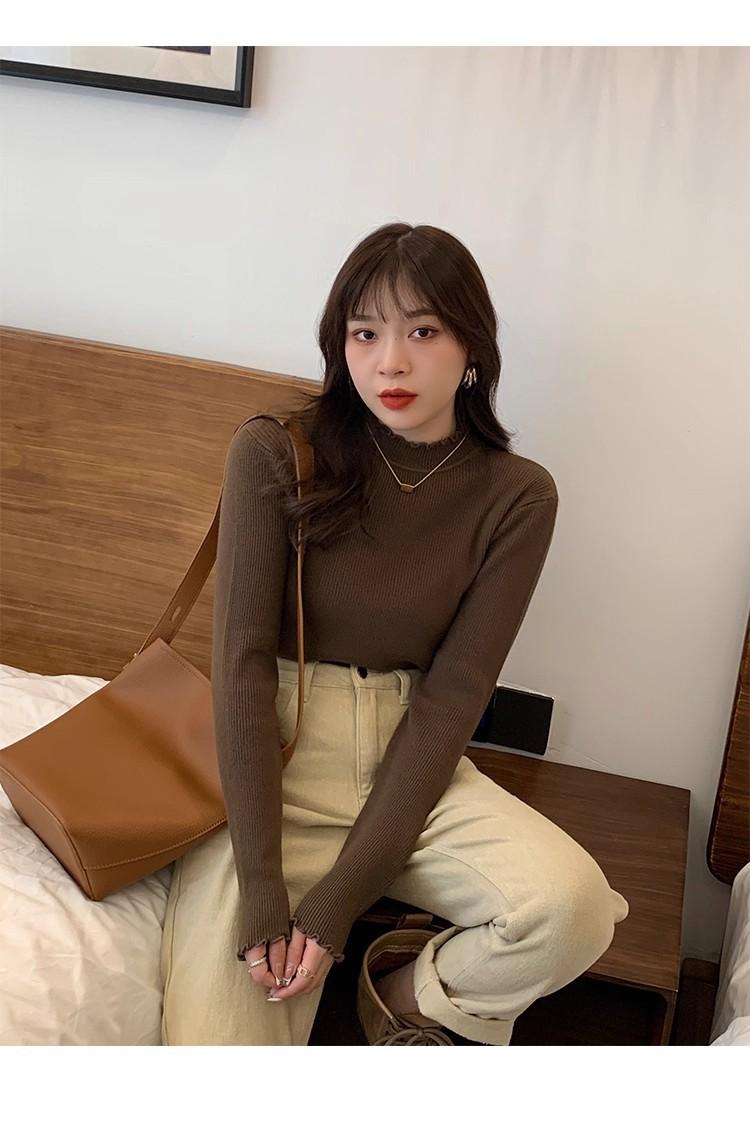 Suéter de Punto de Cuello Medio Alto para Mujer 2025 Nuevo Otoño/Invierno Ropa Interior de Gama Alta Nuevo Top Cuello Medio Borde con Volantes Camiseta Básica