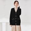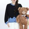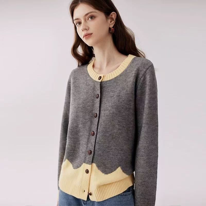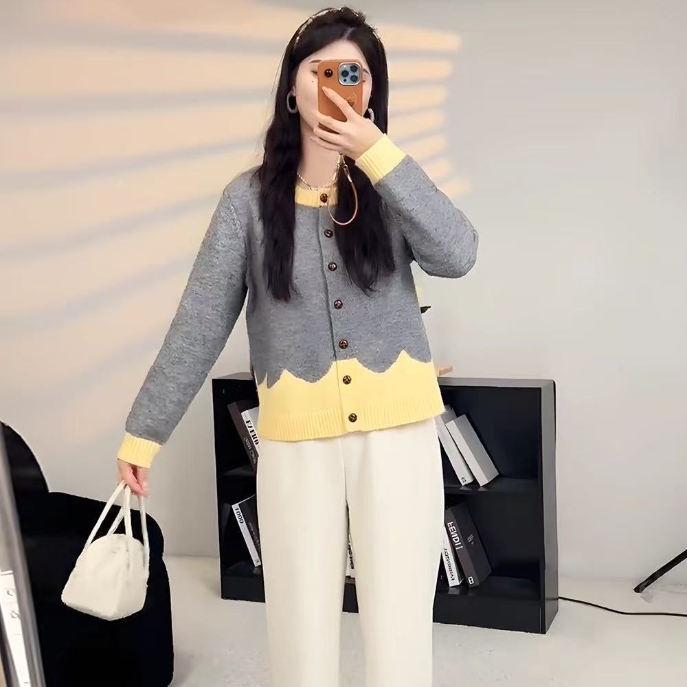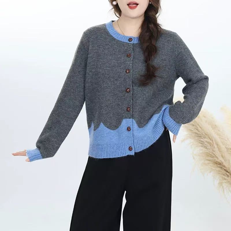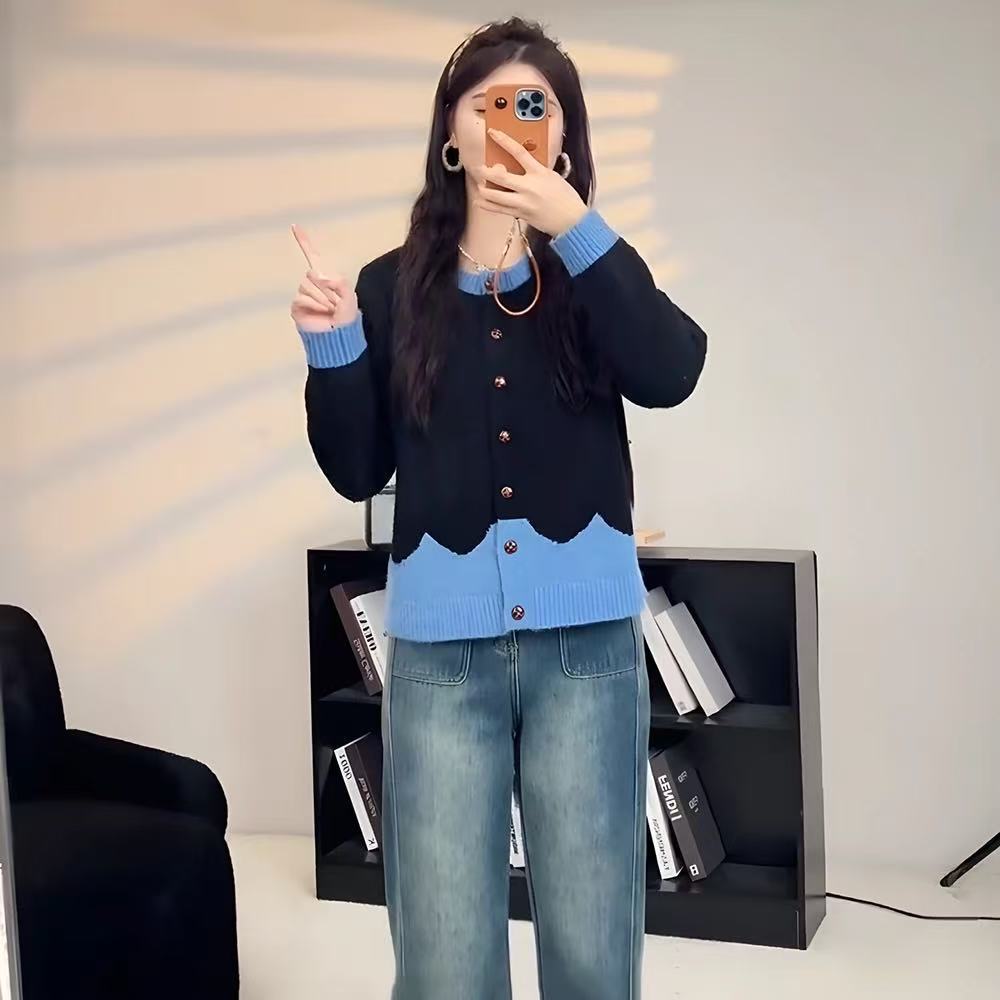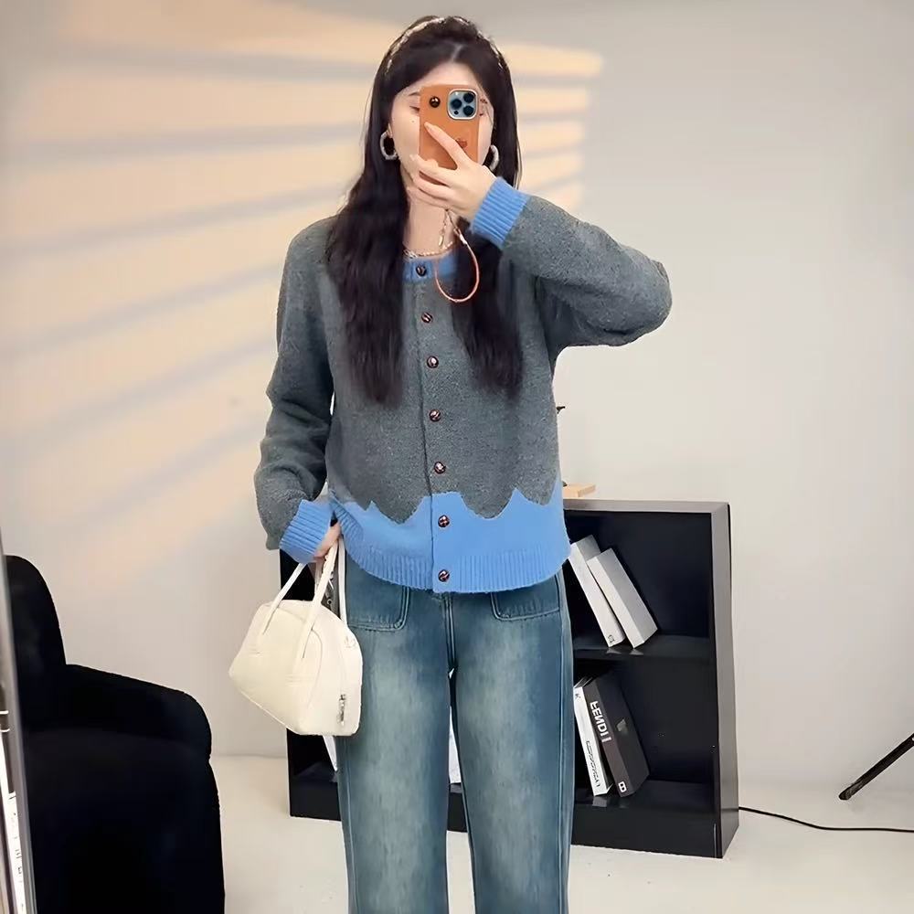 2025 Nuevo Diseño de Bloques de Color Cárdigan Suéter Abrigo para Mujer Otoño/Invierno Petite Grueso Tejido Top