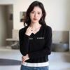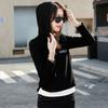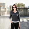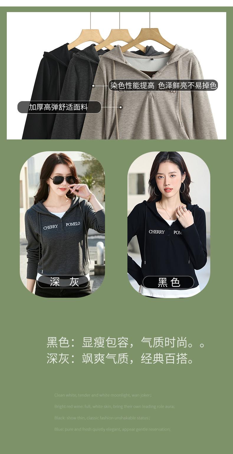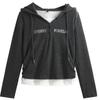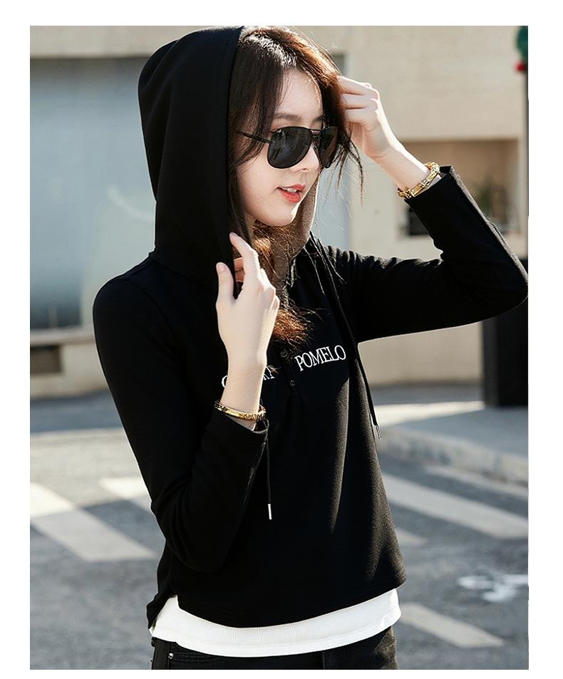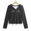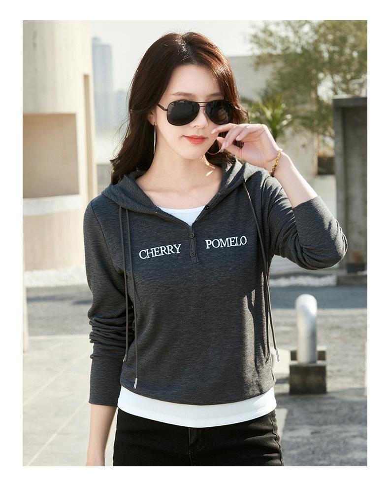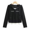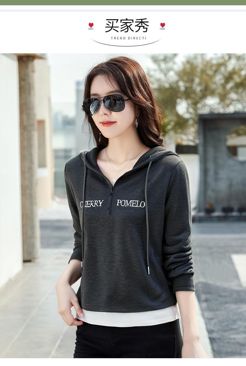 Sudadera con capucha bordada de manga larga para mujer, camiseta versátil, moderna y cómoda, de imitación de dos piezas, estilo coreano, temperamental, top para mujer 215-1