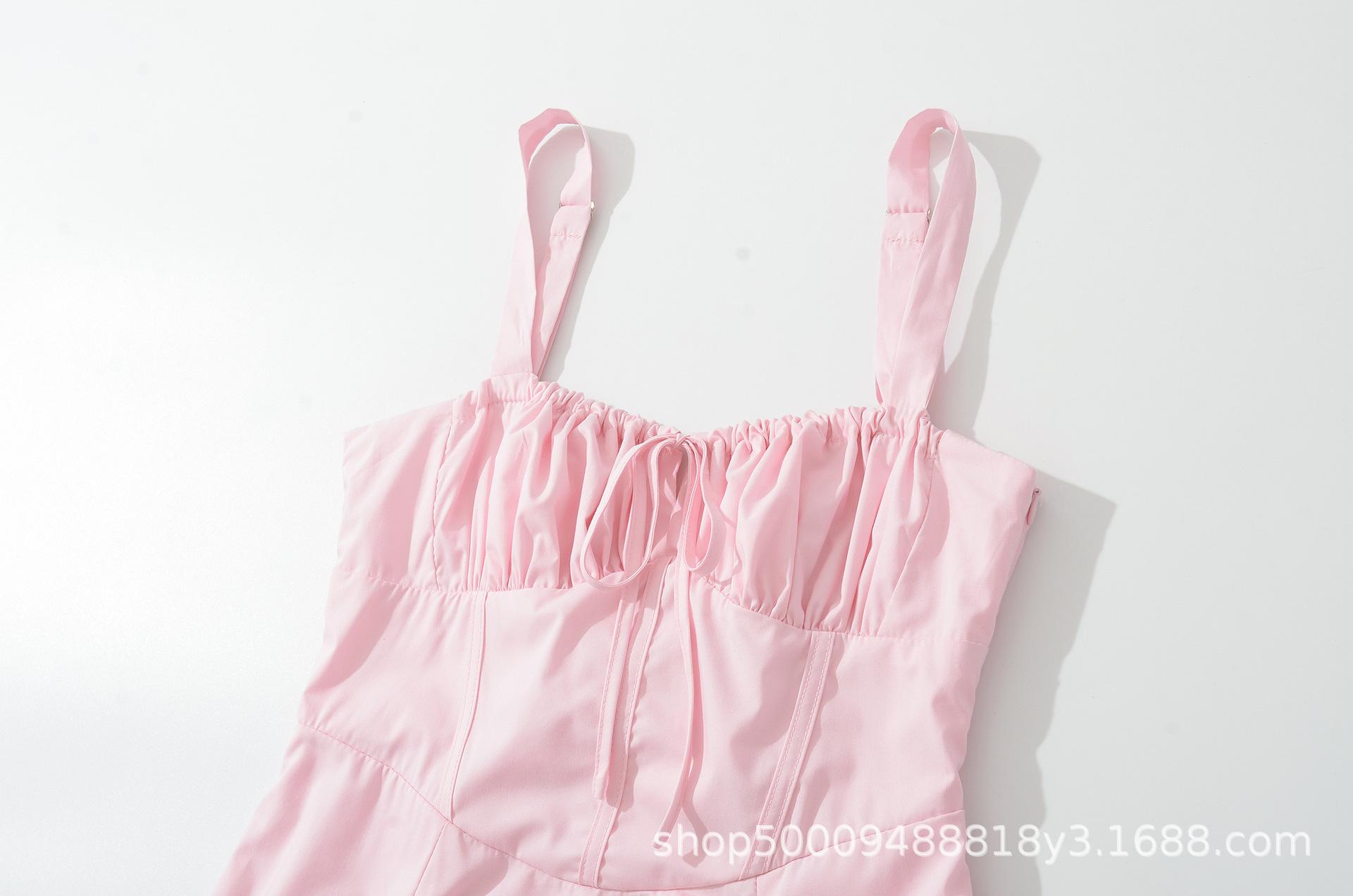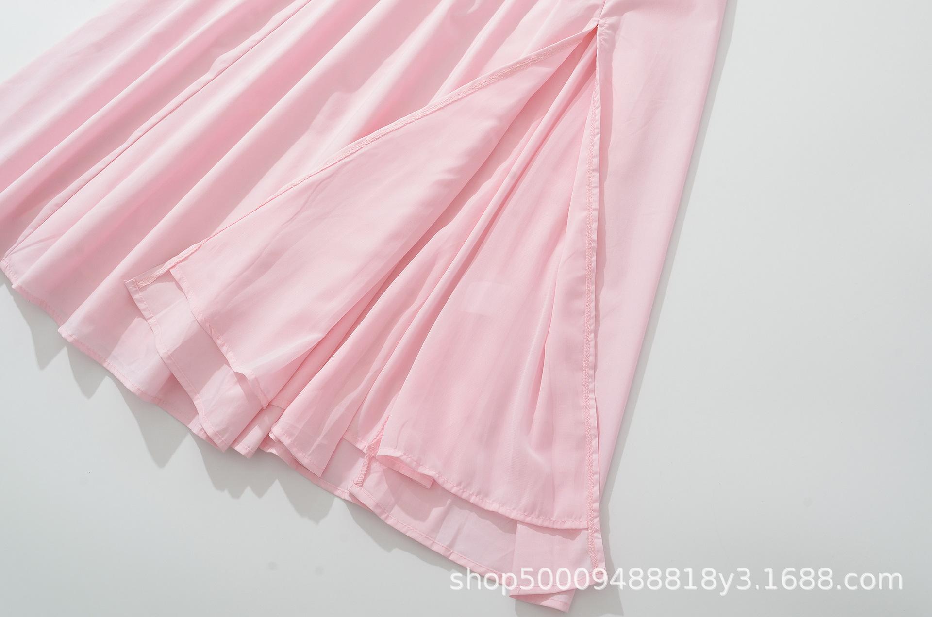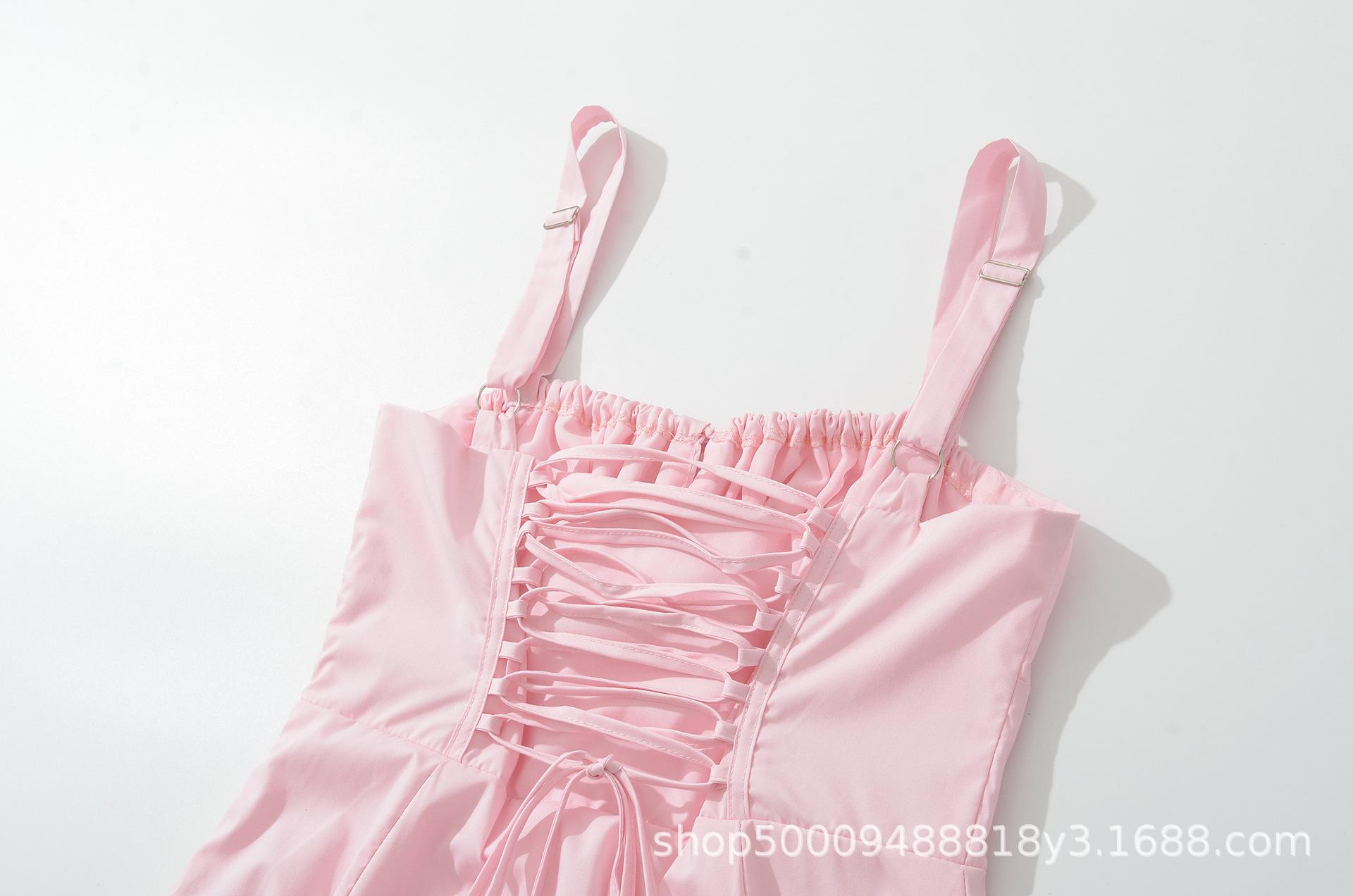 2025 Verano Nuevo Estilo Europeo y Americano Francés Romántico Vacaciones Encaje Cintura Ajustada Abertura Adelgazante Vestido Largo de Tirantes Espagueti