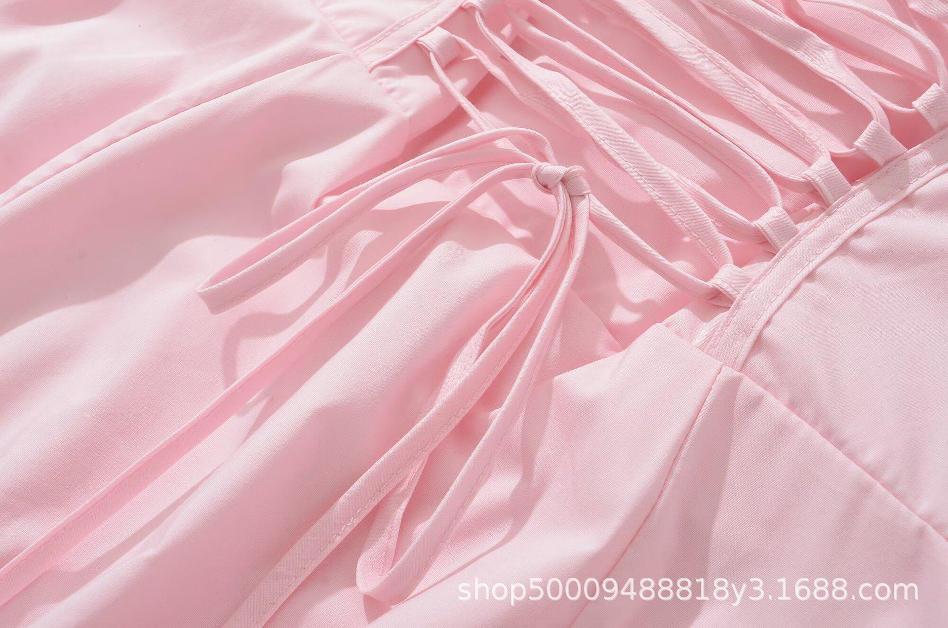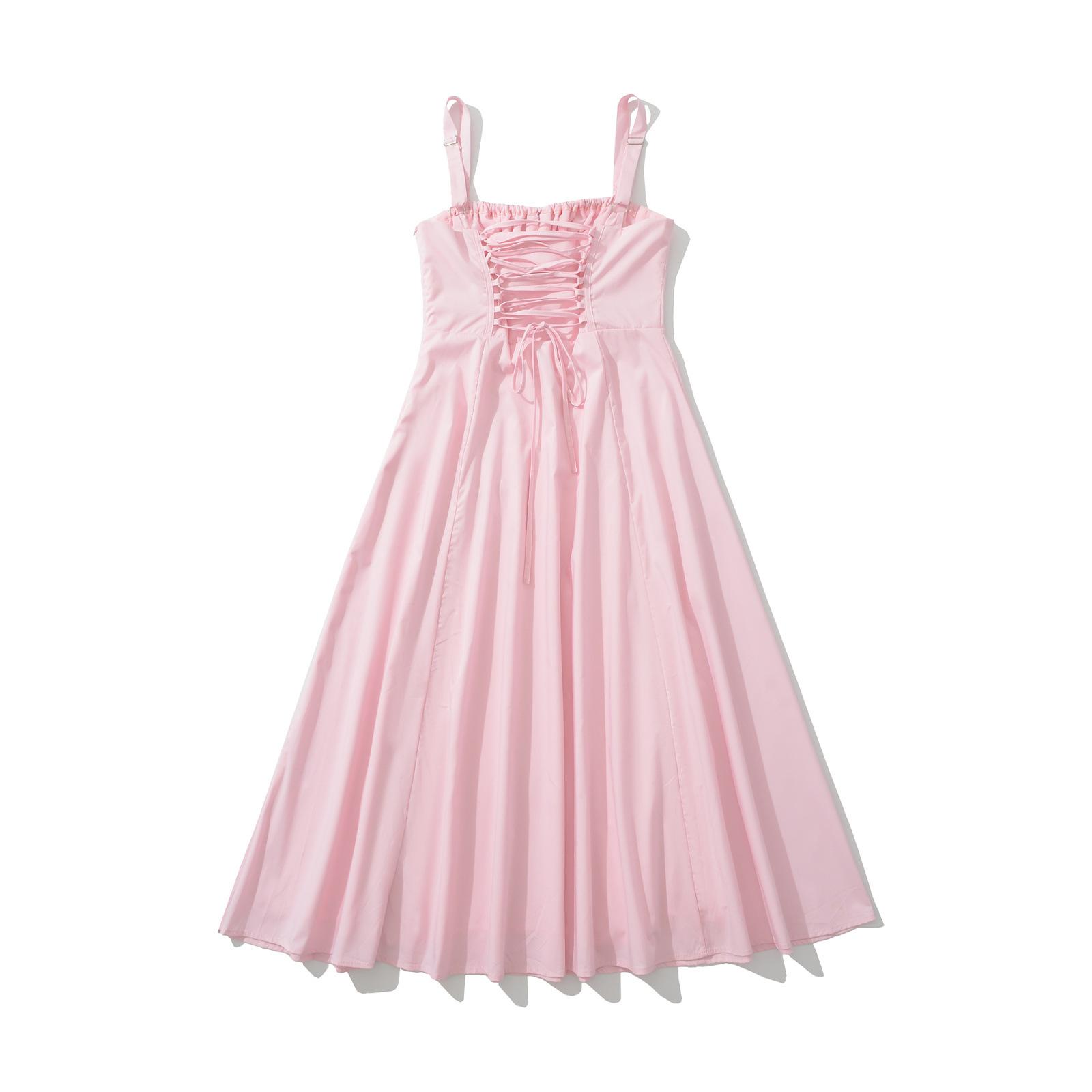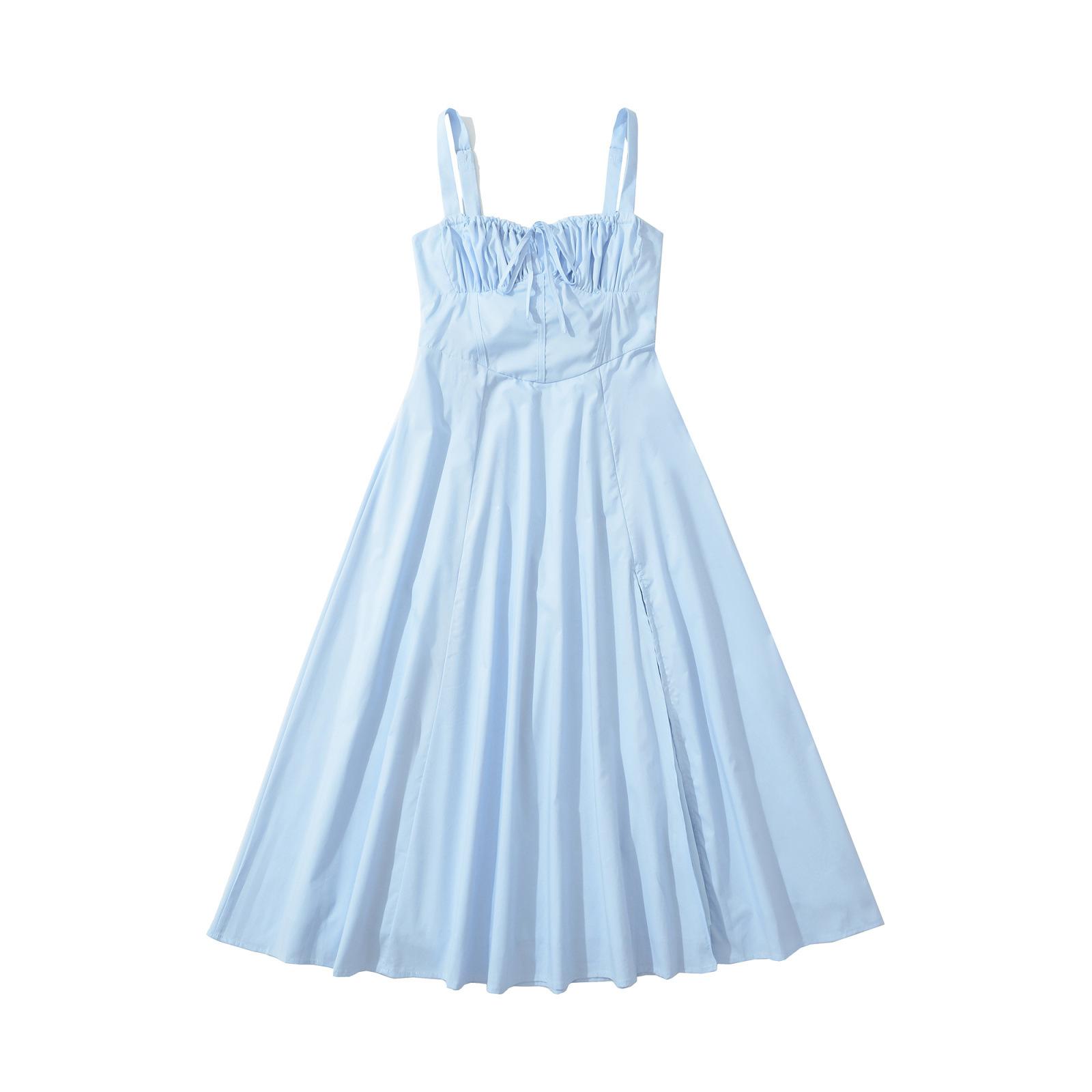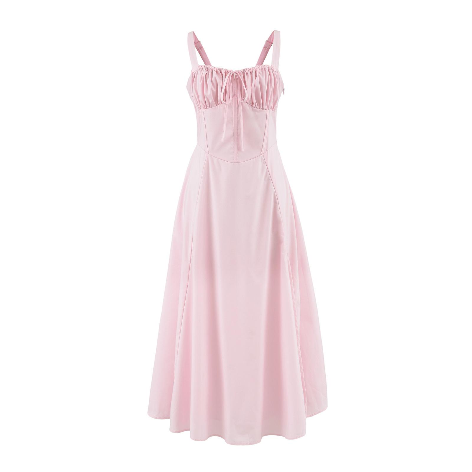 2025 Verano Nuevo Estilo Europeo y Americano Francés Romántico Vacaciones Encaje Cintura Ajustada Abertura Adelgazante Vestido Largo de Tirantes Espagueti