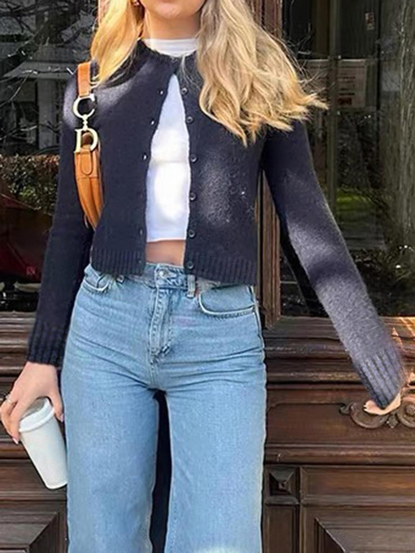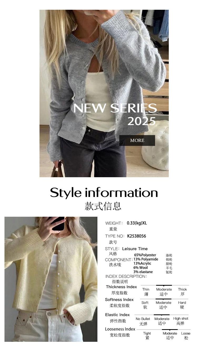 Diyun Transfronterizo Europeo y Americano Casual Minimalista Color Sólido Manga Larga Chaqueta Suéter Ropa de Mujer Otoño/Invierno 2025 Estación Independiente Amazon