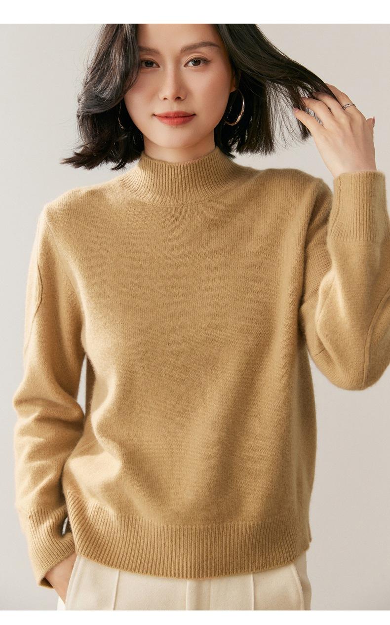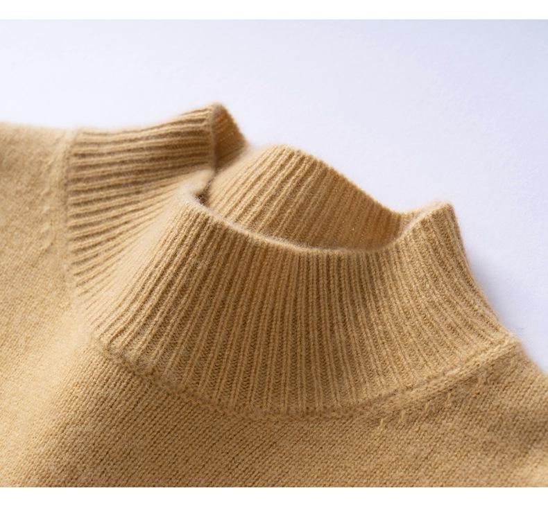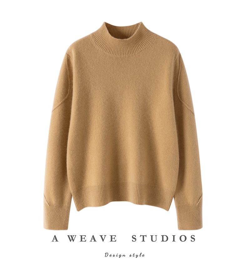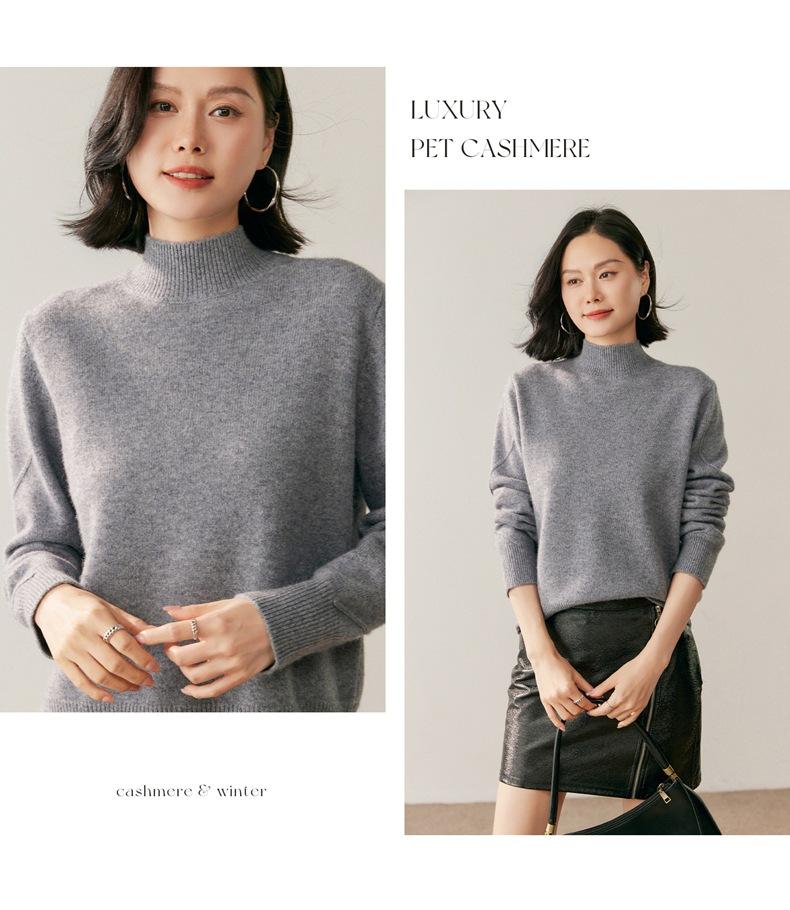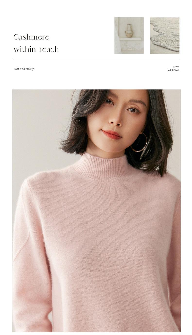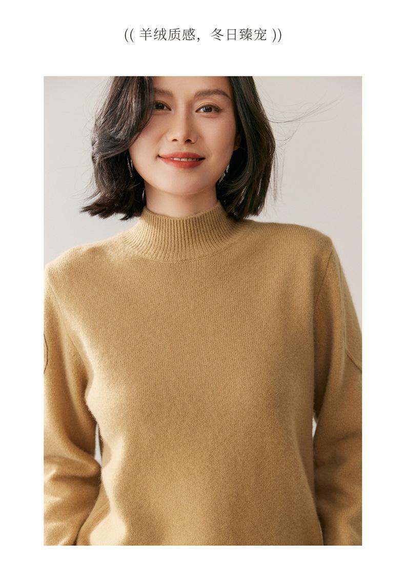Nuevo Suéter de Cachemira de Cuello Medio Alto Grueso de Color Sólido para Otoño/Invierno para Mujer Temperamento Sencillo Holgado Tejido Base Cálido Suéter de Lana
