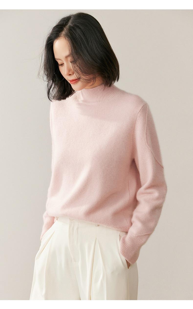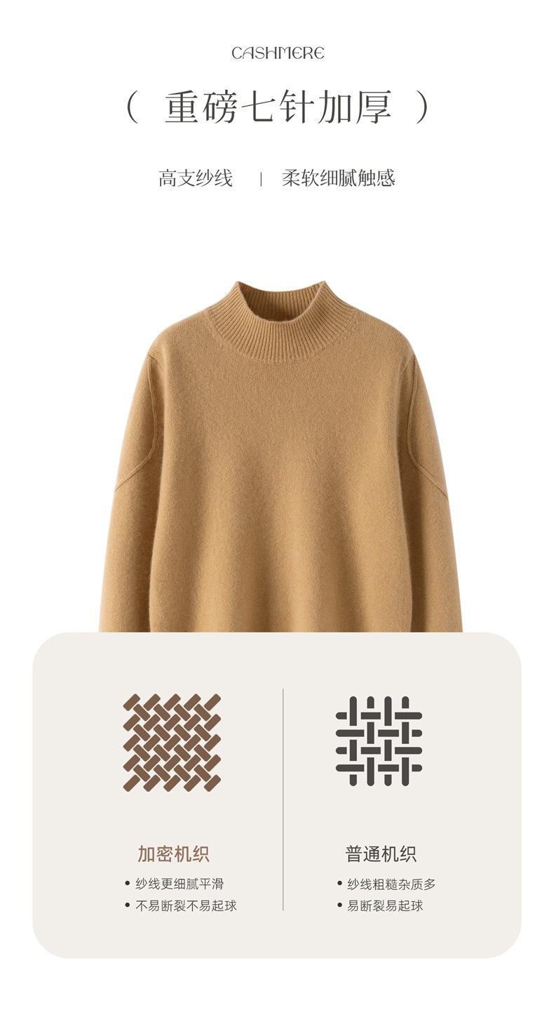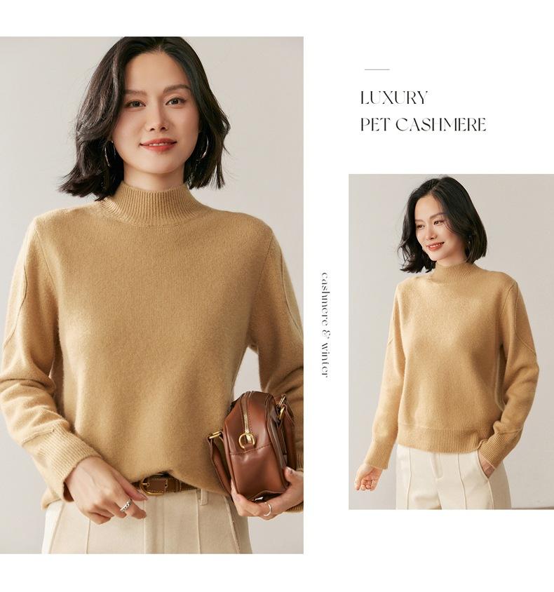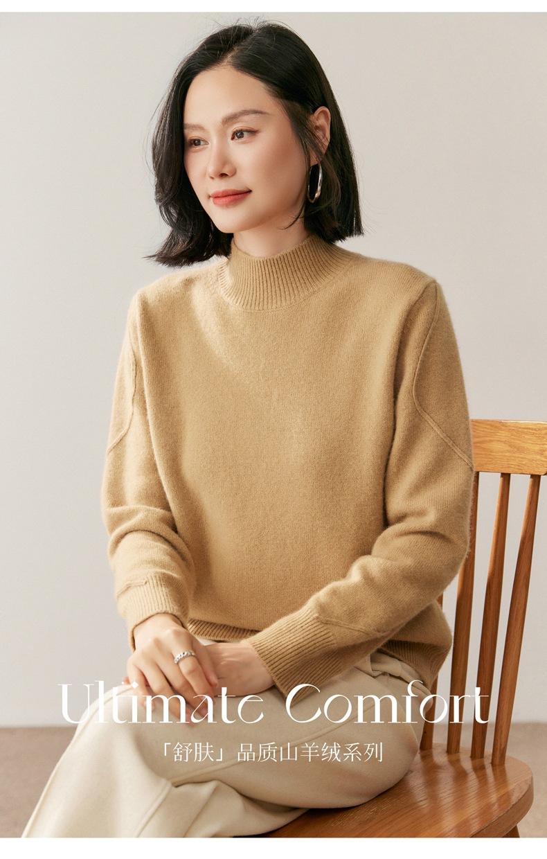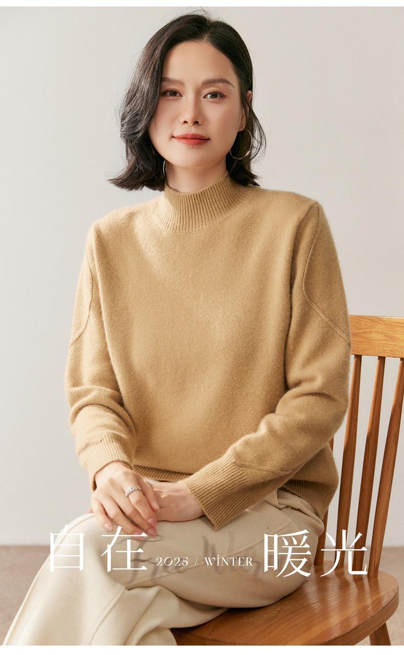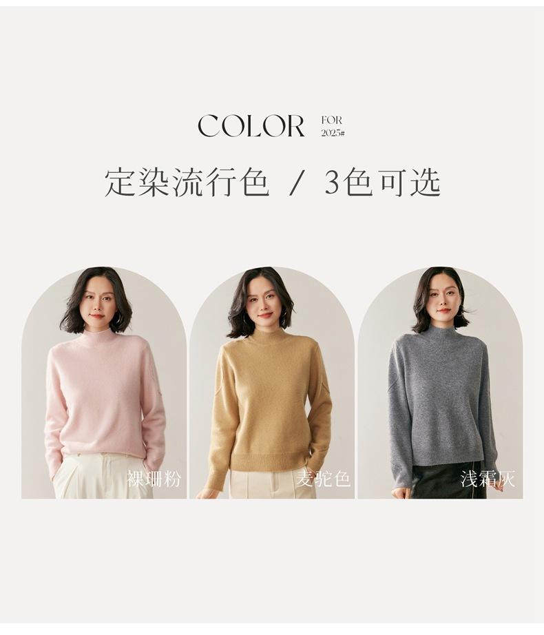 Nuevo Suéter de Cachemira de Cuello Medio Alto Grueso de Color Sólido para Otoño/Invierno para Mujer Temperamento Sencillo Holgado Tejido Base Cálido Suéter de Lana