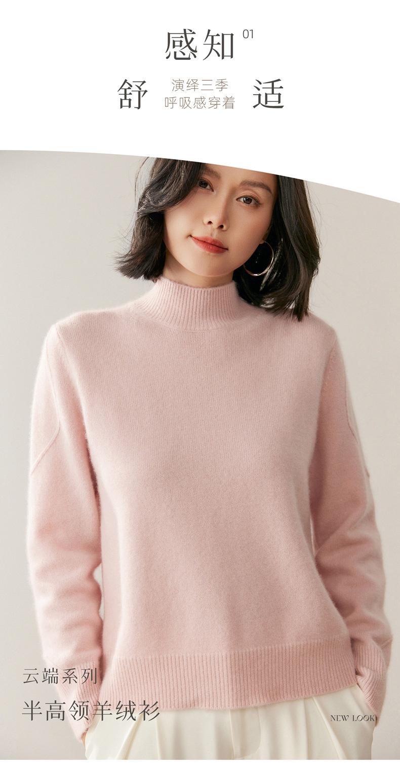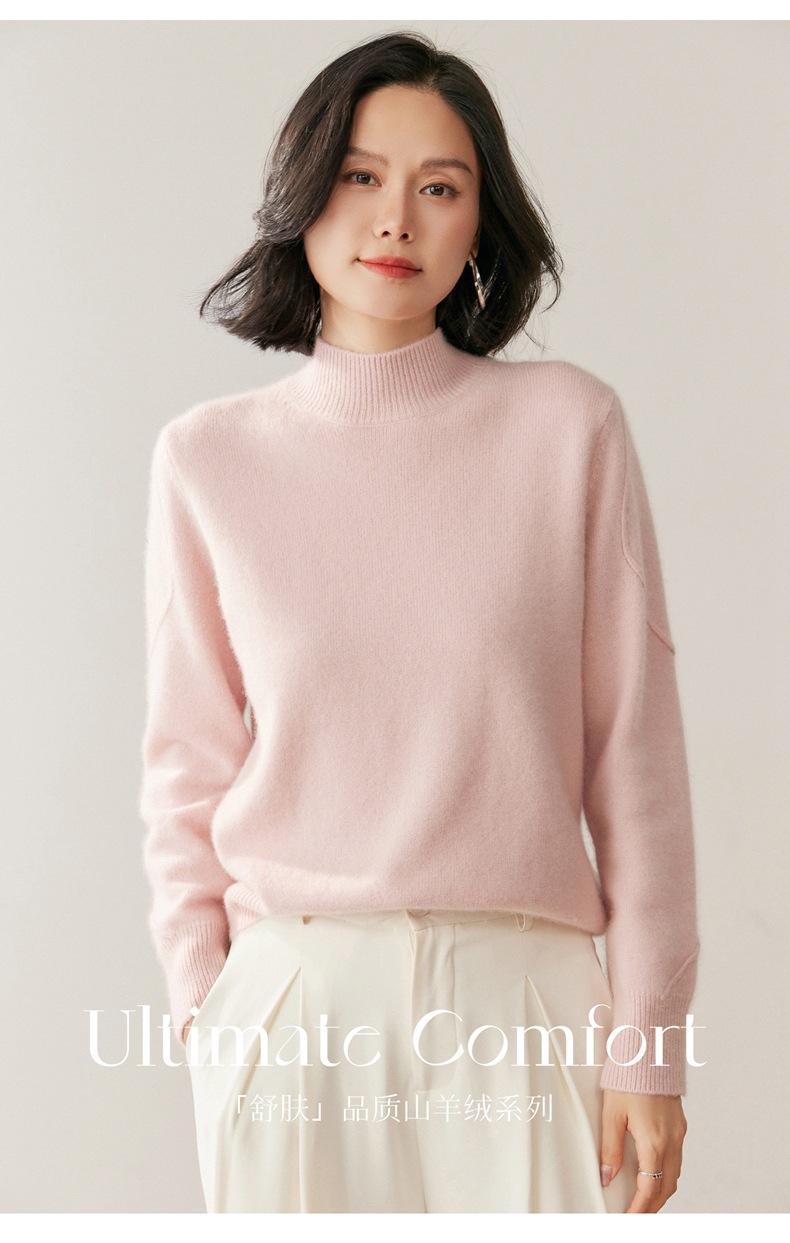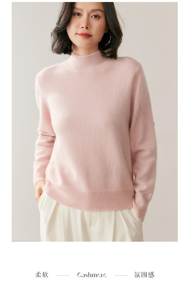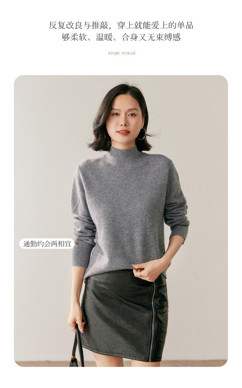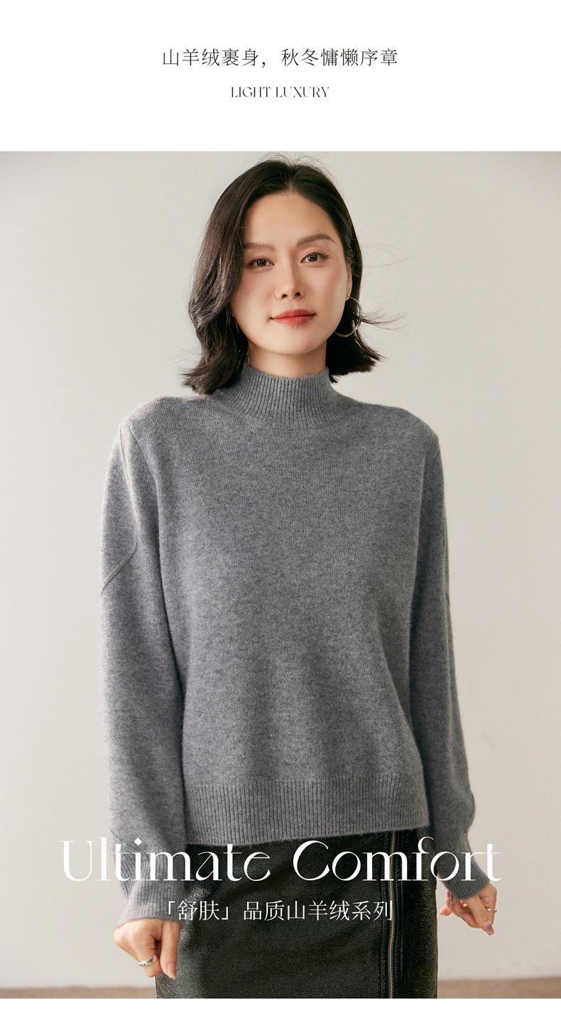 Nuevo Suéter de Cachemira de Cuello Medio Alto Grueso de Color Sólido para Otoño/Invierno para Mujer Temperamento Sencillo Holgado Tejido Base Cálido Suéter de Lana