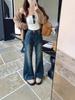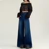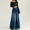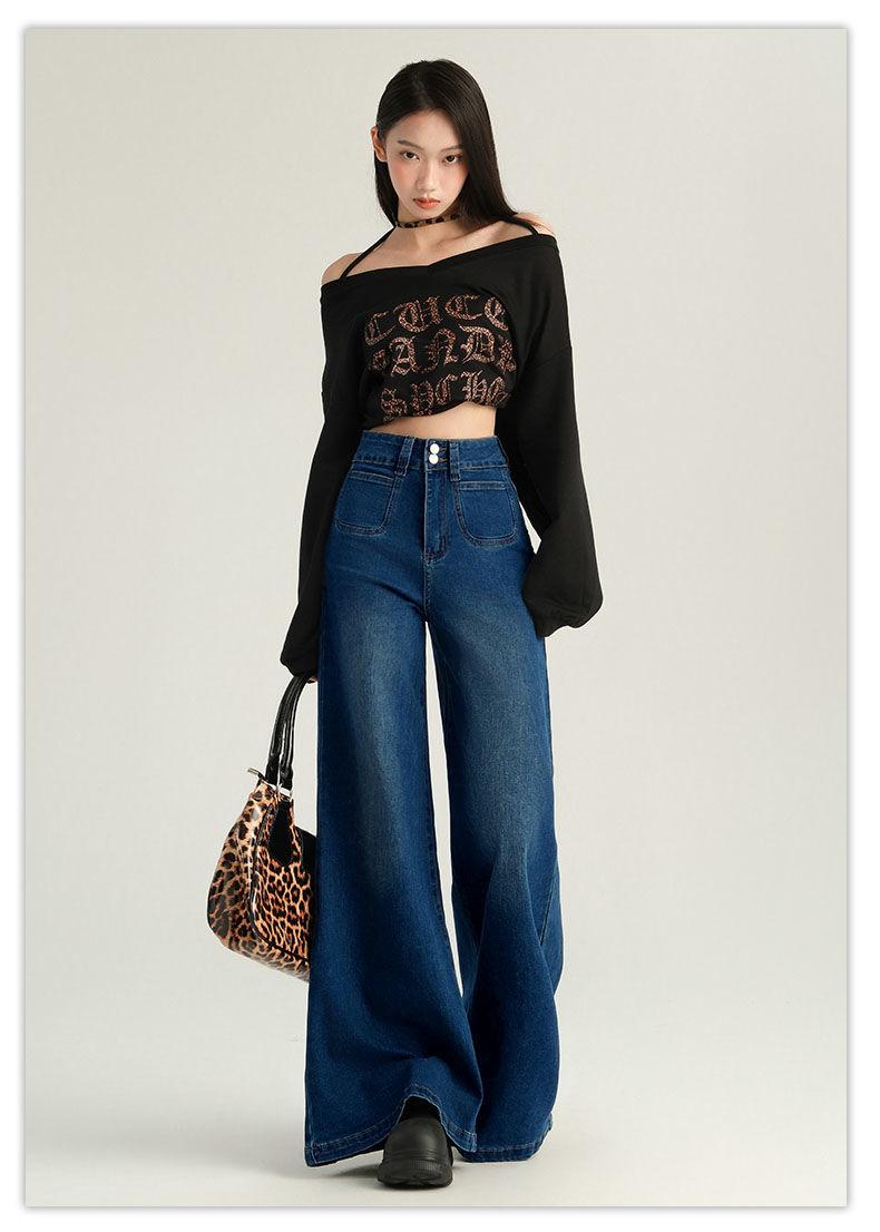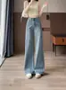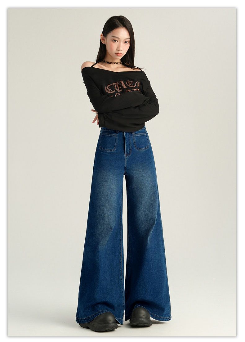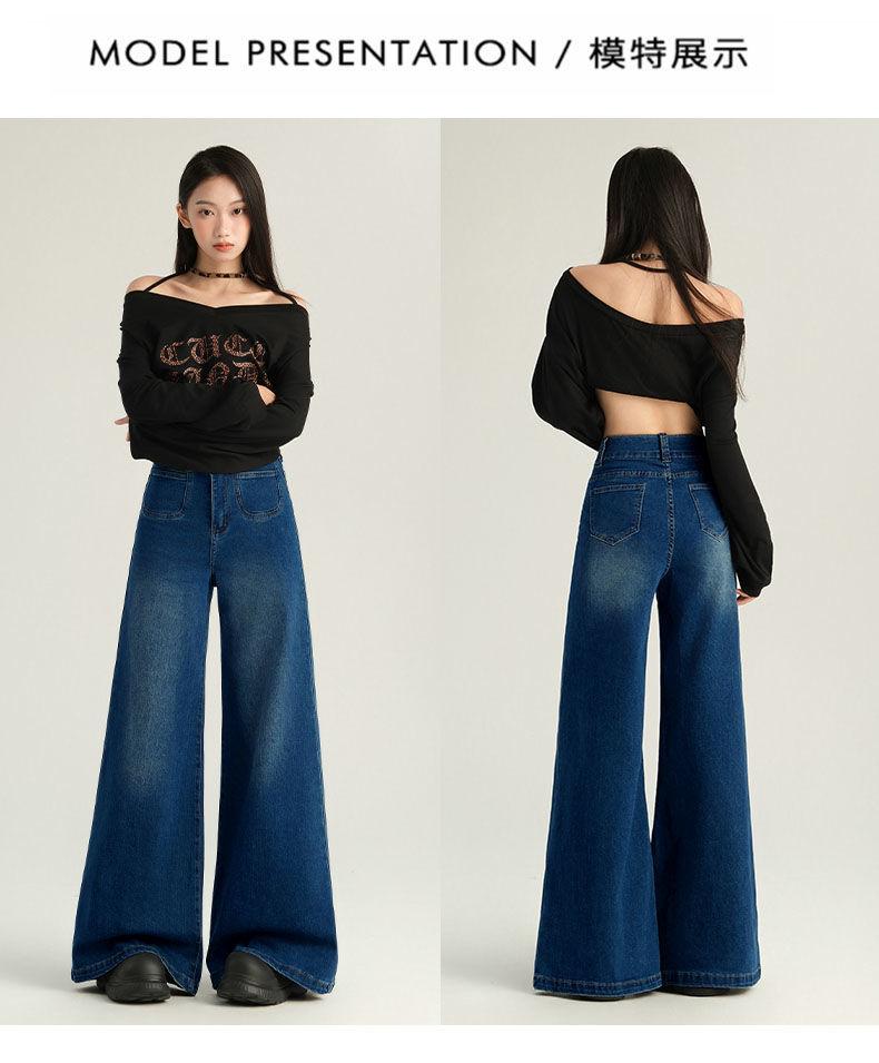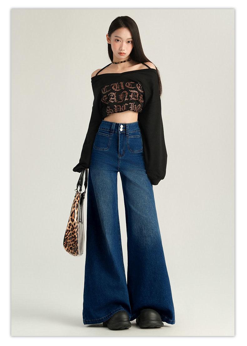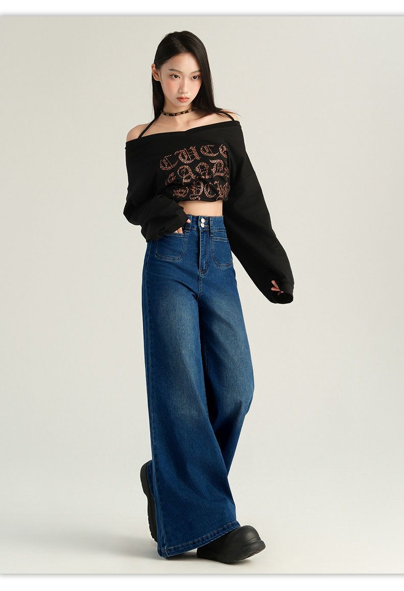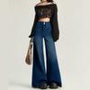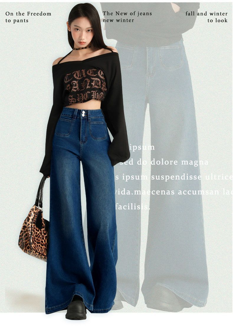 Pantalones Sueltos de Pierna Ancha con Dos Botones, Diseño Estilo Americano 2025, Jeans Altos y Ajustados, Elásticos para Mujer Azul Retro
