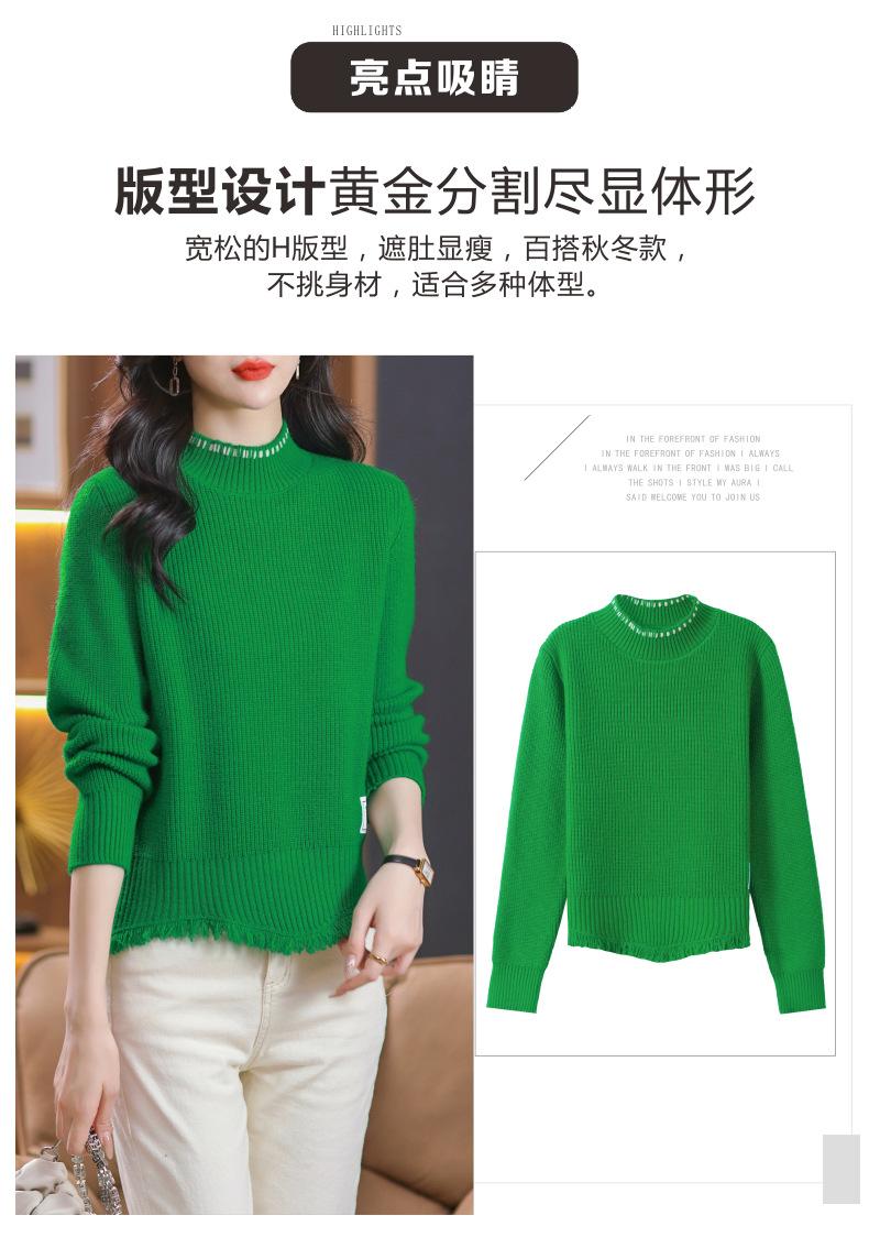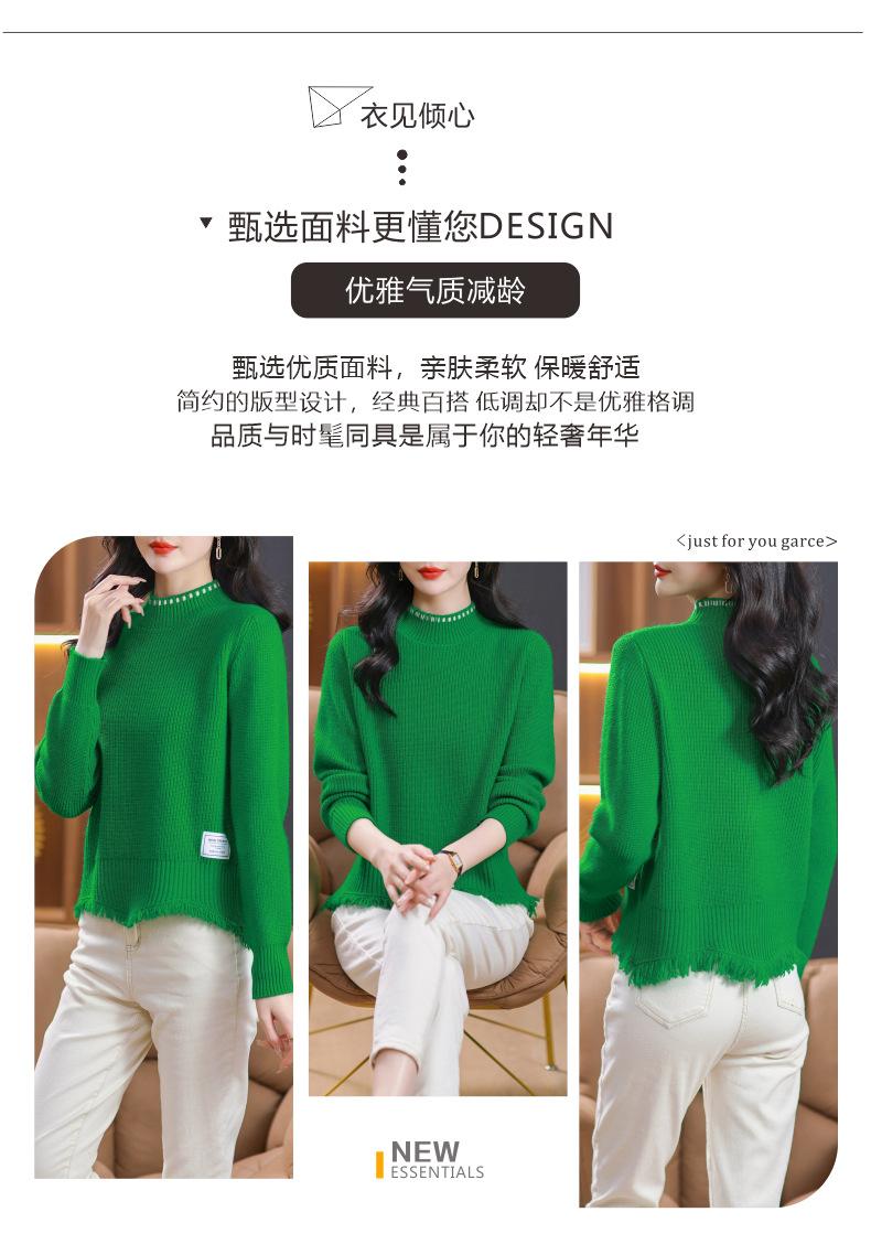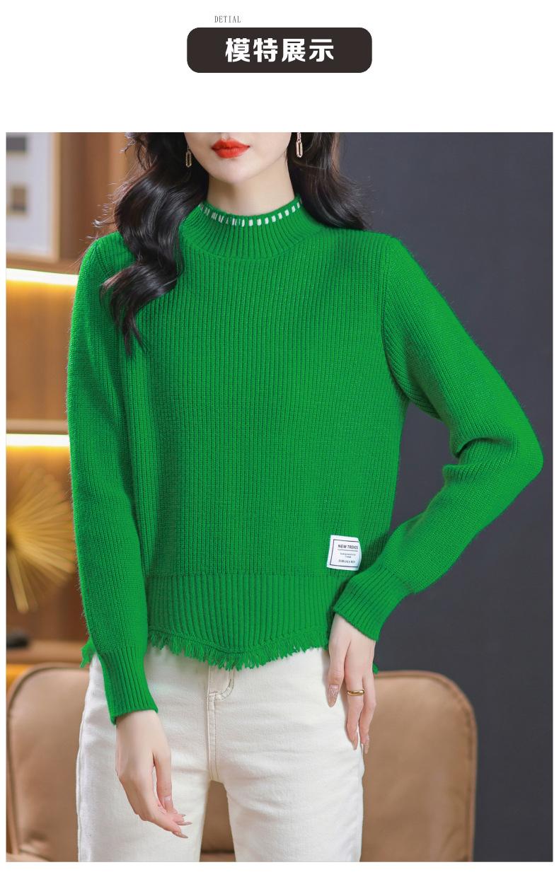 Suéter Corto con Borlas para Mujer Otoño Invierno 2025 Nueva Moda Top de Cintura Alta Petite Medio Cuello Alto Camisa Básica de Punto