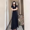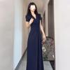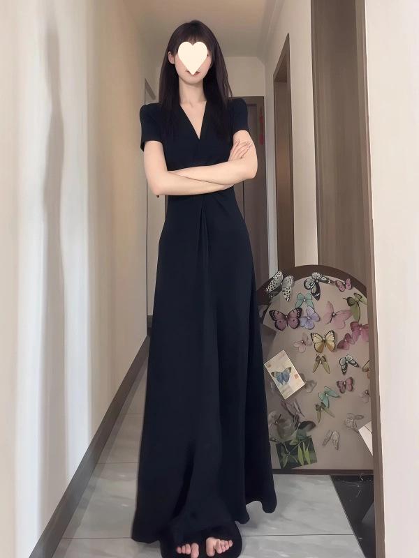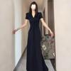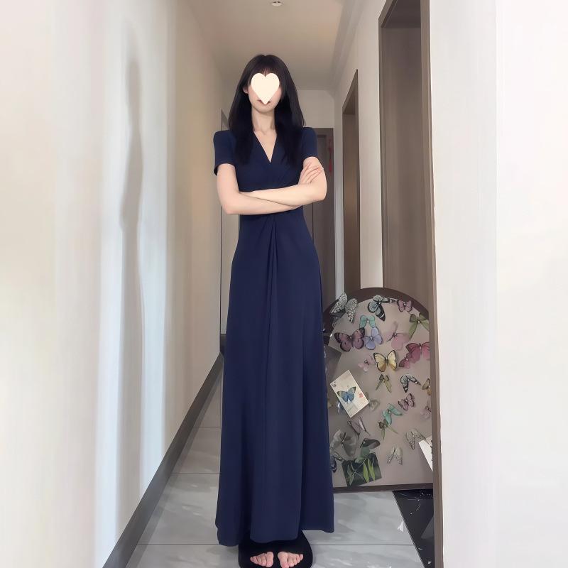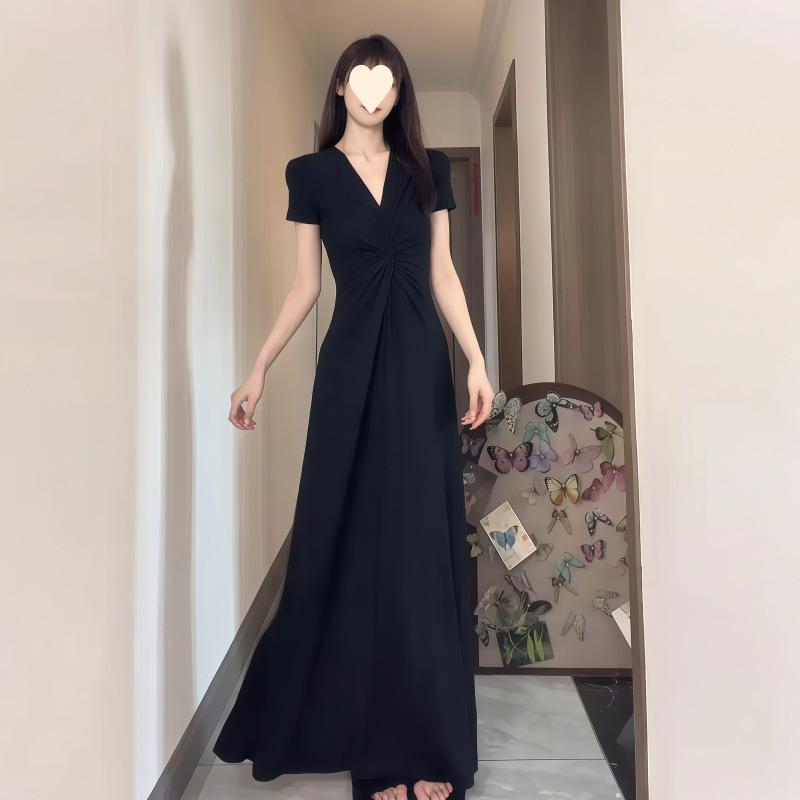 Verano francés puro y sexy chica caliente nuevo estilo de diseño vestido de cuello en V corte ajustado adelgazante cintura para mujer