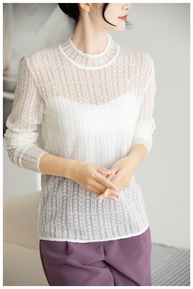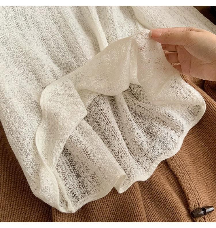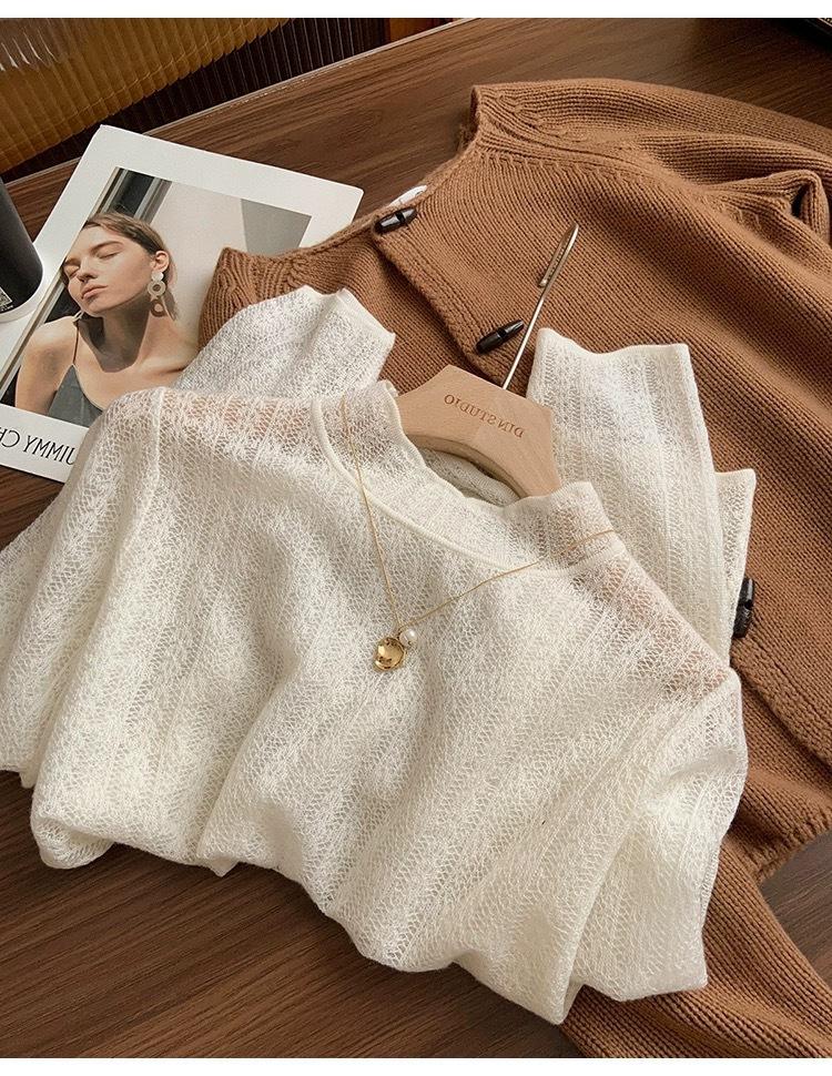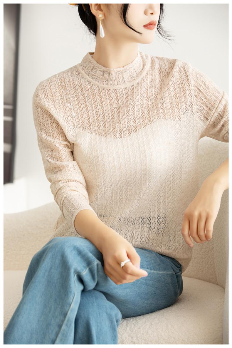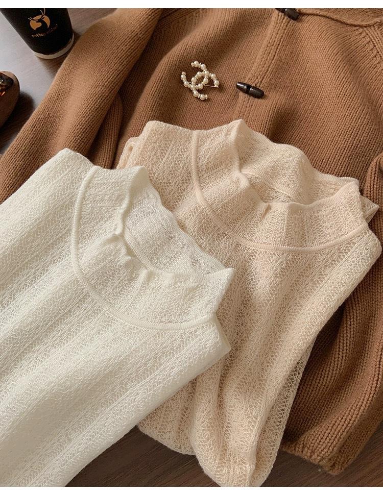 Principios de Otoño Encaje Calado Francés Camiseta Base Tejida para Mujer Cuello Semi-Alto Estilo Moderno y Extranjero Versátil Top Sexy Cárdigan
