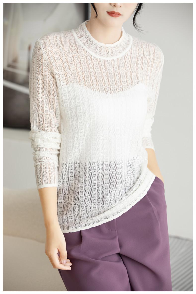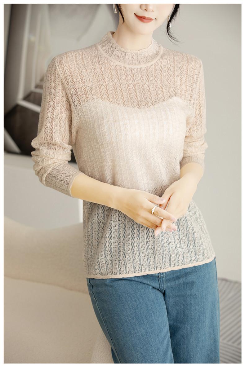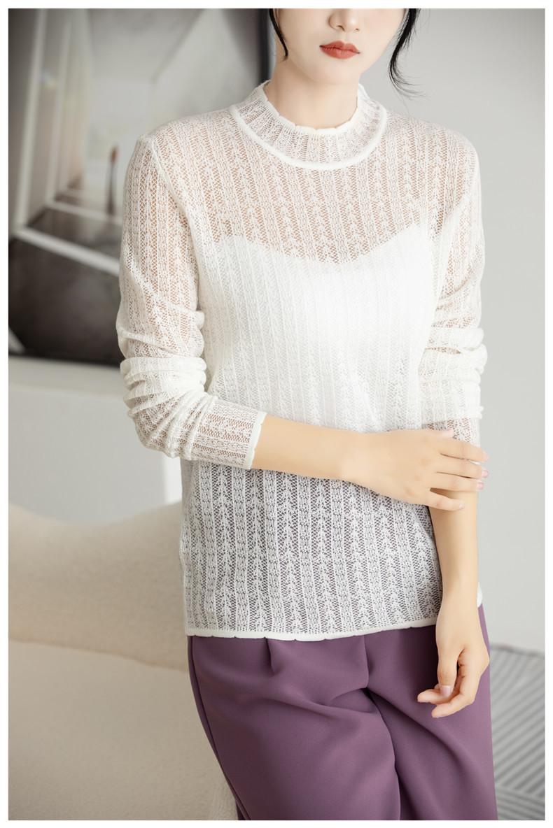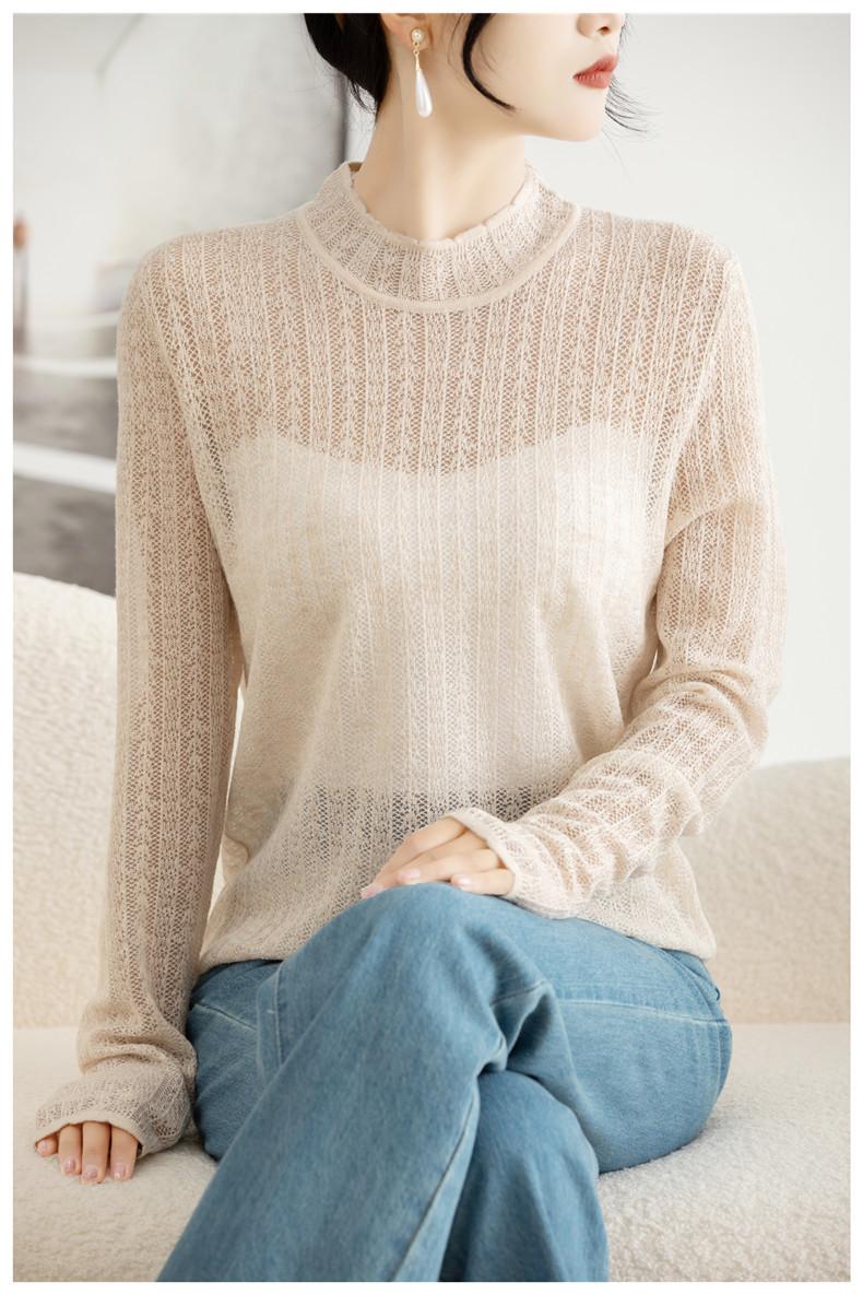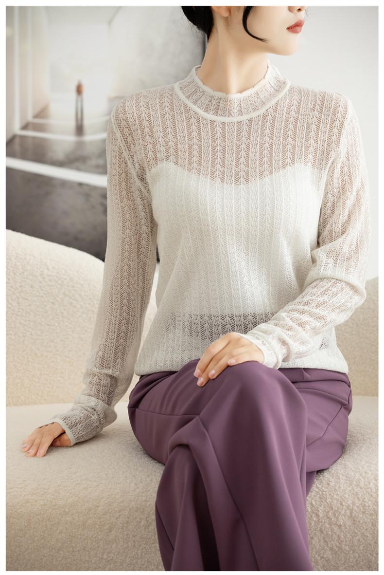 Principios de Otoño Encaje Calado Francés Camiseta Base Tejida para Mujer Cuello Semi-Alto Estilo Moderno y Extranjero Versátil Top Sexy Cárdigan