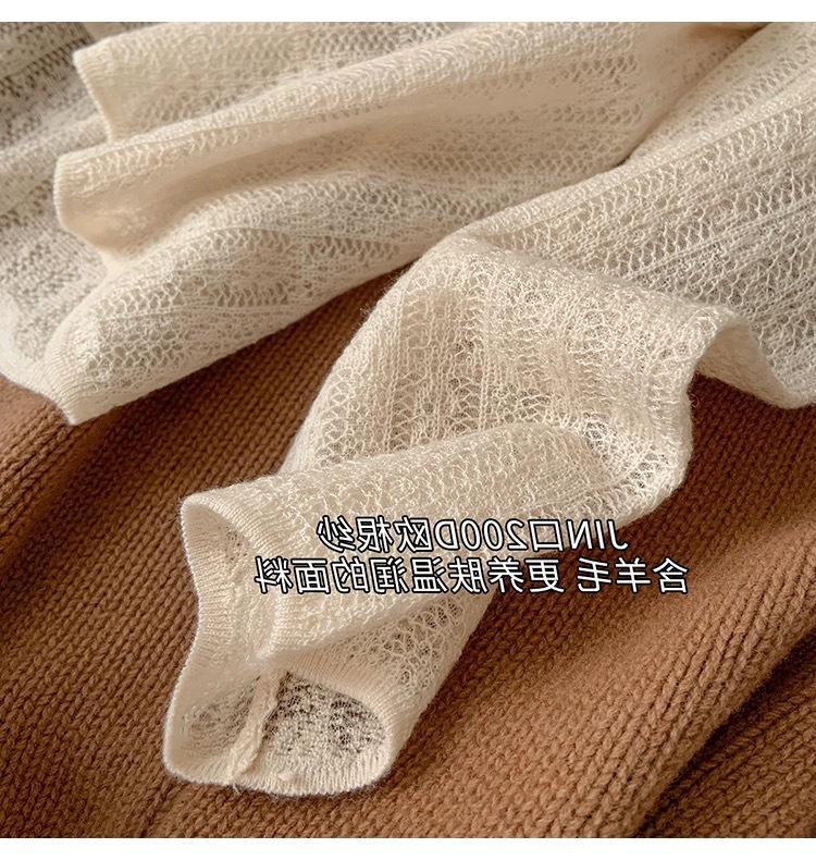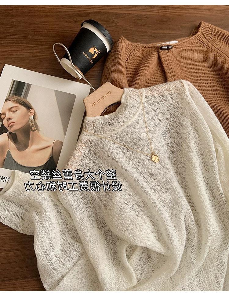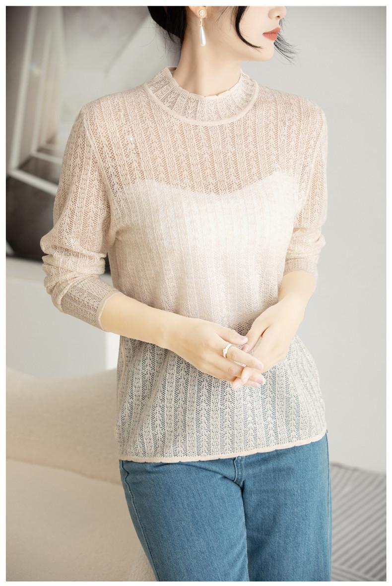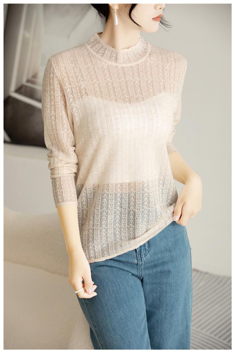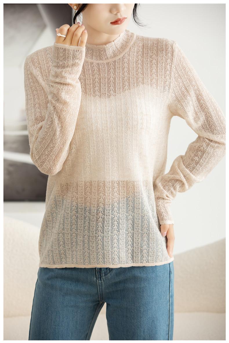 Principios de Otoño Encaje Calado Francés Camiseta Base Tejida para Mujer Cuello Semi-Alto Estilo Moderno y Extranjero Versátil Top Sexy Cárdigan