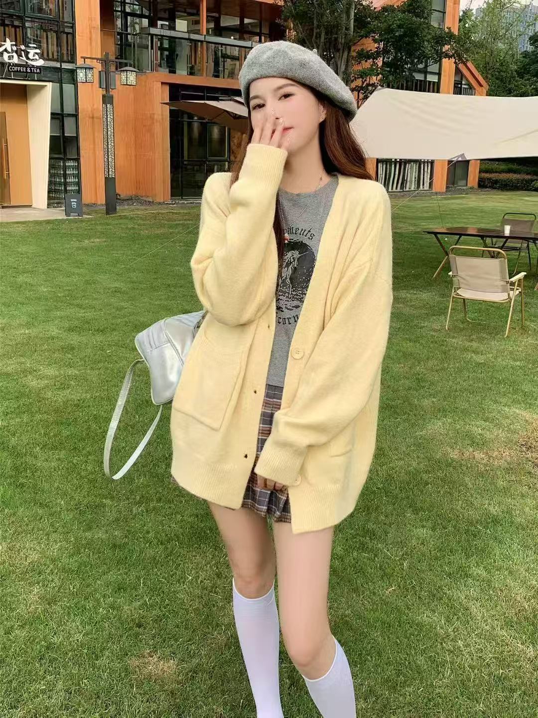 Cárdigan de Punto con Cordones de Estilo Perezoso Temperamental para Mujer Otoño e Invierno Nuevo Estilo Comercio Exterior Transfronterizo Suéter Holgado de Largo Medio Abrigo para Mujer | Cárdigan de punto estilo coreano para mujer otoño e invierno nuevo solapa holgado abotonadura simple casual versátil suéter abrigo mujer | Cárdigan de punto bouclé estilo coreano para mujer, nueva colección de otoño e invierno, estilo perezoso transfronterizo, corte holgado, cierre retro de palanca | Suéter con cremallera de color sólido para comercio exterior transfronterizo para mujer, nuevo para otoño e invierno, diseño europeo y americano, cárdigan de punto simple y grueso | |||