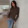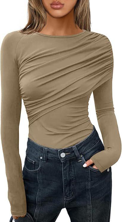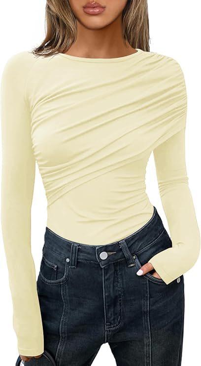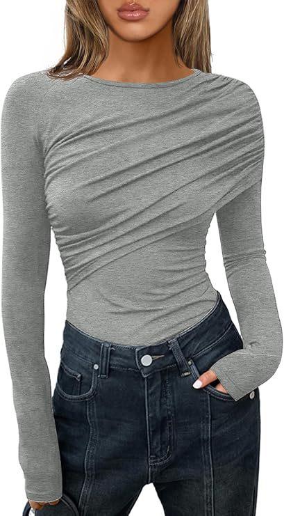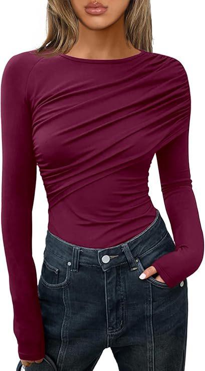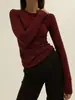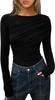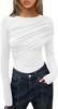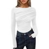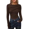Ropa de Mujer Transfronteriza Europea y Americana Otoño/Invierno 2025 Nueva Moda Casual Adelgazante Plisada Cuello Redondo Manga Larga Color Sólido Top Camiseta