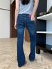 Yuyi Nuevo 2025 Verano Americano High Street Jeans Bootcut para Mujer Retro Personalizado Marca de Cuero Pantalones Casuales Xf1223