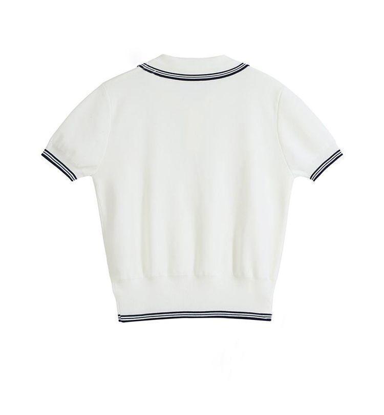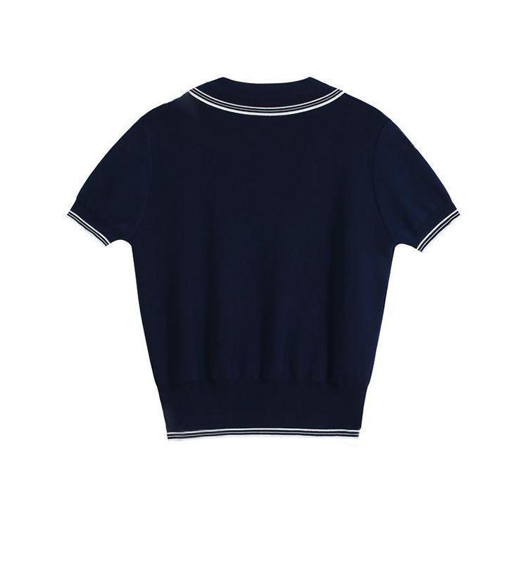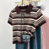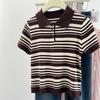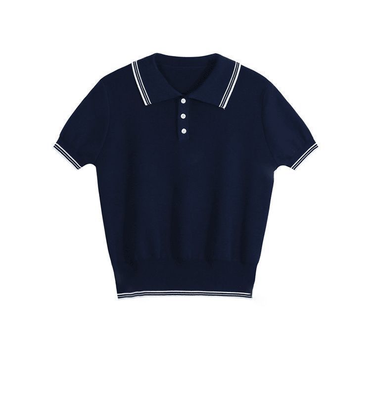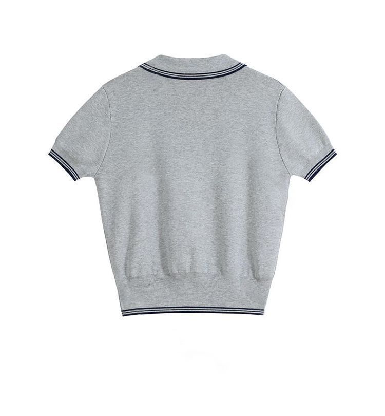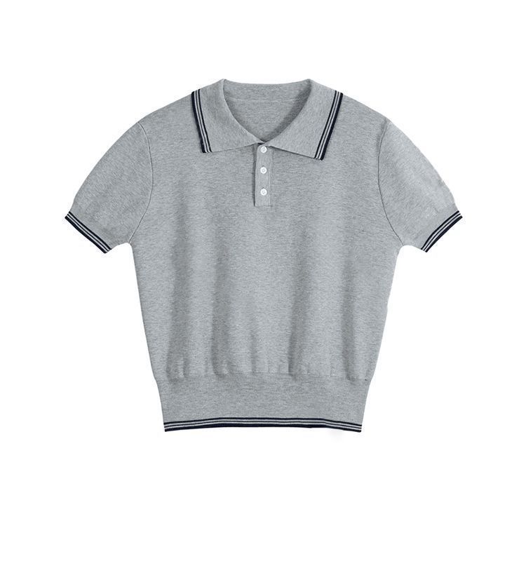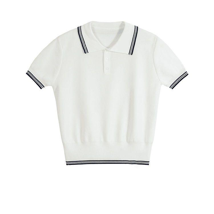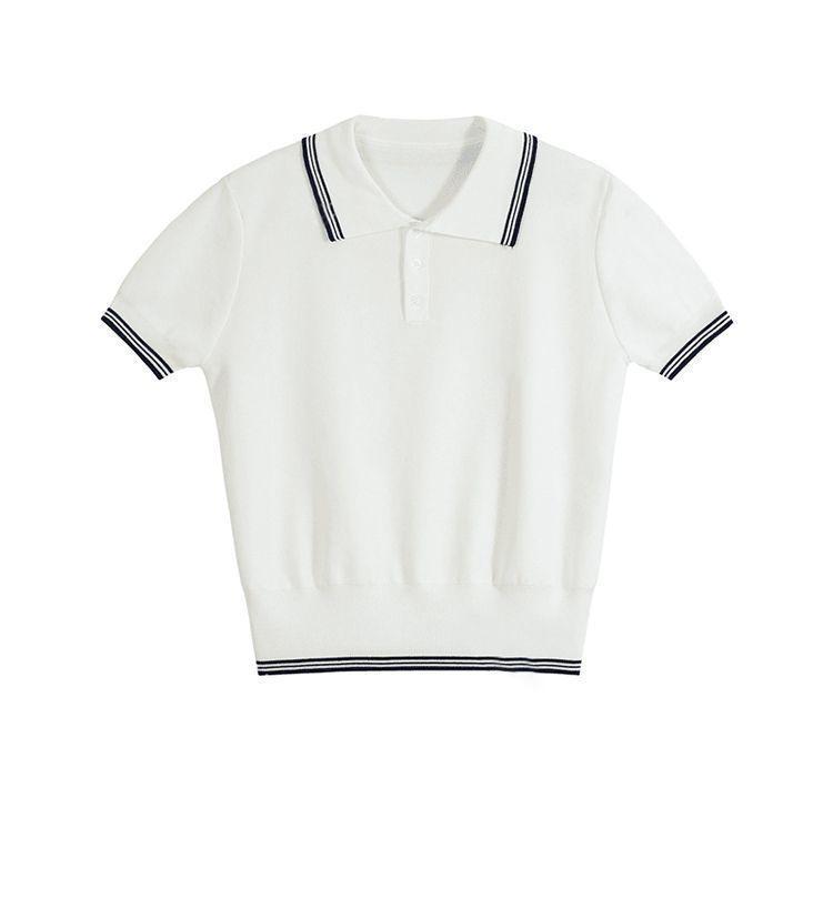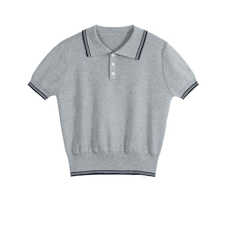 Verano Nuevo Polo Corto Cuello Vuelto Bloque de Color Moderno Versátil Top Camisa Tejida Desplazamiento Diario Top Versátil Mujeres