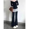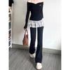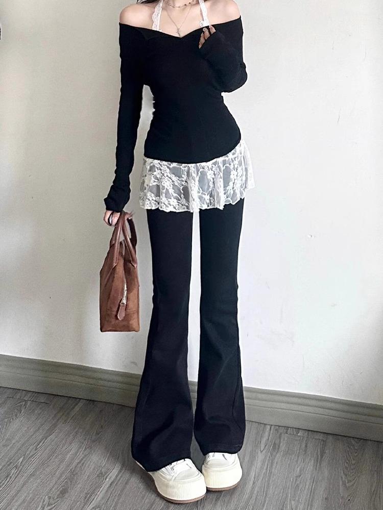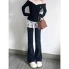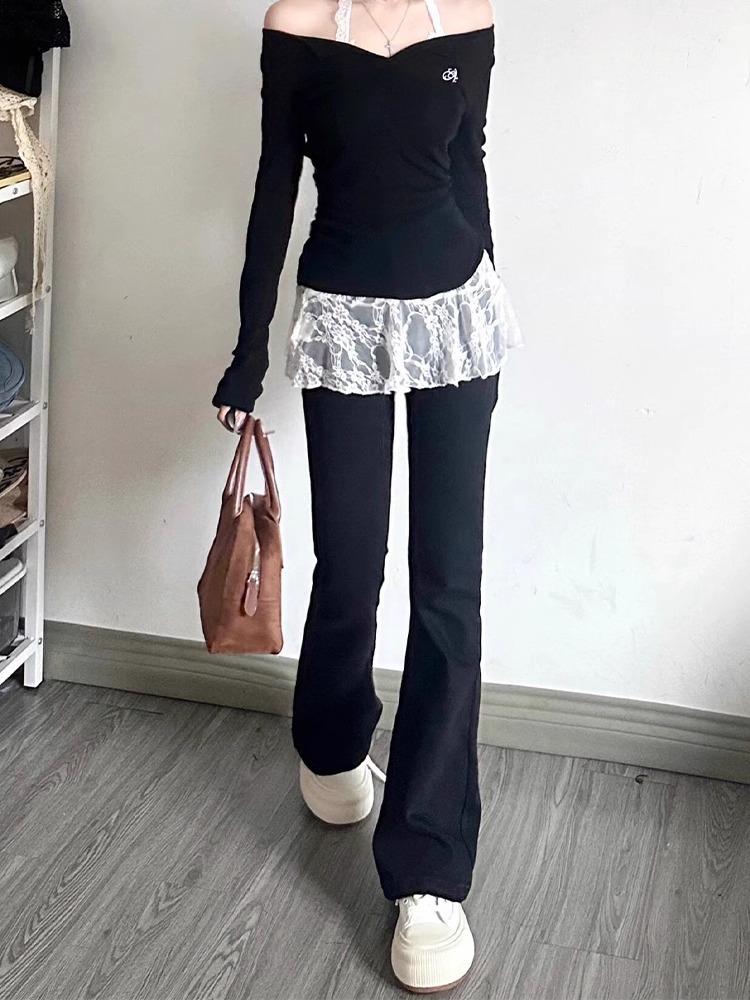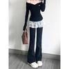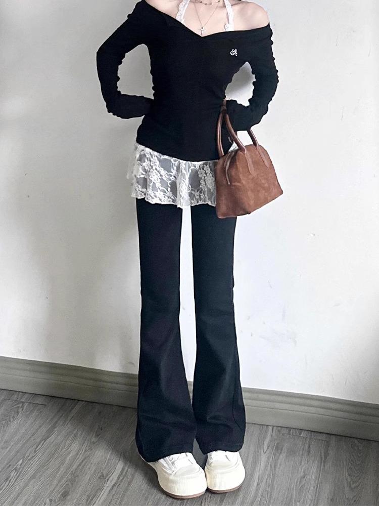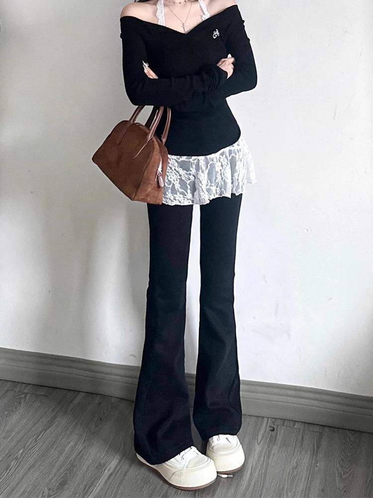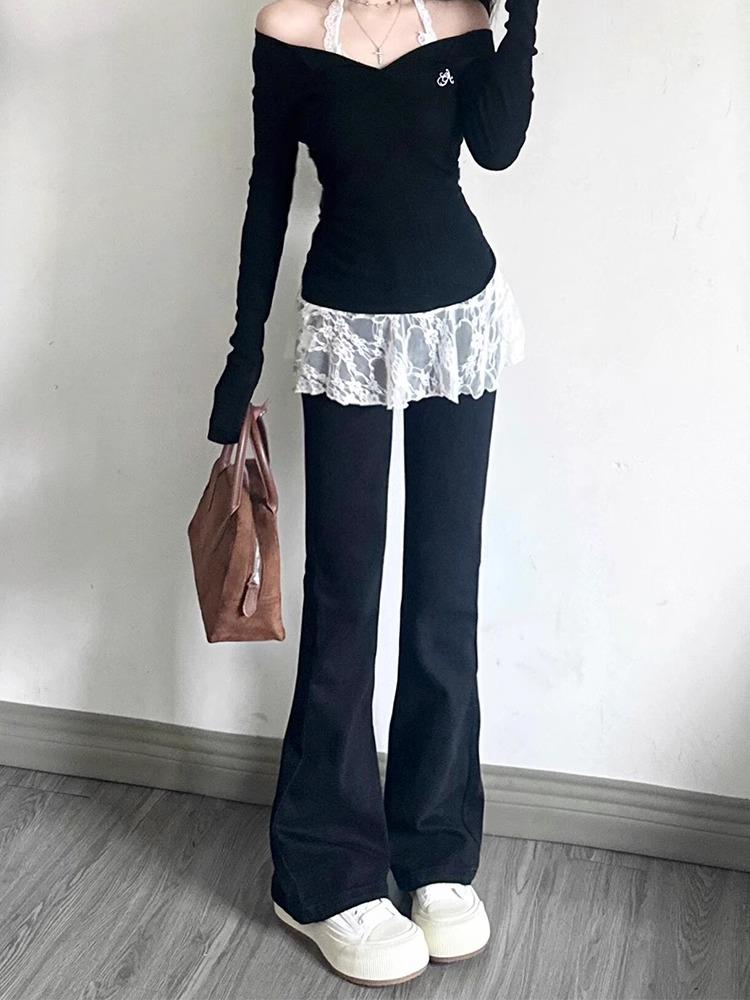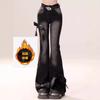Jeans Acampanados Micro Negros de Talla Grande para Mujer Otoño Nuevo Americano Chica Picante Cintura Alta Adelgazantes Pierna Recta Pantalones Largos