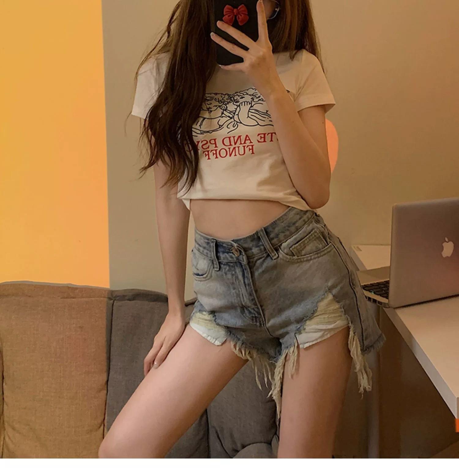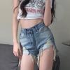 Shorts de mezclilla para mujer con agujeros 2023 Nuevo verano Cintura alta Adelgazantes Calientes Modernos Pantalones cortos