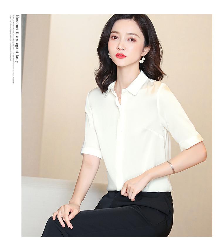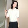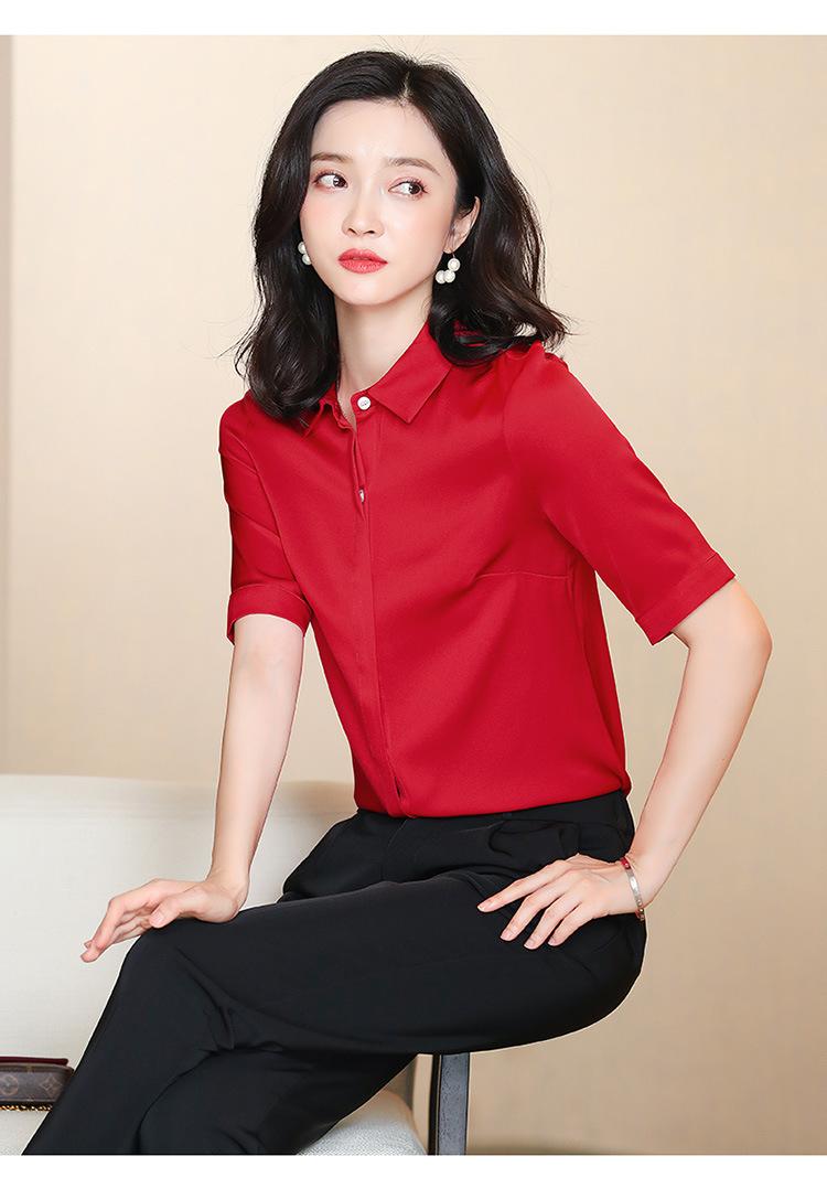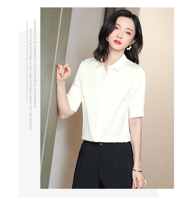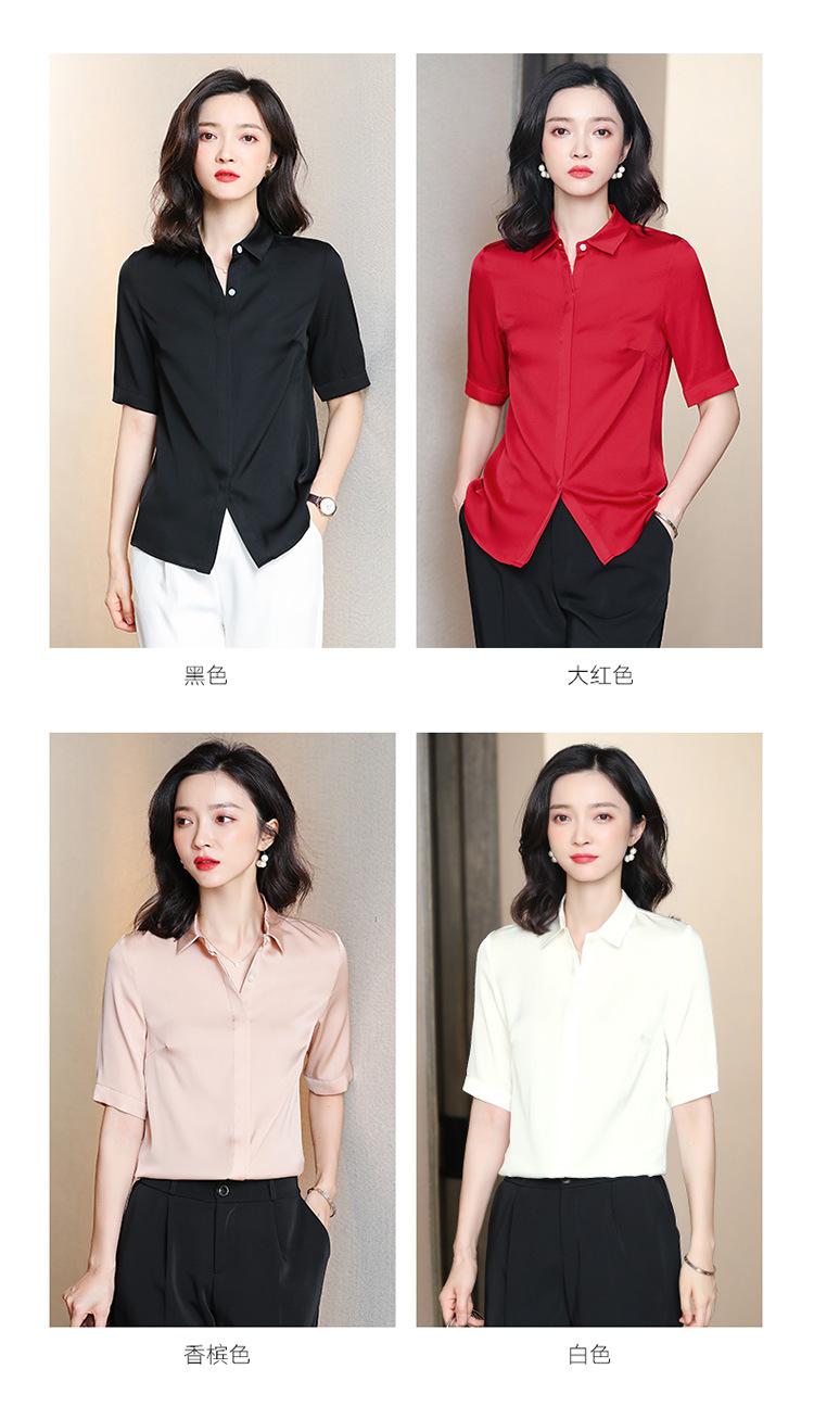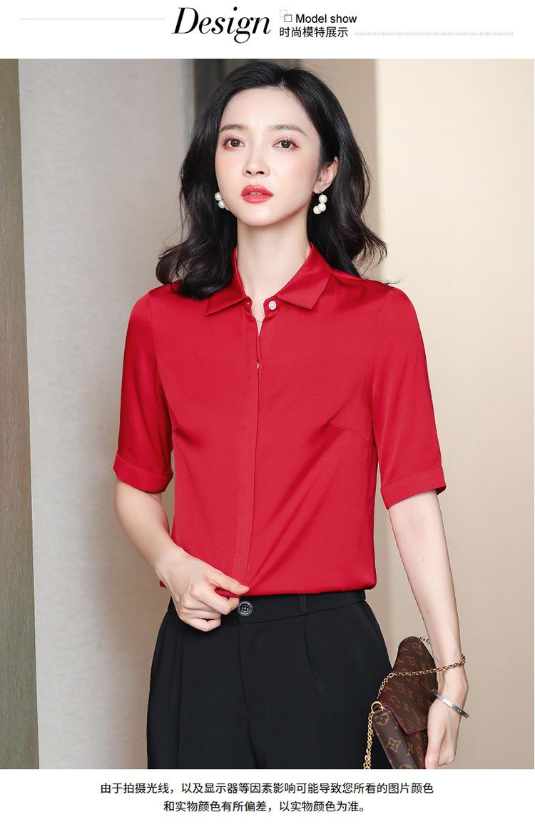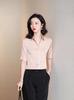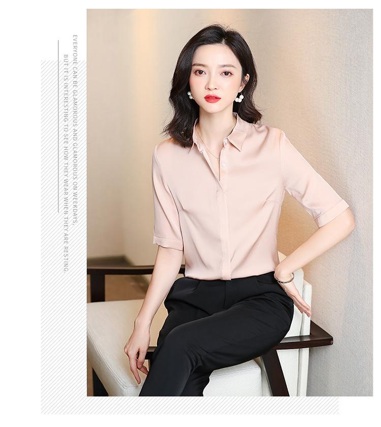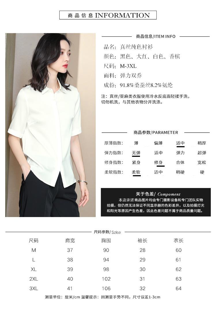 Camisa de Seda de Manga Corta Estilo Verano para Mujer, Elegante Color Sólido de Botonadura Sencilla, Stock Listo Camisa de Seda para Mujer