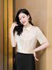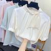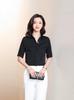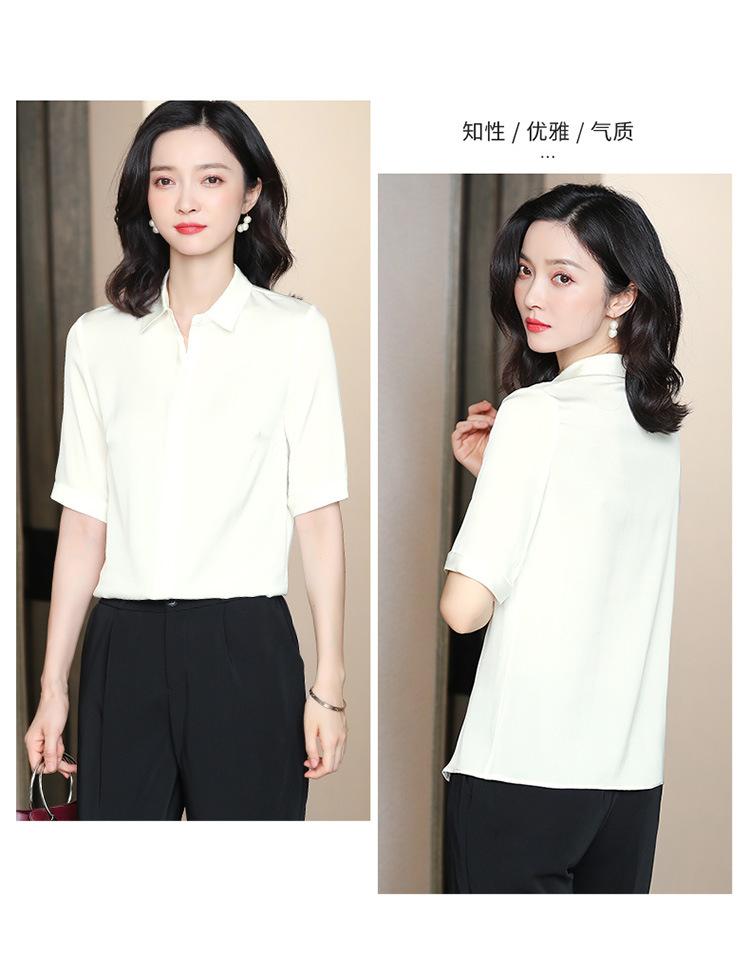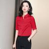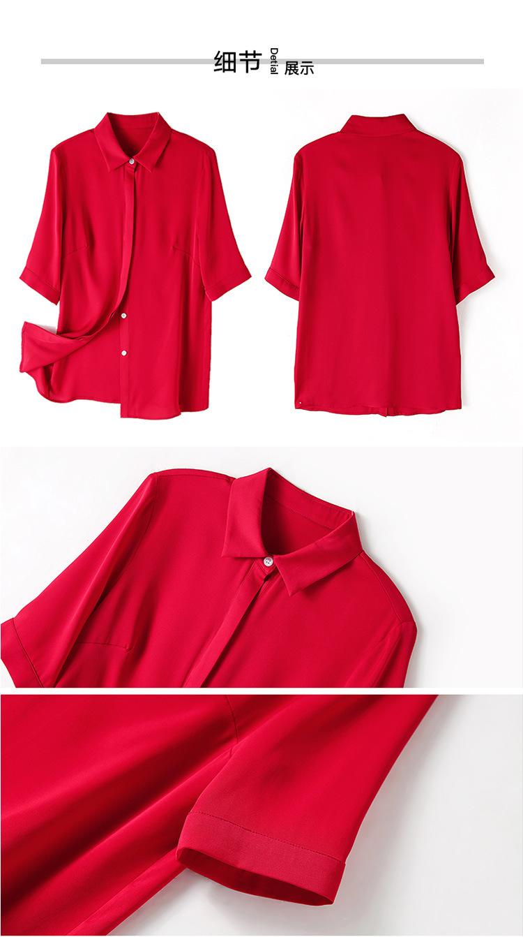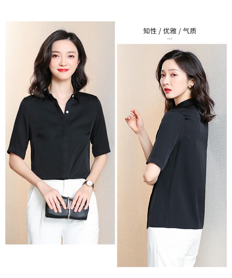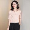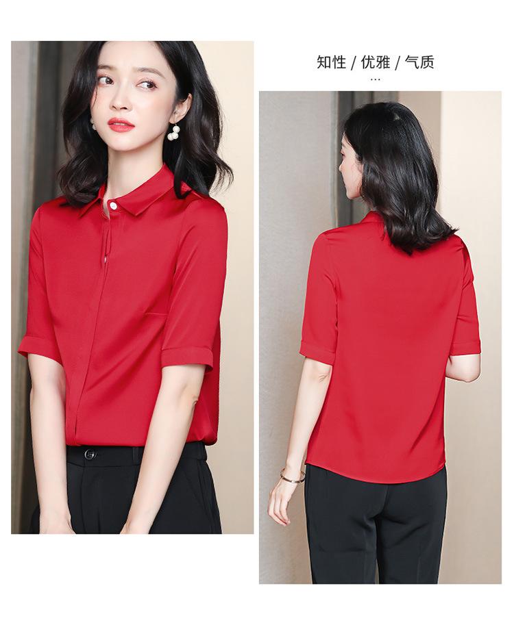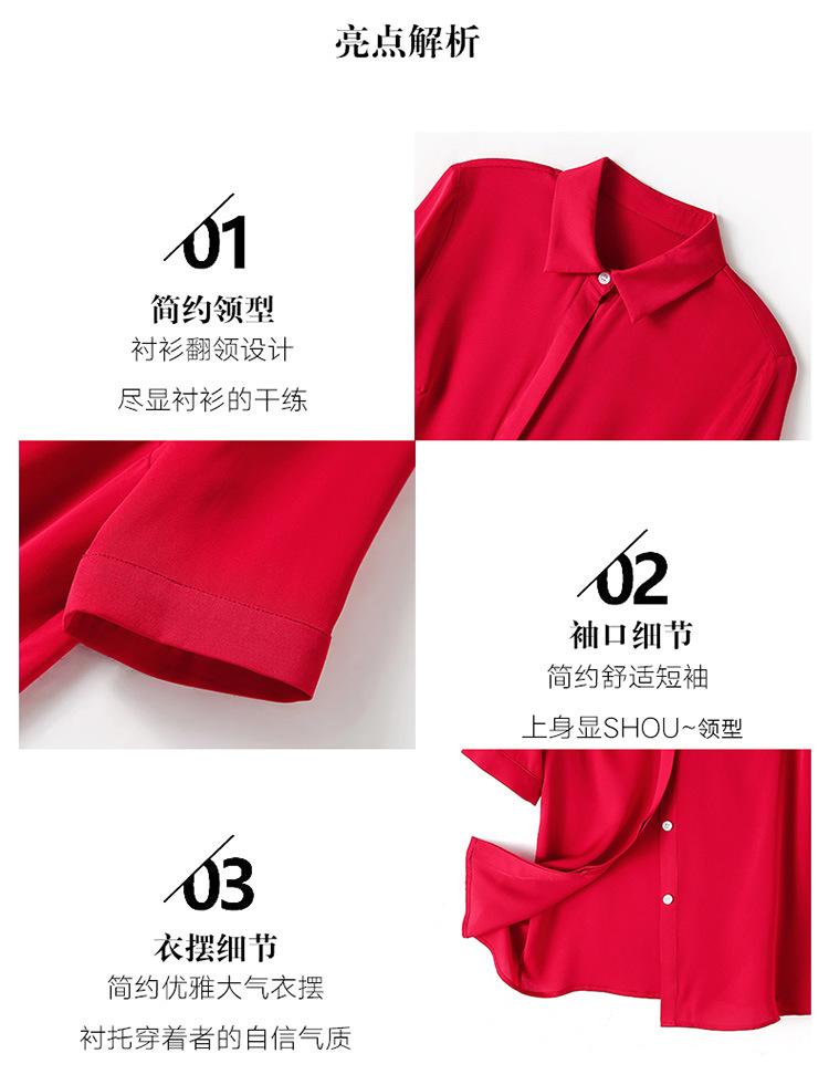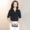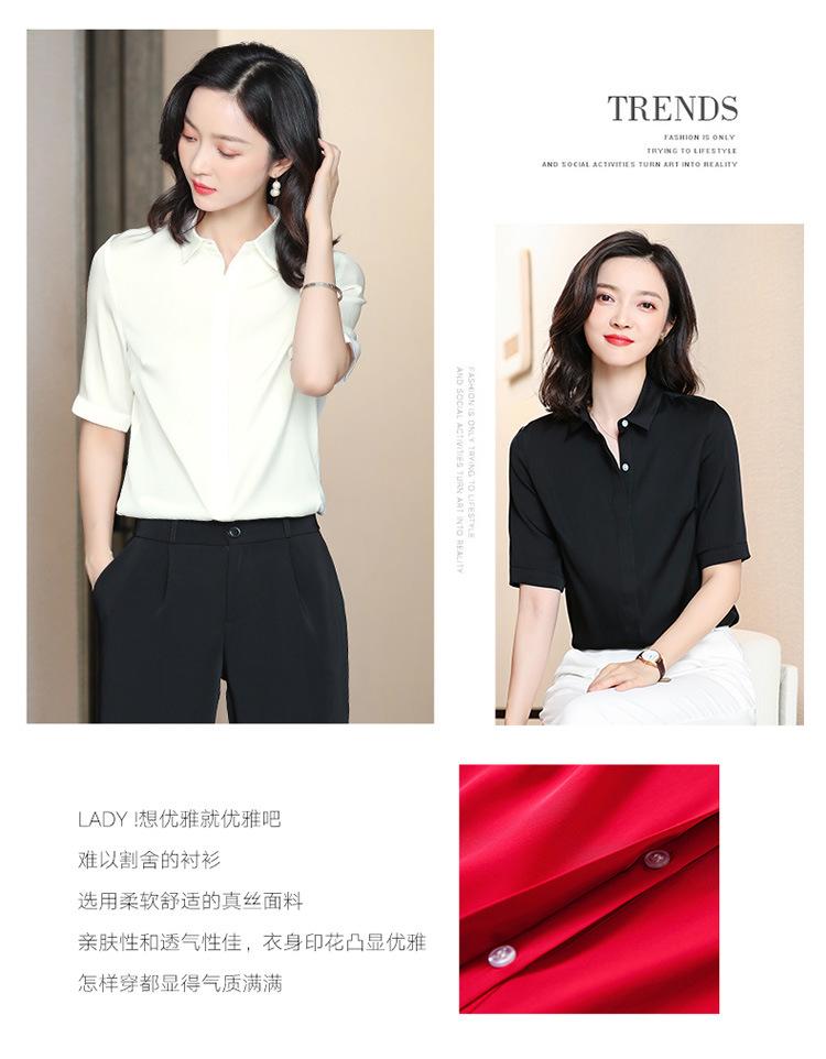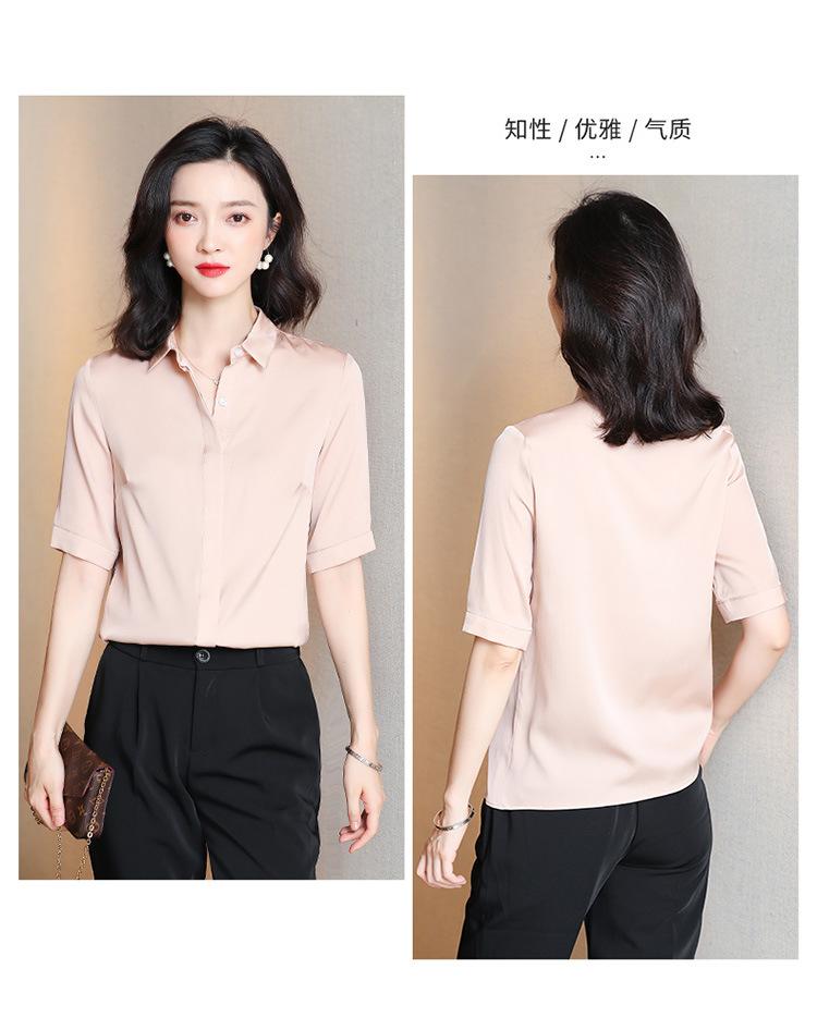 Camisa de Seda de Manga Corta Estilo Verano para Mujer, Elegante Color Sólido de Botonadura Sencilla, Stock Listo Camisa de Seda para Mujer