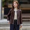 Otoño 2025 Nuevo Estilo Europeo y Americano Moda Versátil Casual Diseño Holgado Cuero PU Cuello Solapa Chaqueta Casual Top