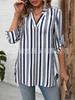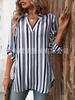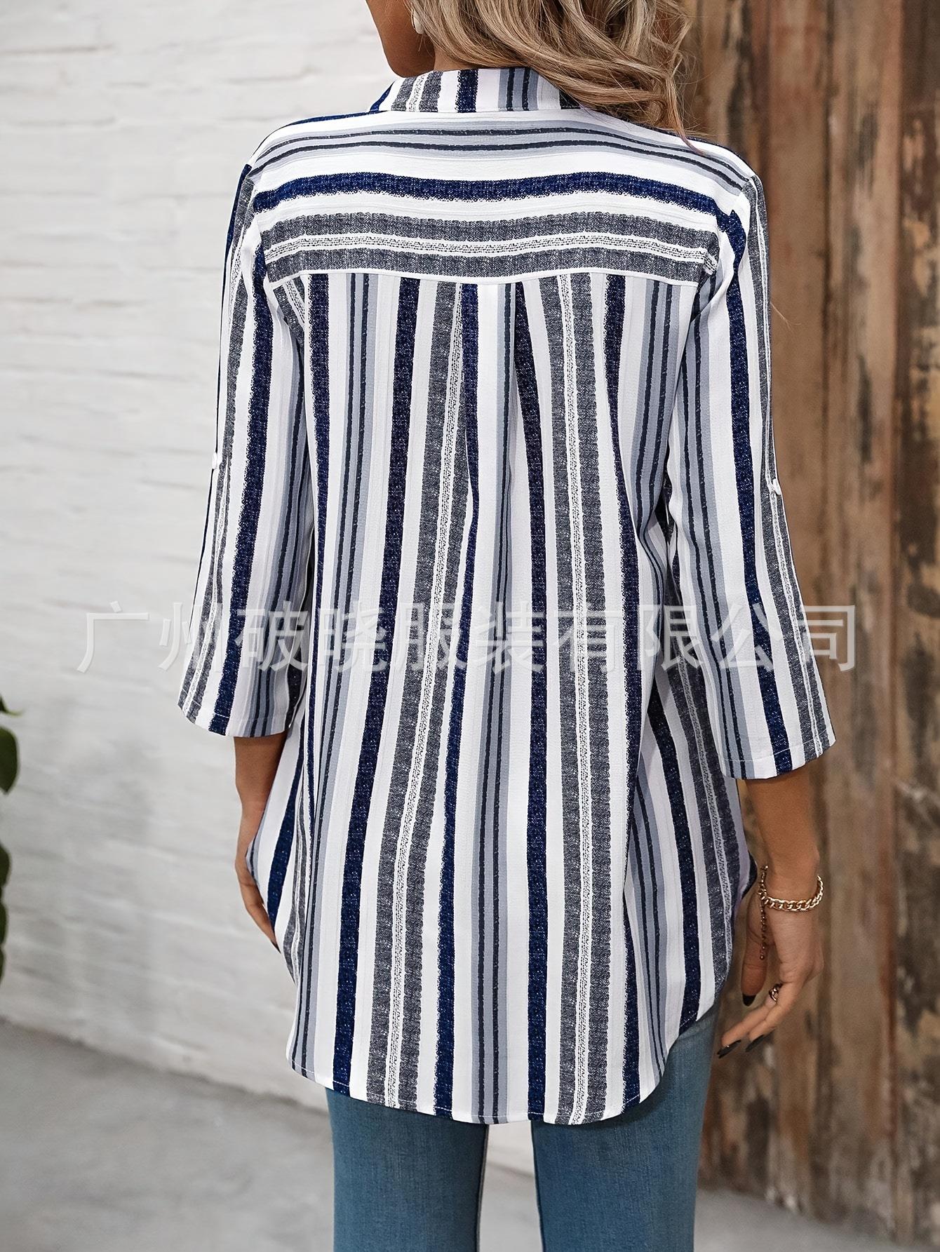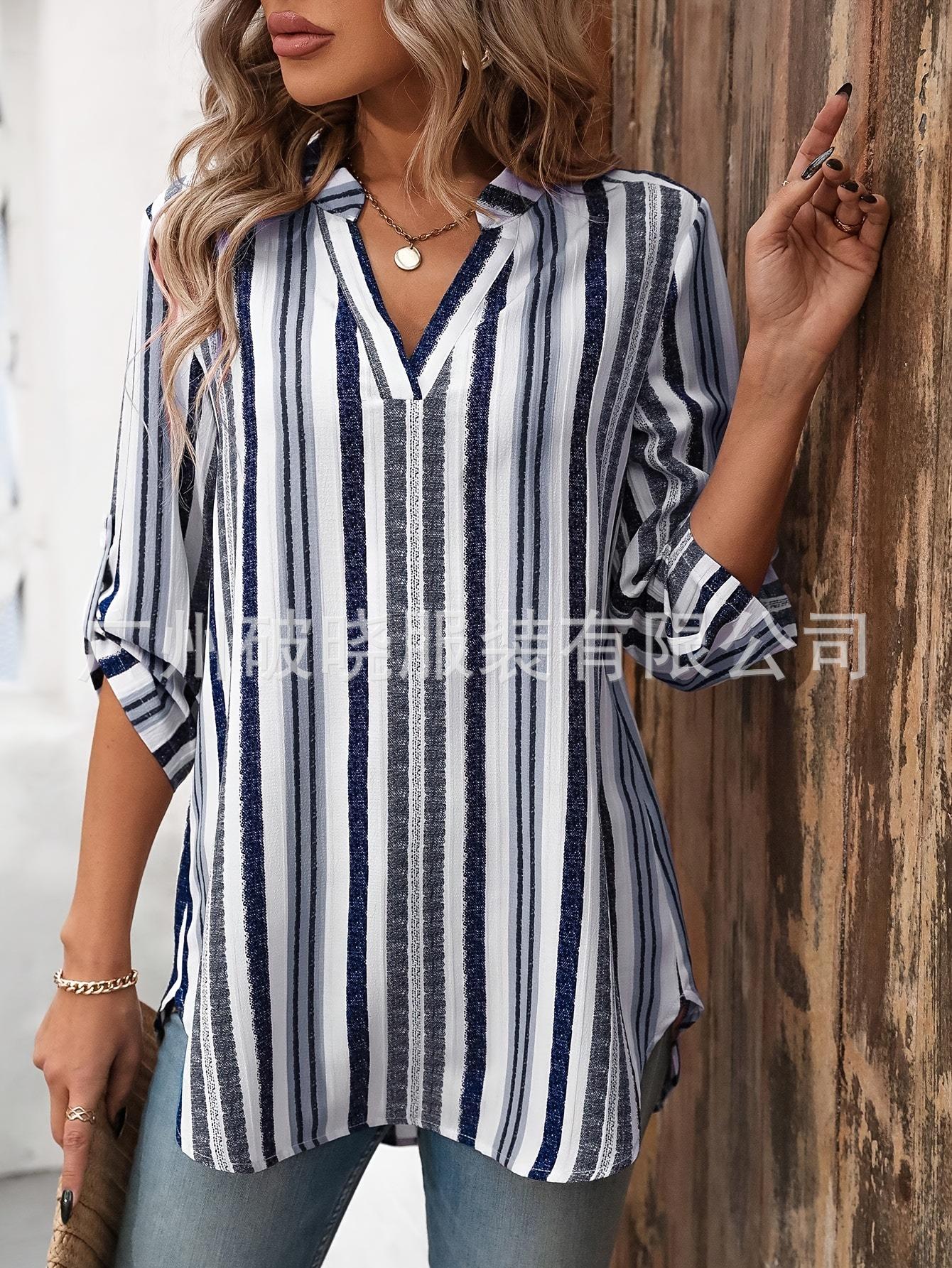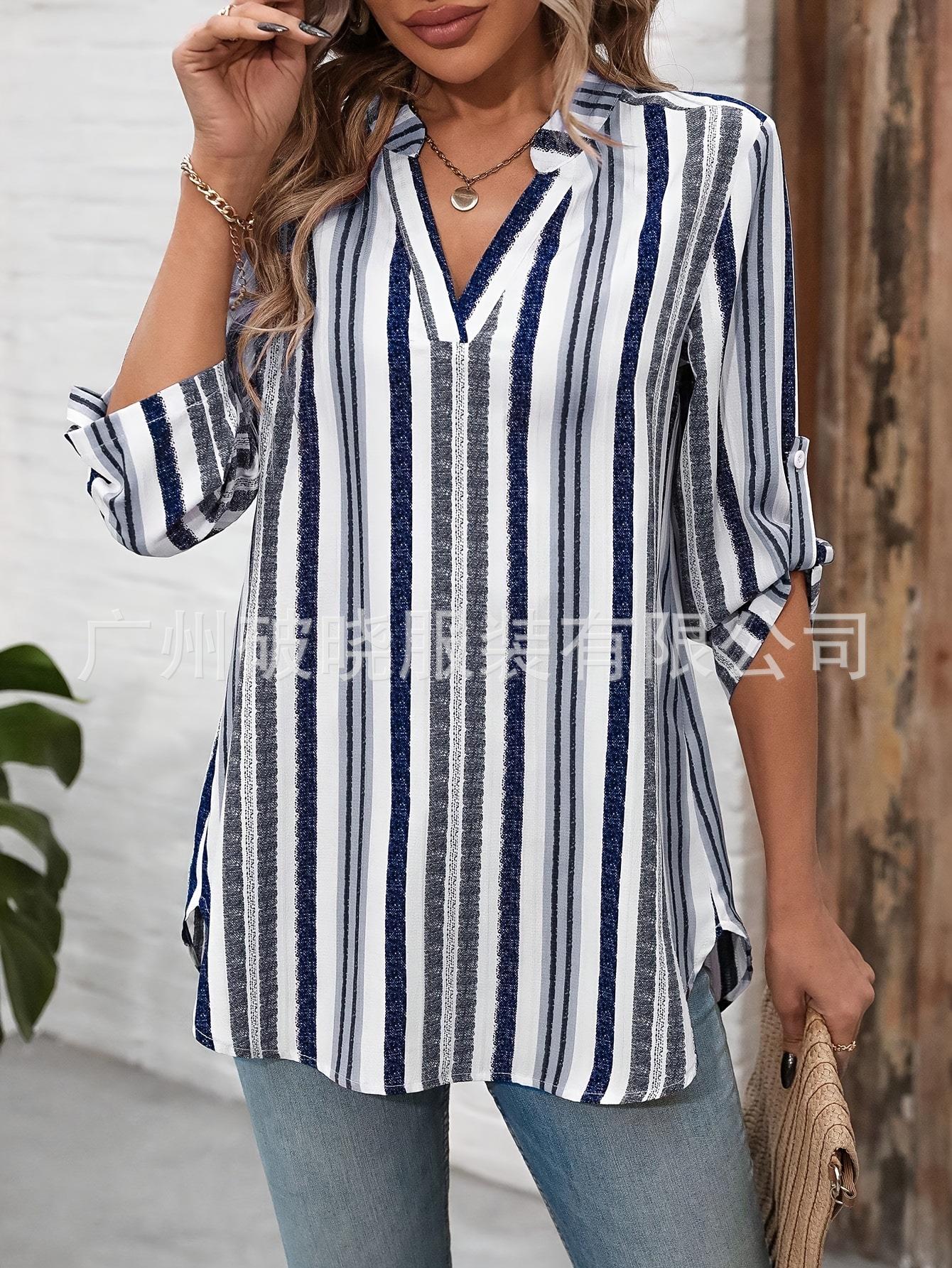 2025 Nueva Exportación Transfronteriza Europea y Americana Camisa de Manga Larga para Mujer Estampada a Rayas Moderna con Cuello en V Slim y Versátil
