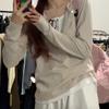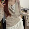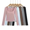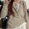 Primavera y Otoño Sentido del Diseño Botón Cuello Medio Abierto Capa Base Top Dulce y Picante Pequeño Secreto Bloque de Color Falso Dos Piezas Camiseta de Manga Larga Mujer