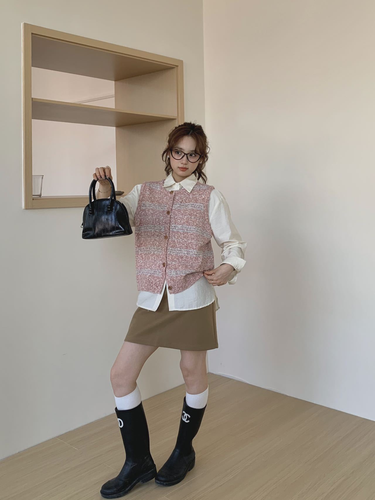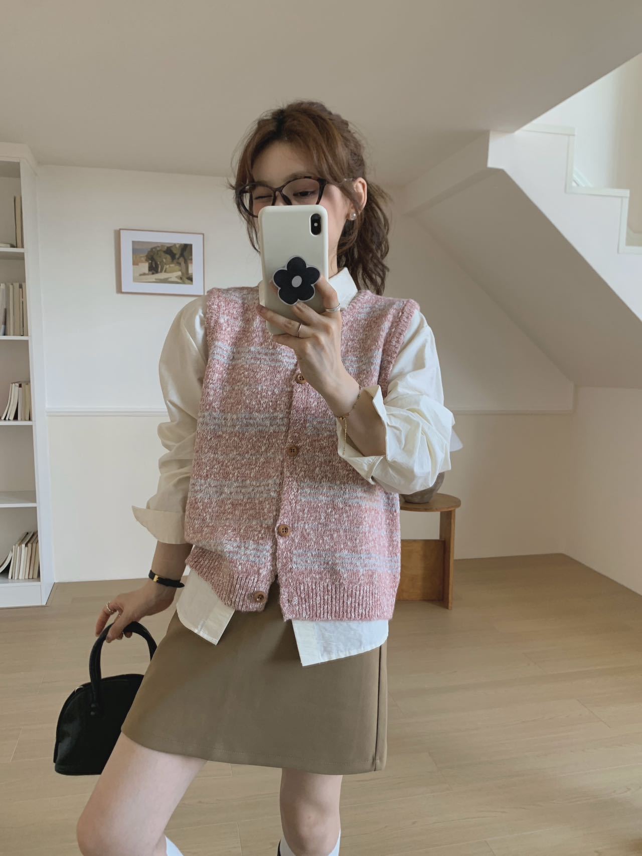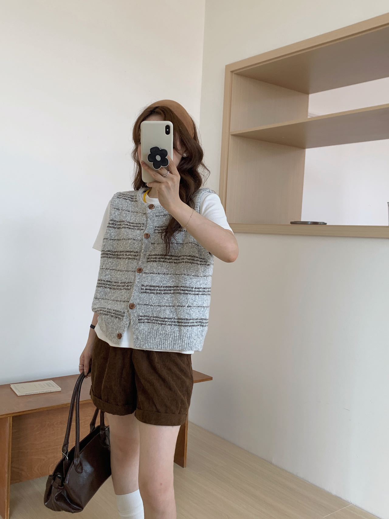 Chaleco de Punto a Rayas Retro para Mujer Estilo Coreano 2025 Otoño/Invierno Nuevo Adelgazante Versátil Sin Mangas para Superponer Jersey Trendy