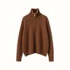 Suéter de Cachemira Mujer Otoño Invierno Nuevo Jersey de Manga Larga Medio Cierre Jersey de Manga Larga Tejido de Lana Suéter Base