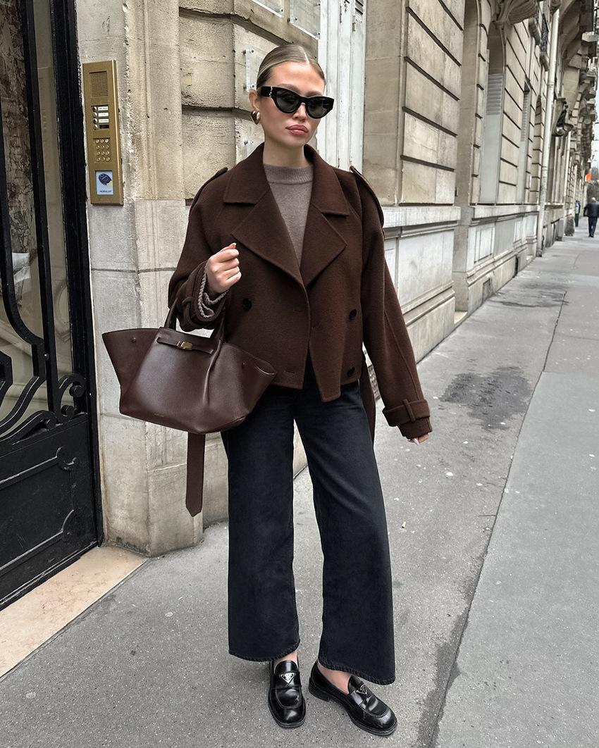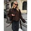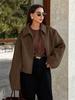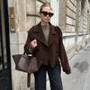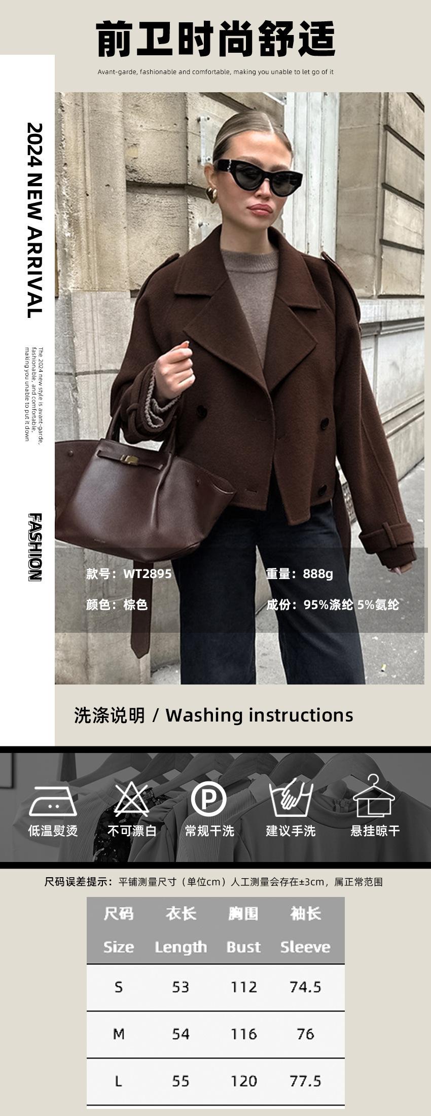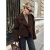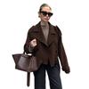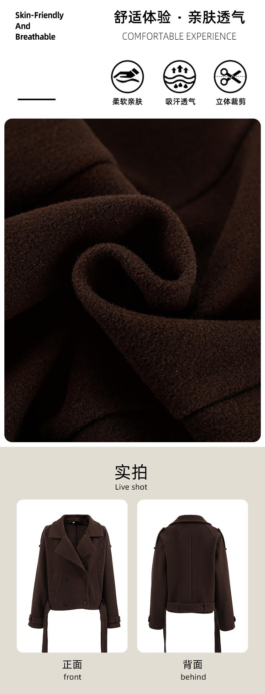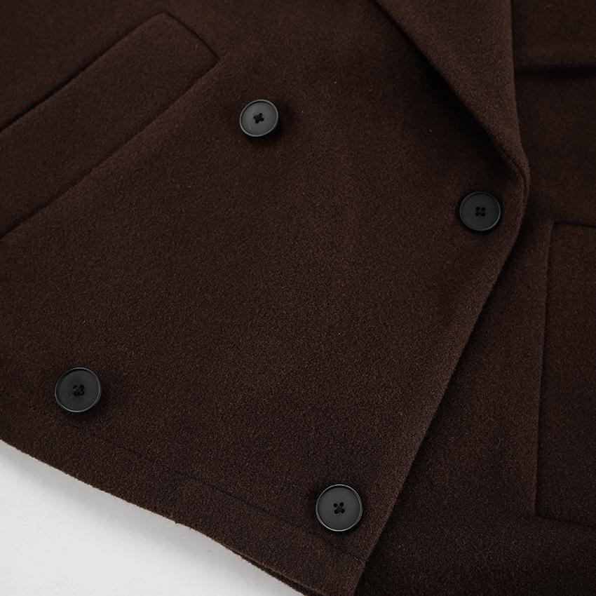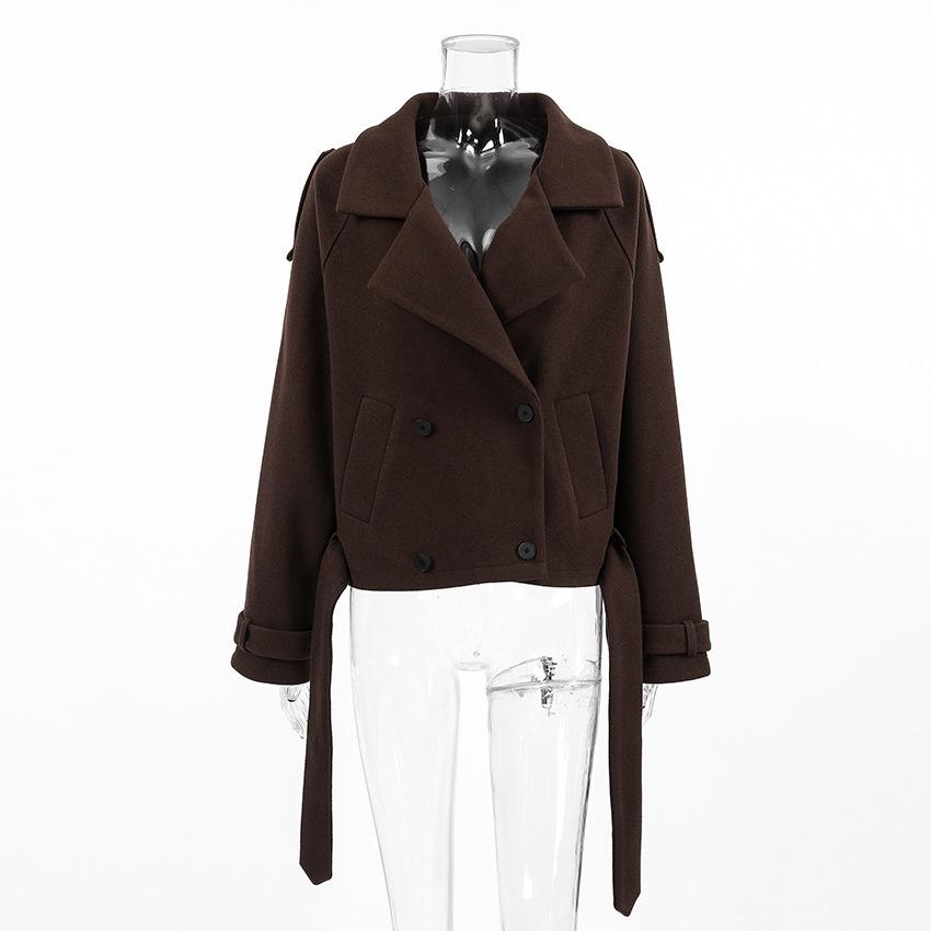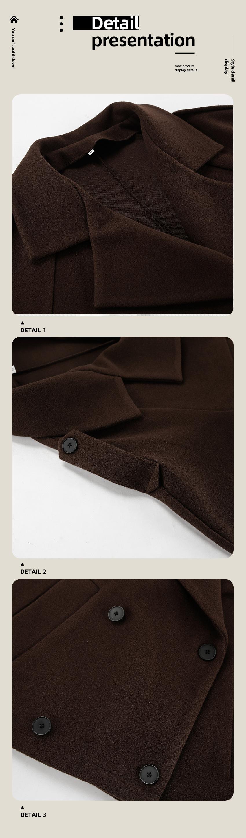 Abrigo de Lana Marrón Europeo y Americano Transfronterizo de Otoño e Invierno para Mujer Moda Femenina Grueso Doble Botonadura Forro Polar Sobretodo Chaqueta Ropa Suelta de Mujer