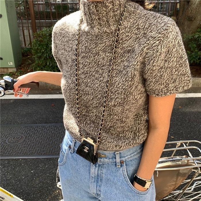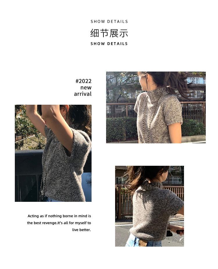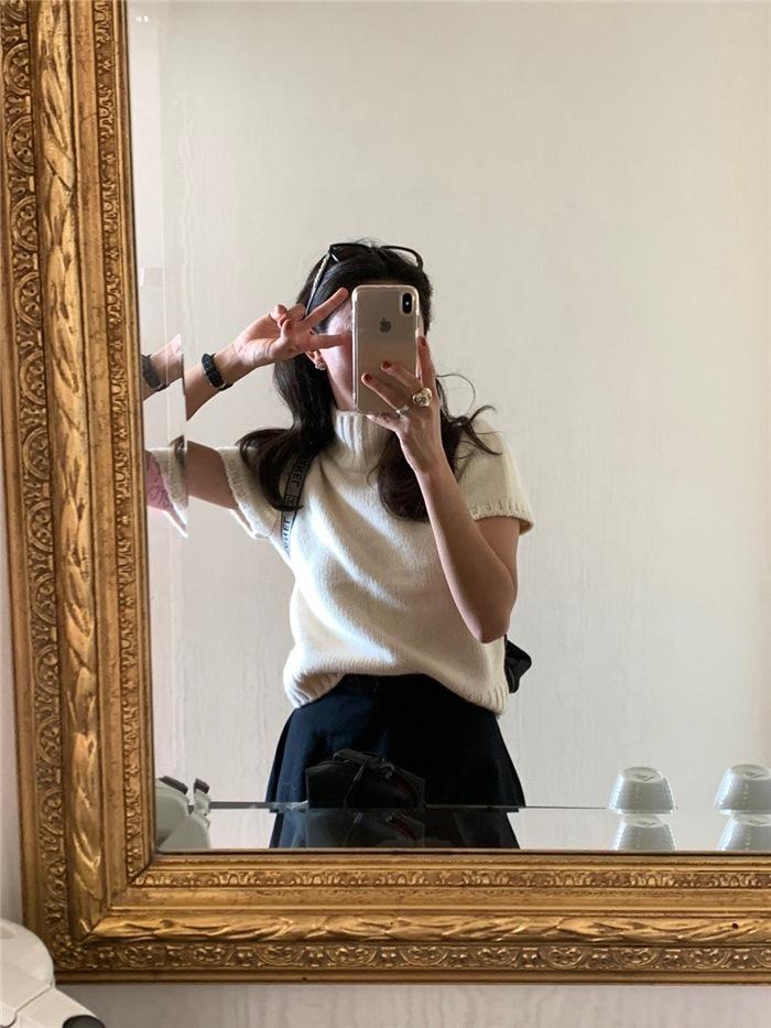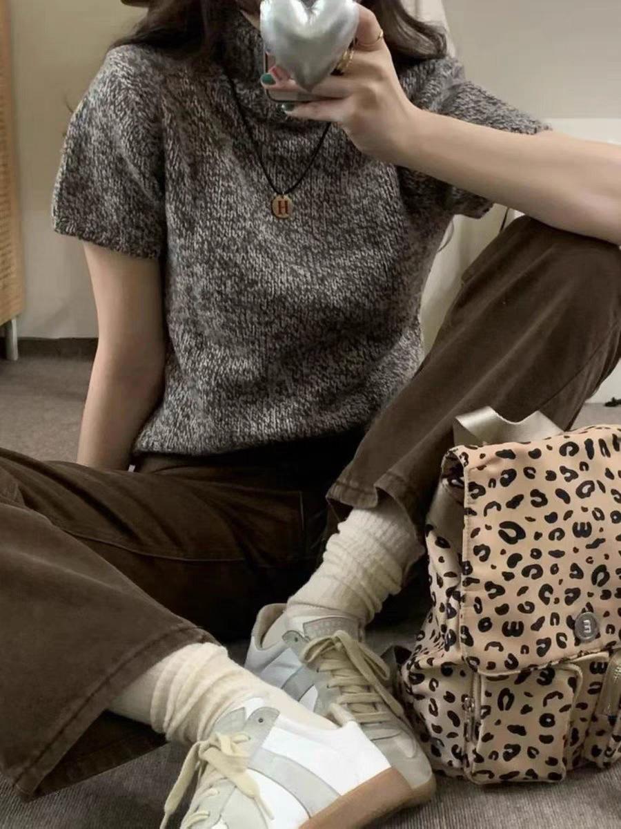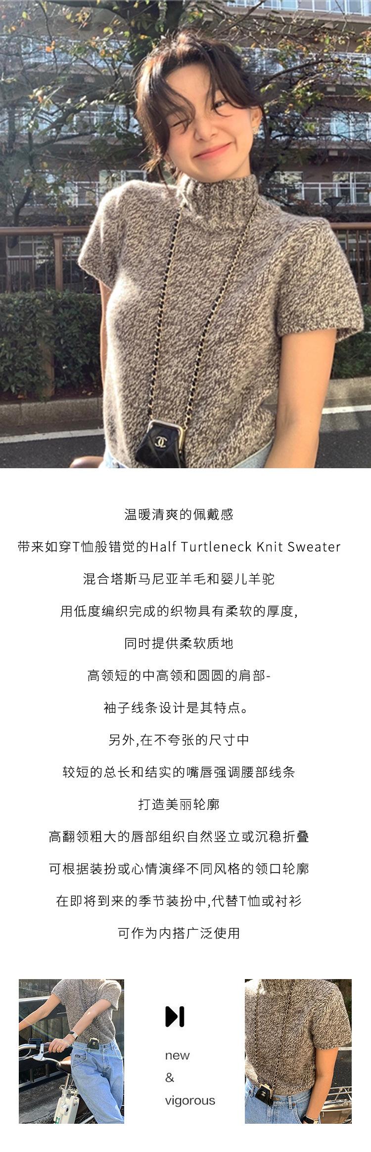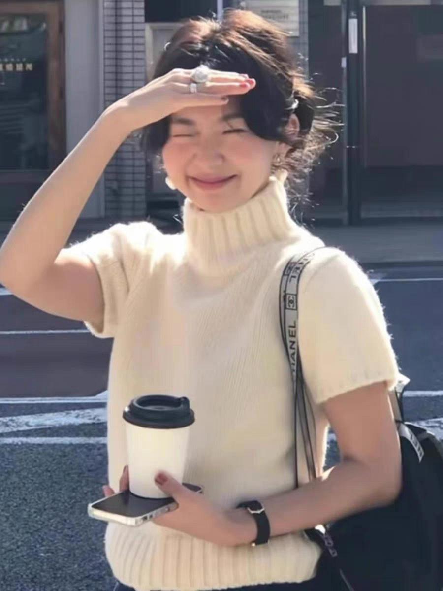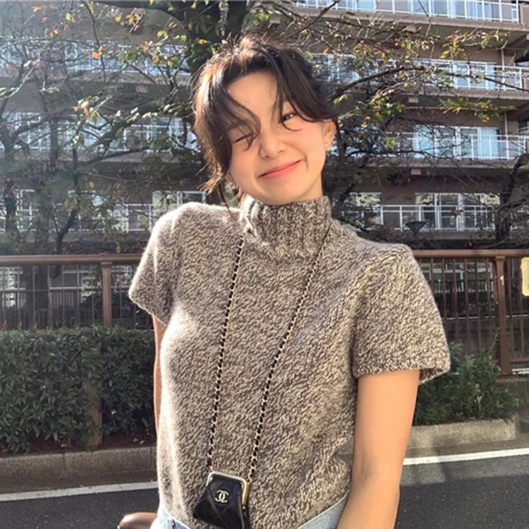En stock Otoño 2025 Nuevo Coreano Dongdaemun th*Bar*net Holgado Adelgazante Cuello Semialto Manga Corta Top de Punto