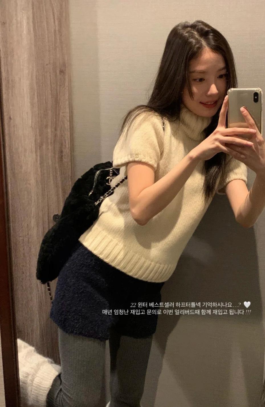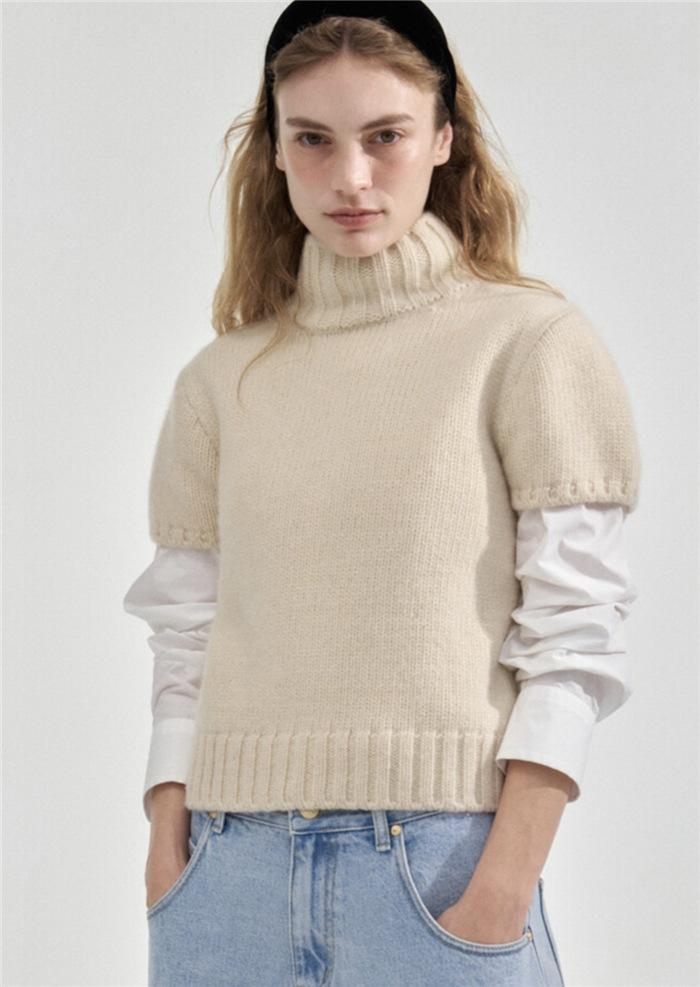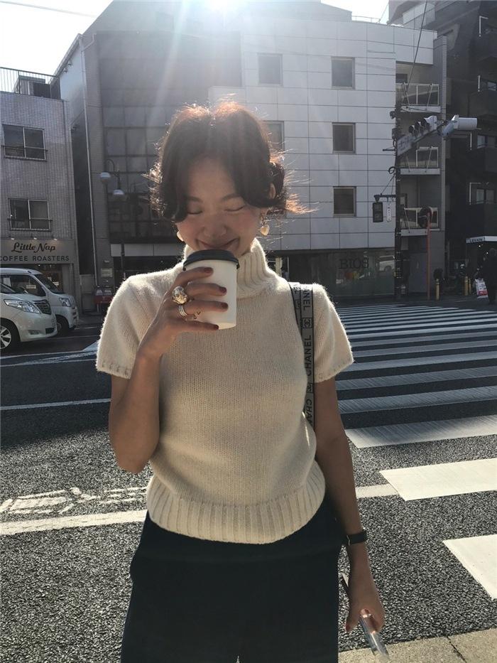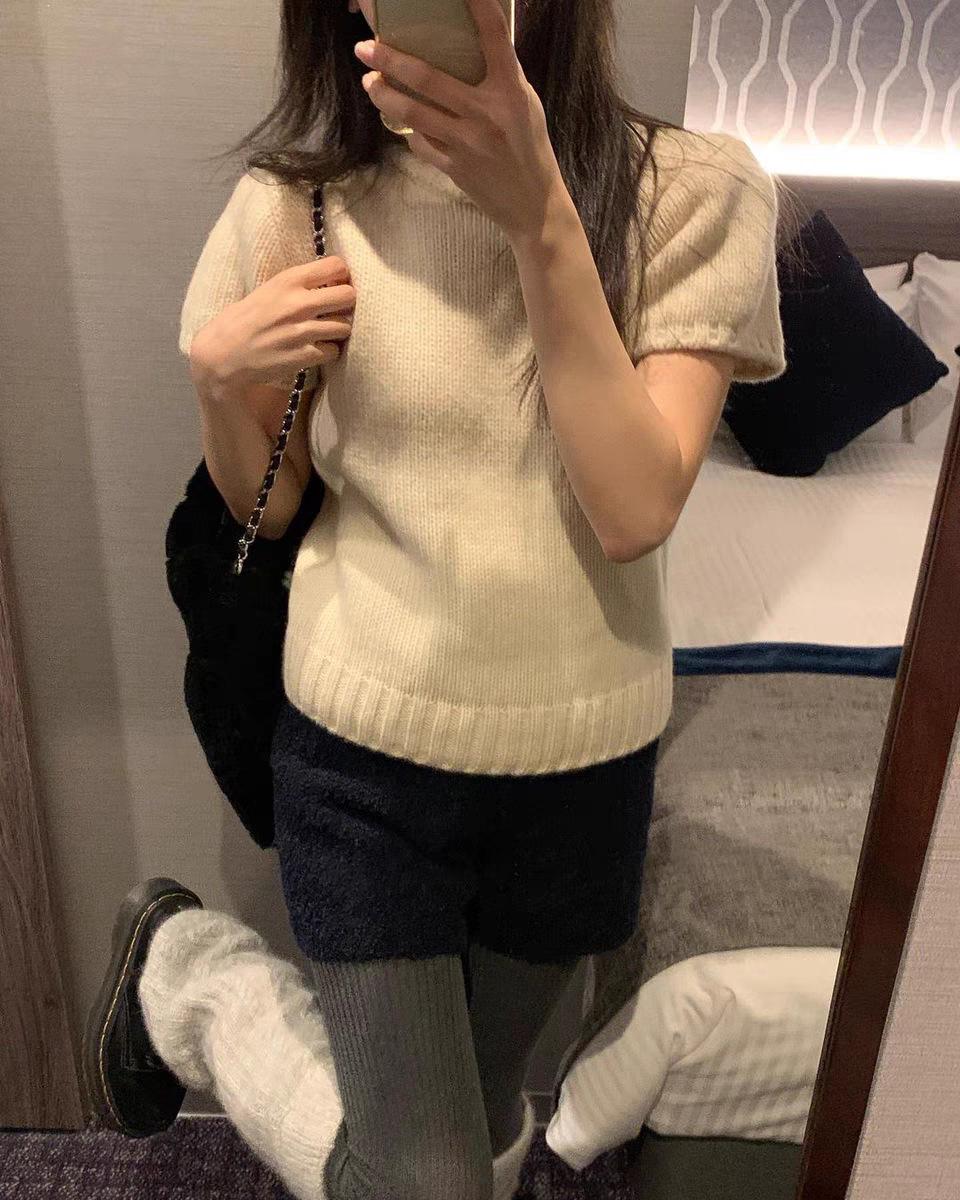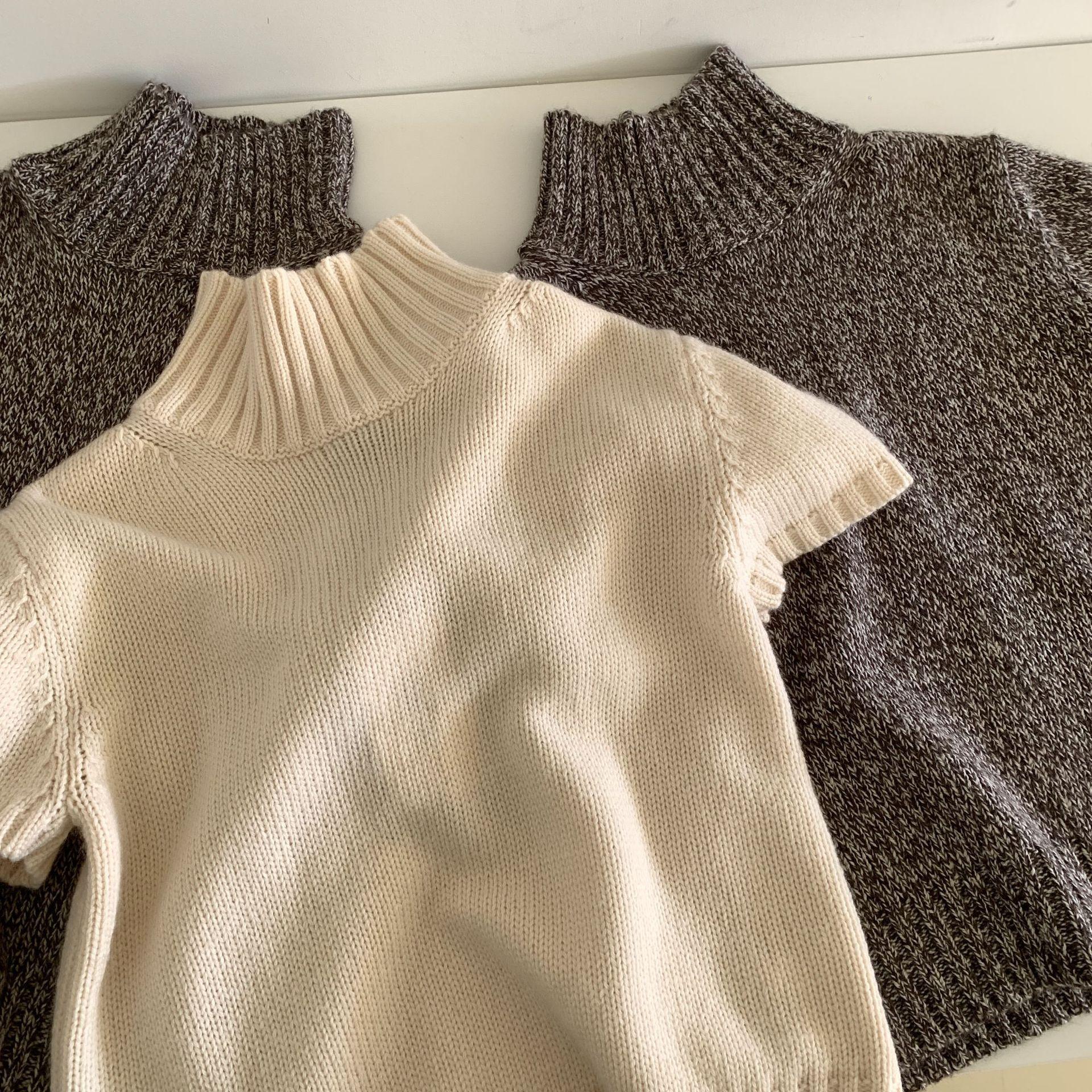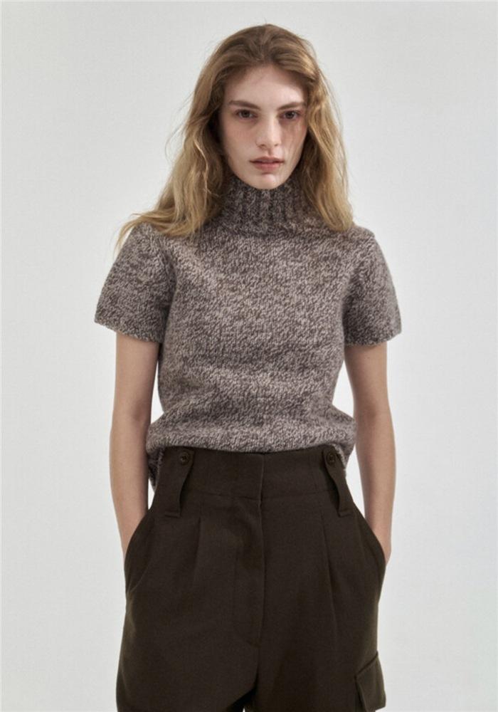 En stock Otoño 2025 Nuevo Coreano Dongdaemun th*Bar*net Holgado Adelgazante Cuello Semialto Manga Corta Top de Punto