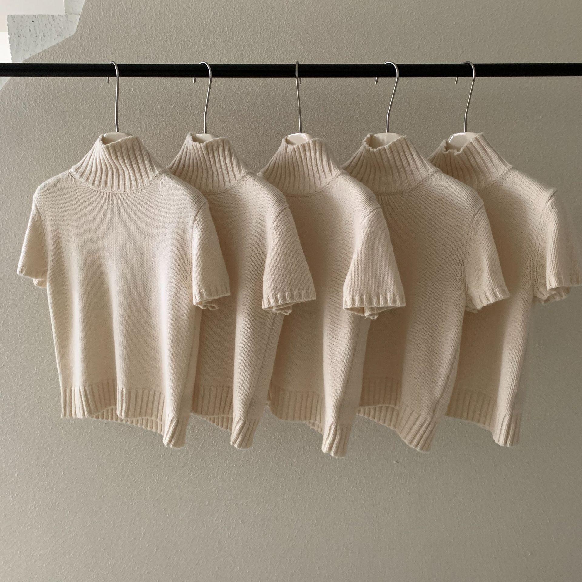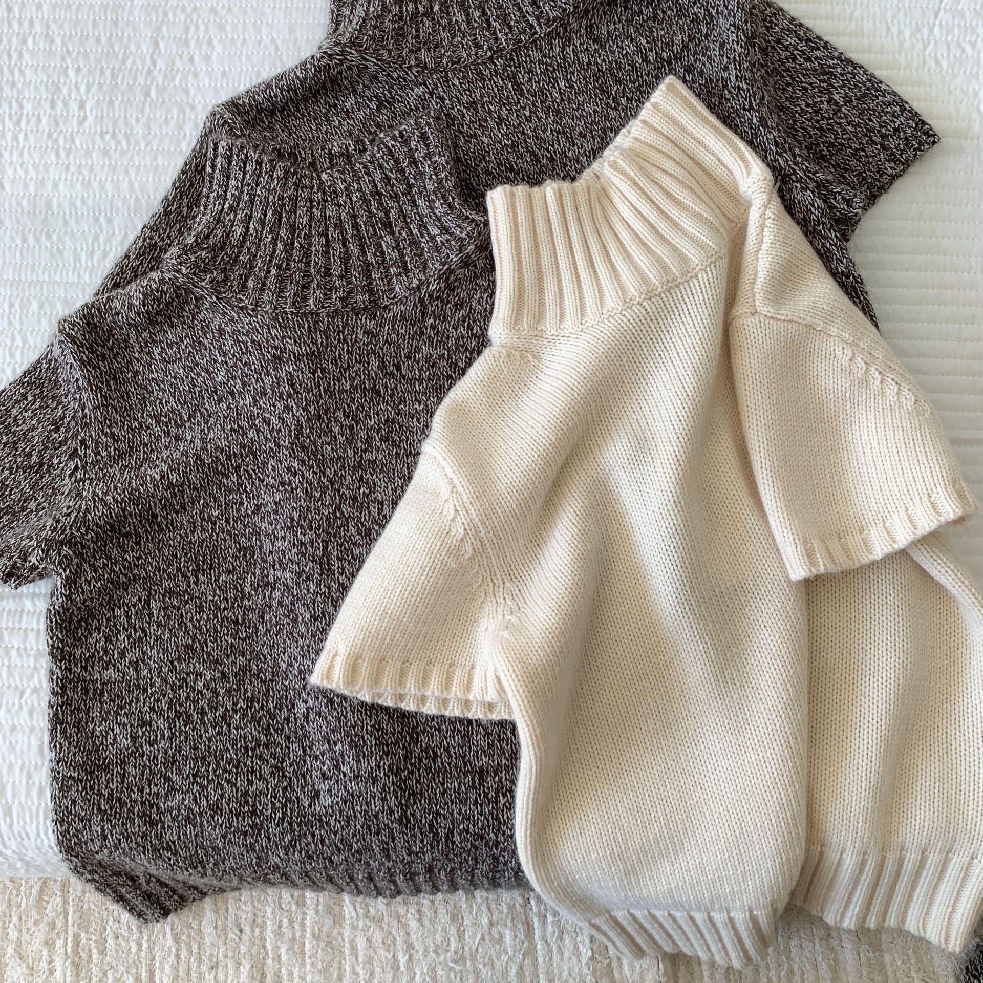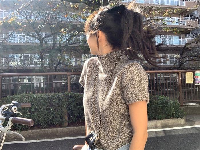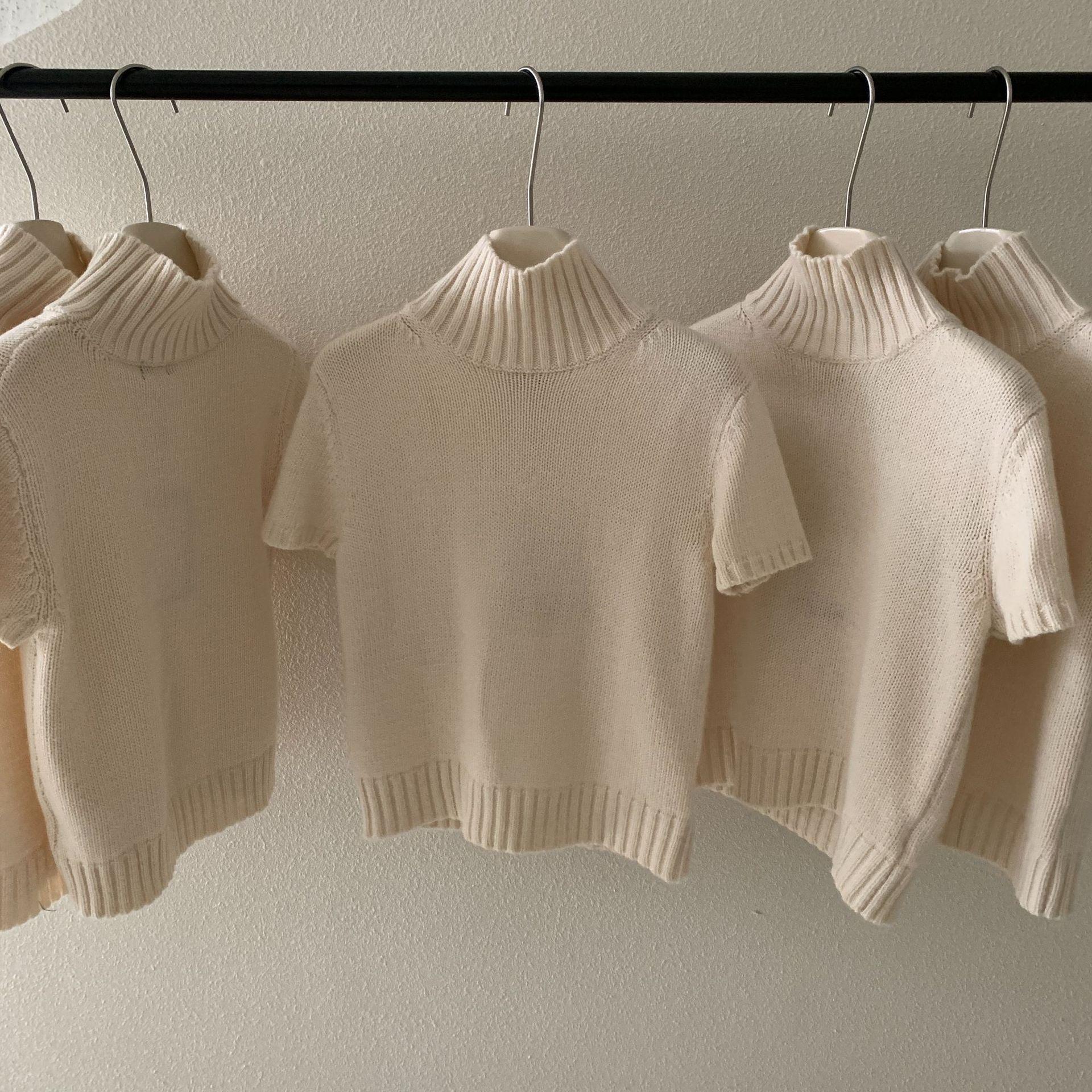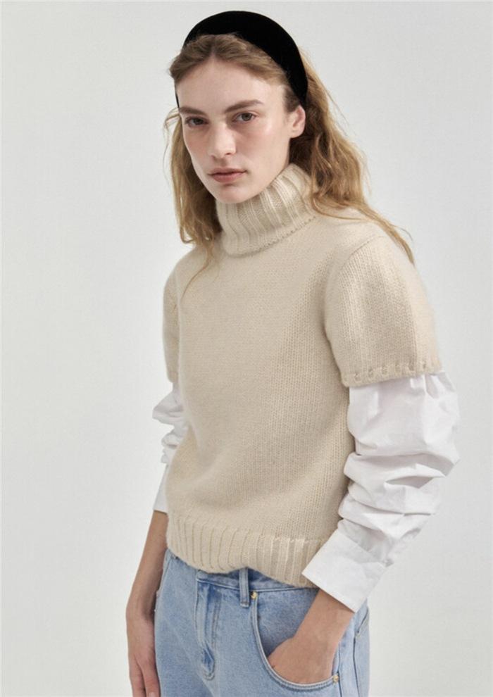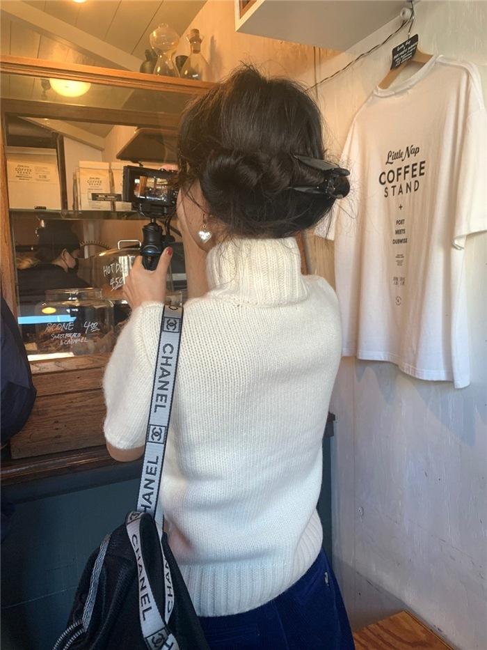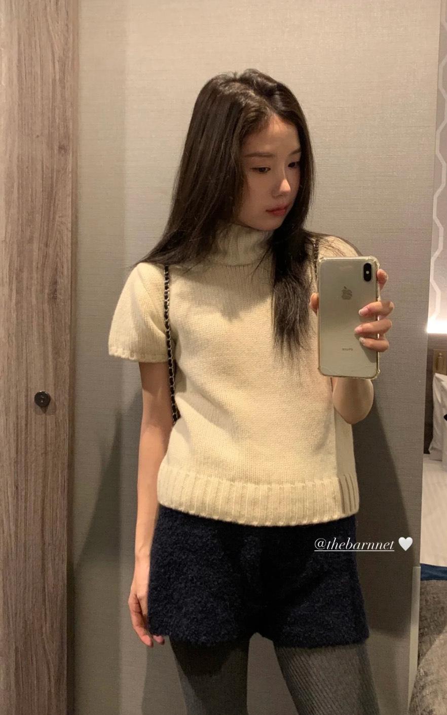 En stock Otoño 2025 Nuevo Coreano Dongdaemun th*Bar*net Holgado Adelgazante Cuello Semialto Manga Corta Top de Punto