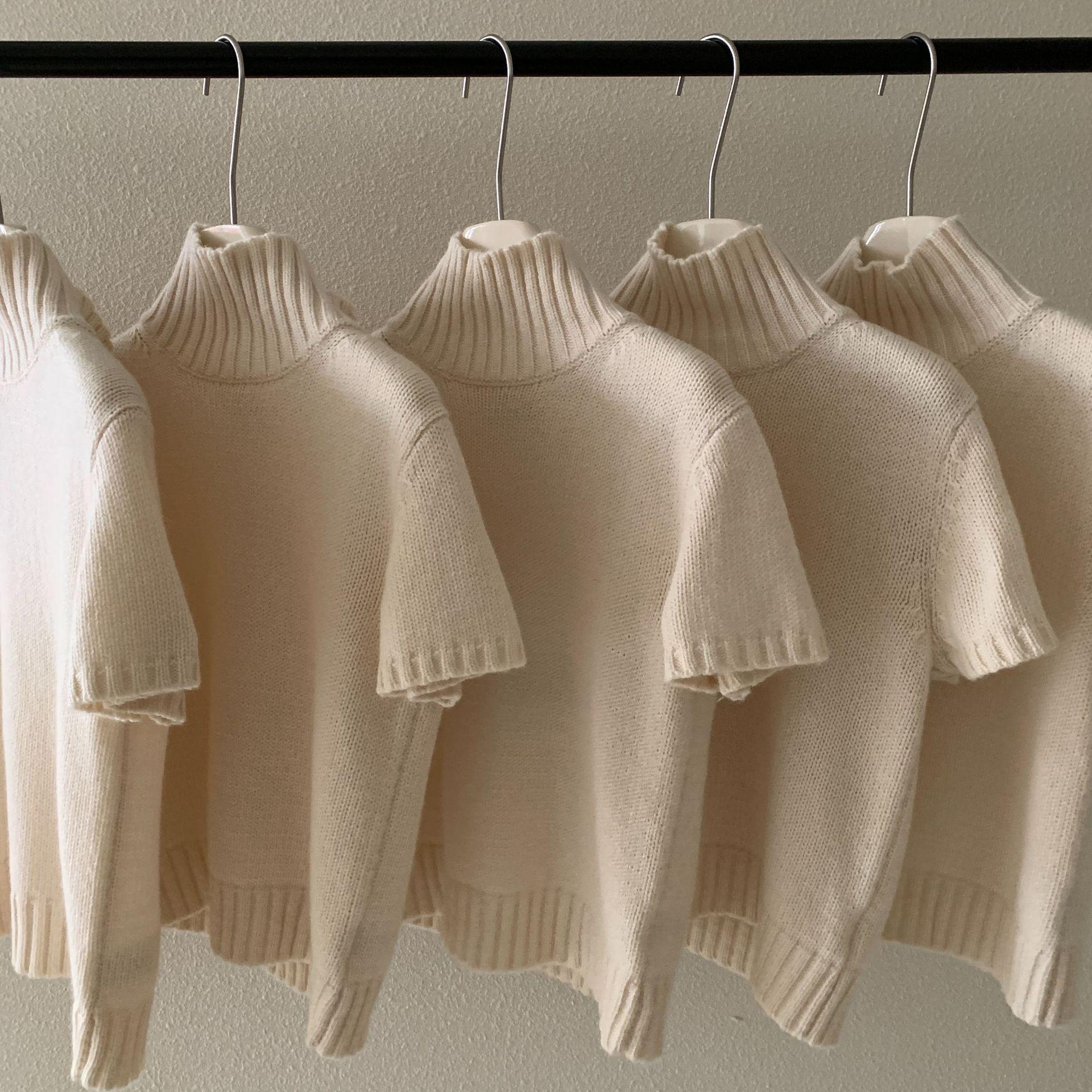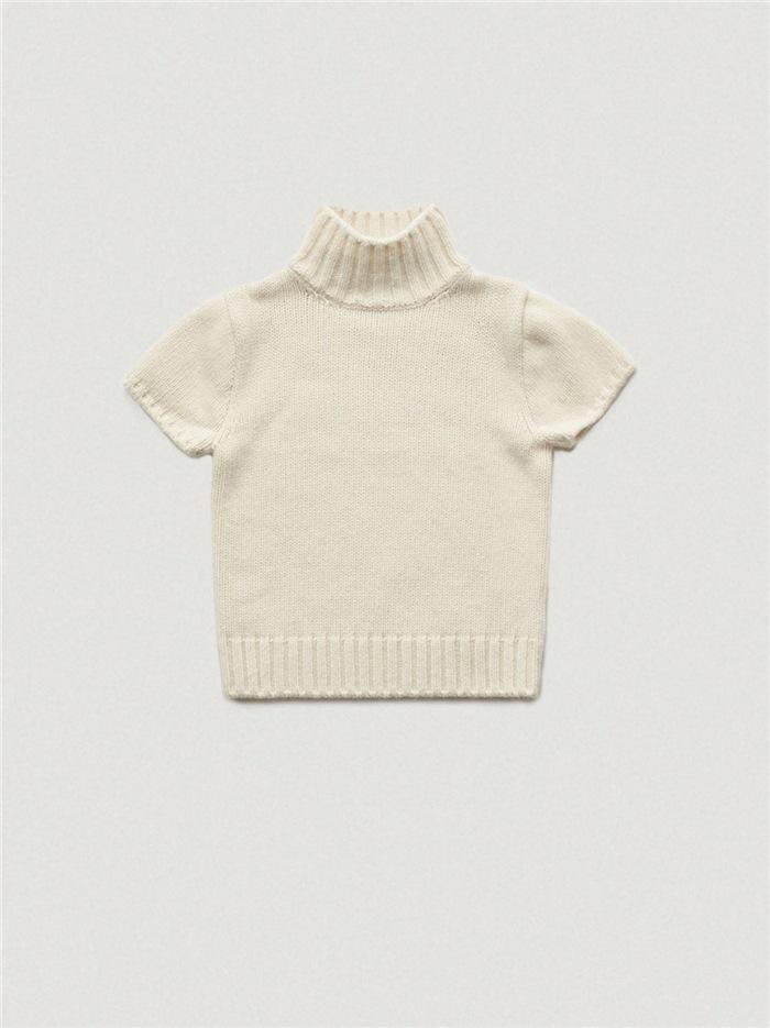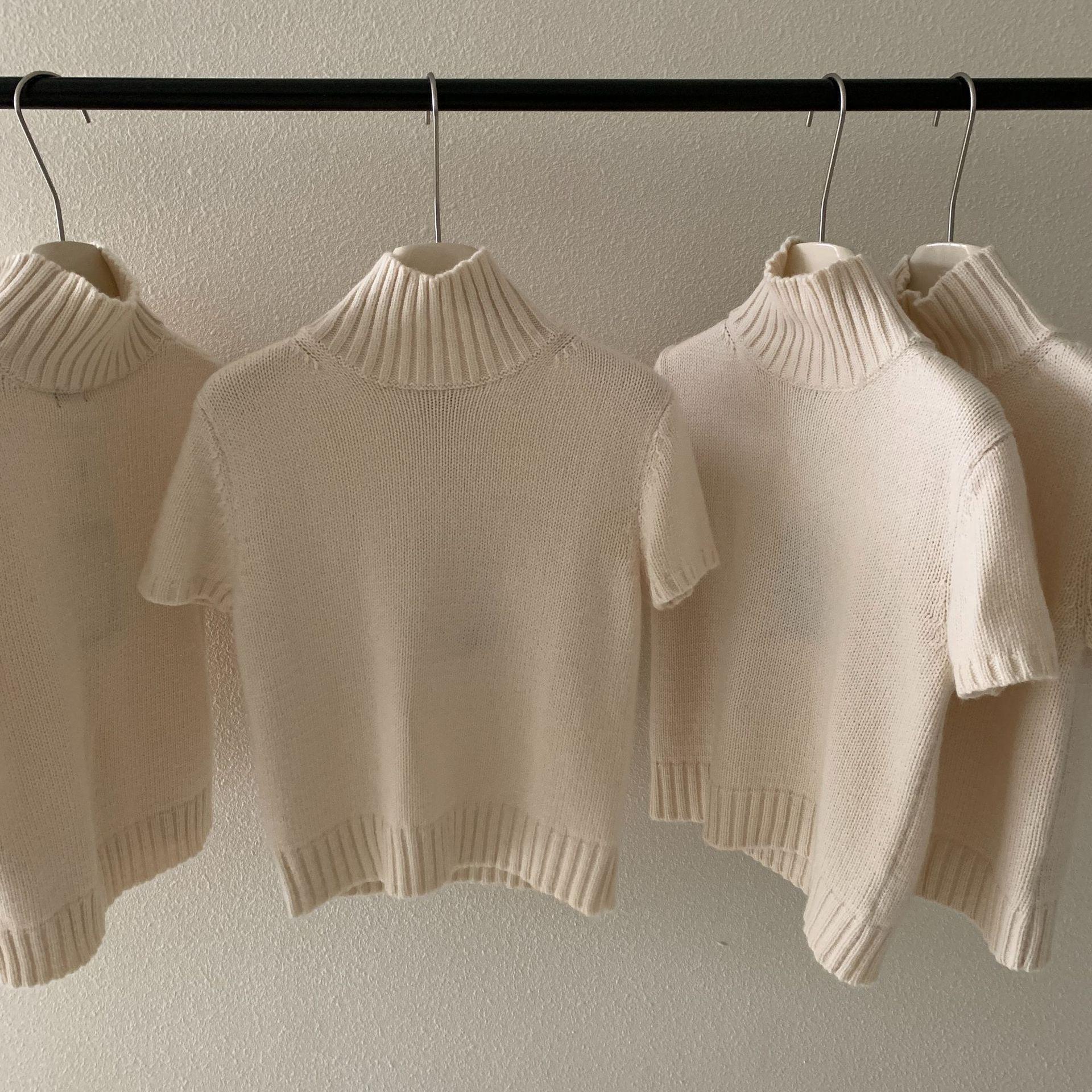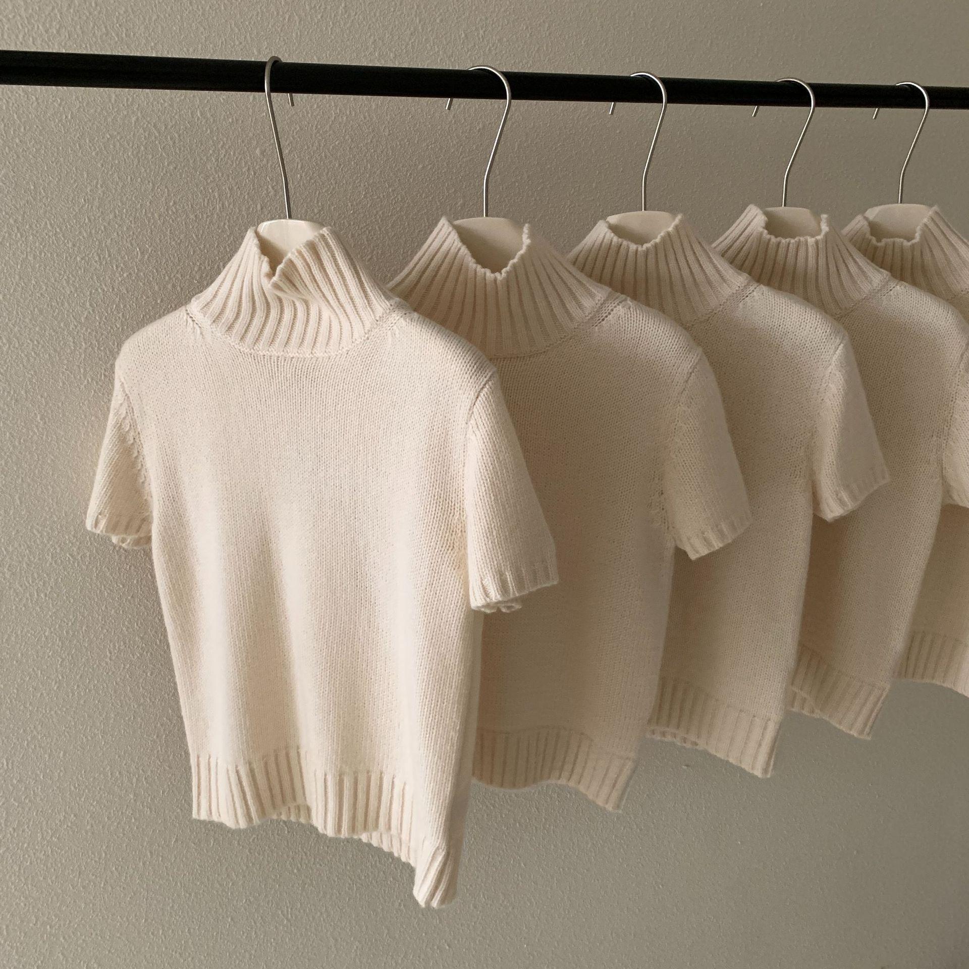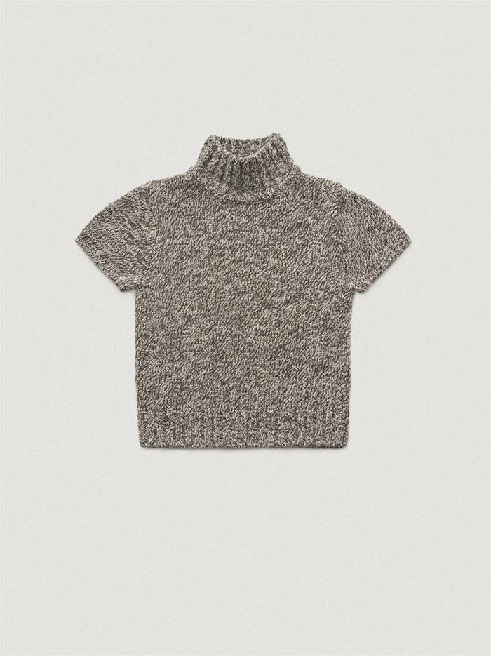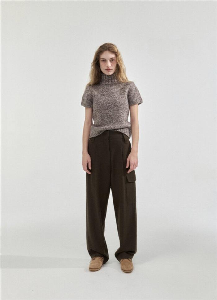 En stock Otoño 2025 Nuevo Coreano Dongdaemun th*Bar*net Holgado Adelgazante Cuello Semialto Manga Corta Top de Punto