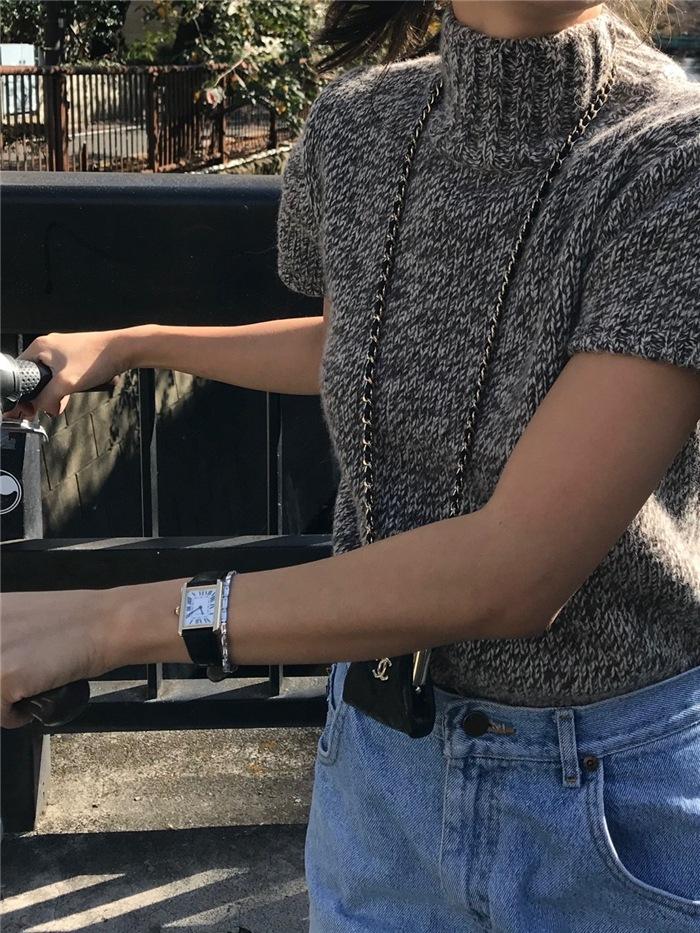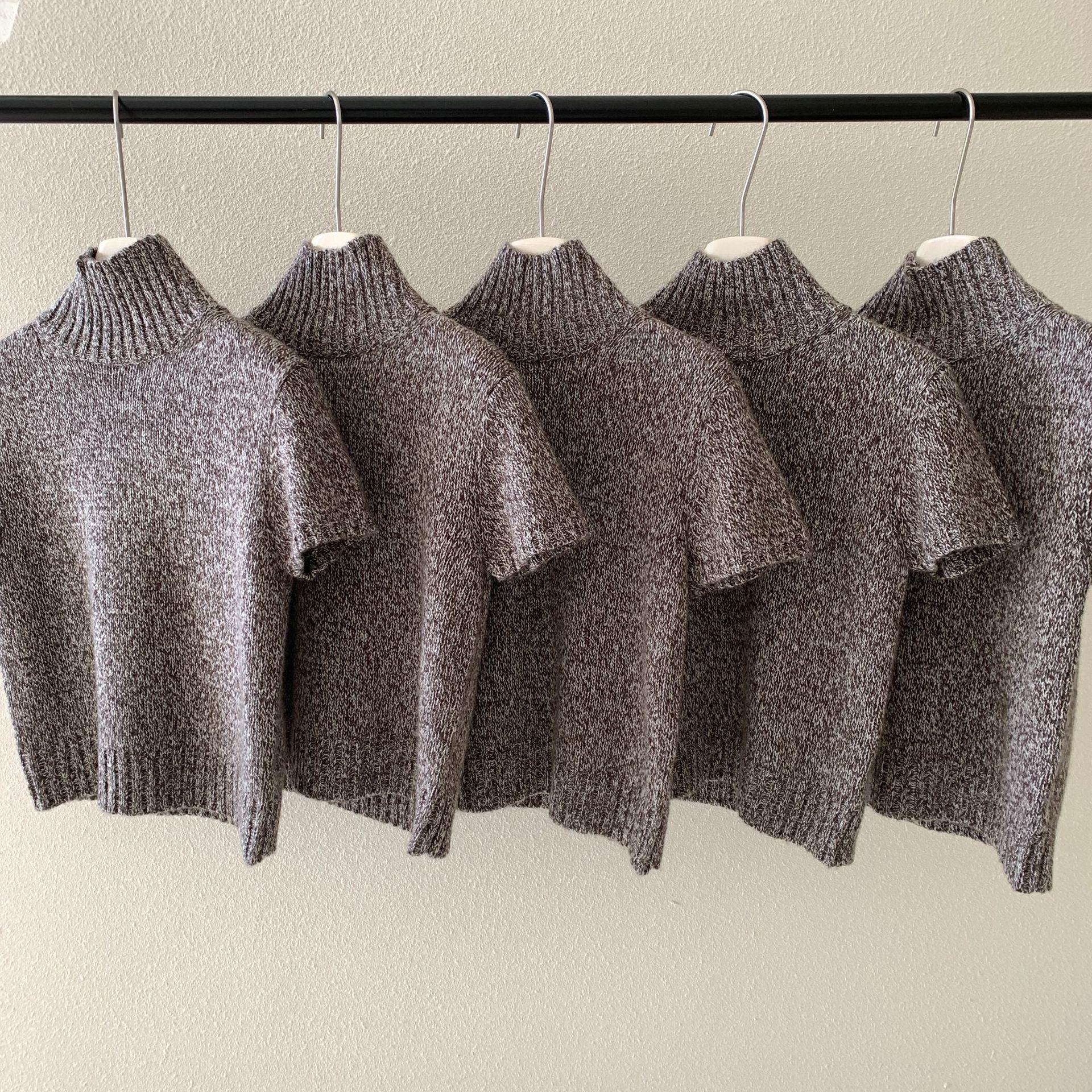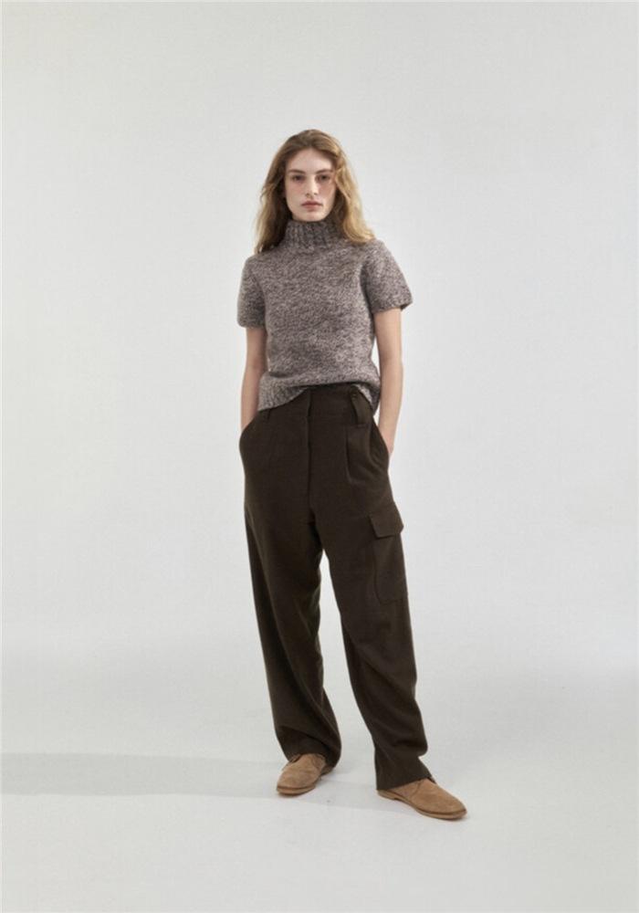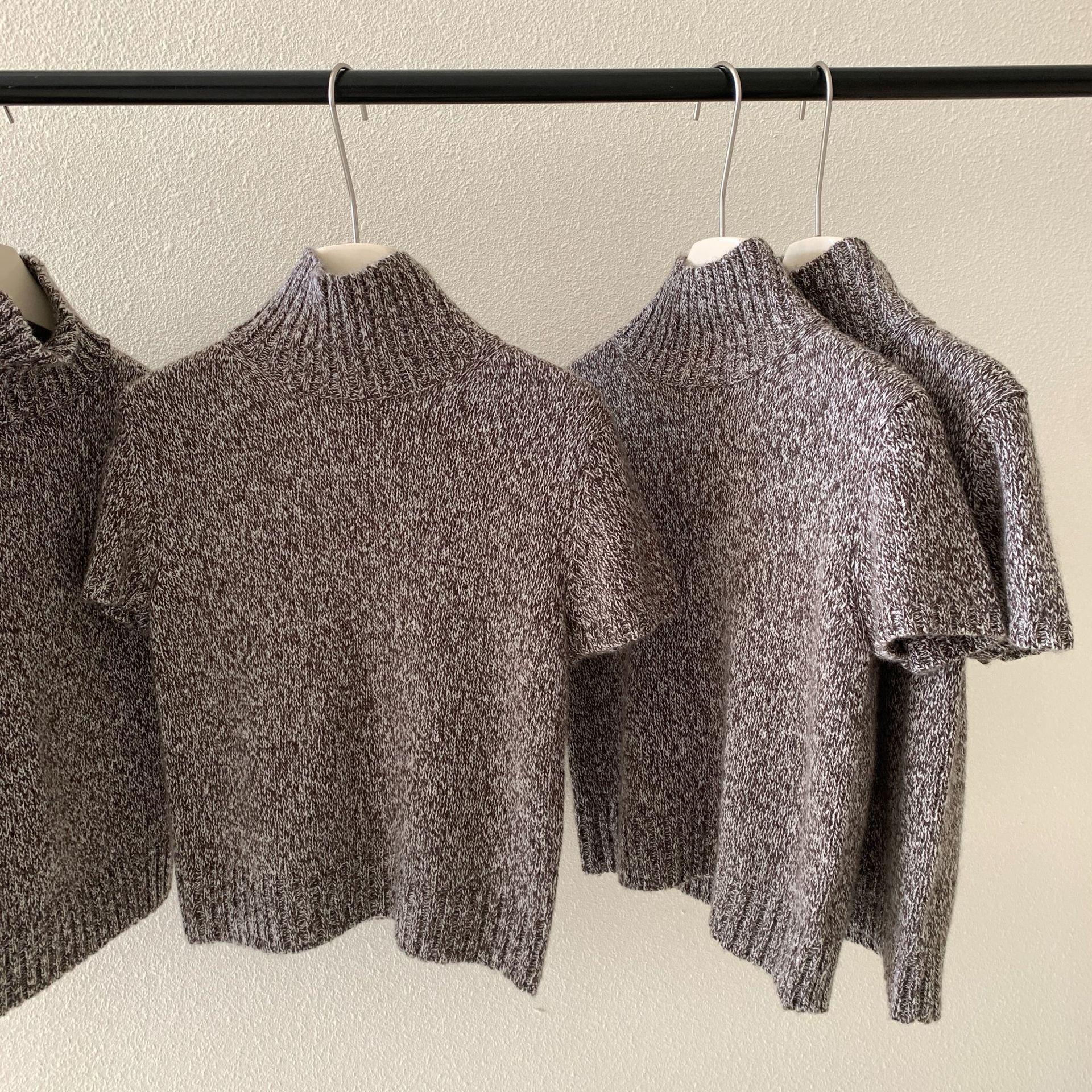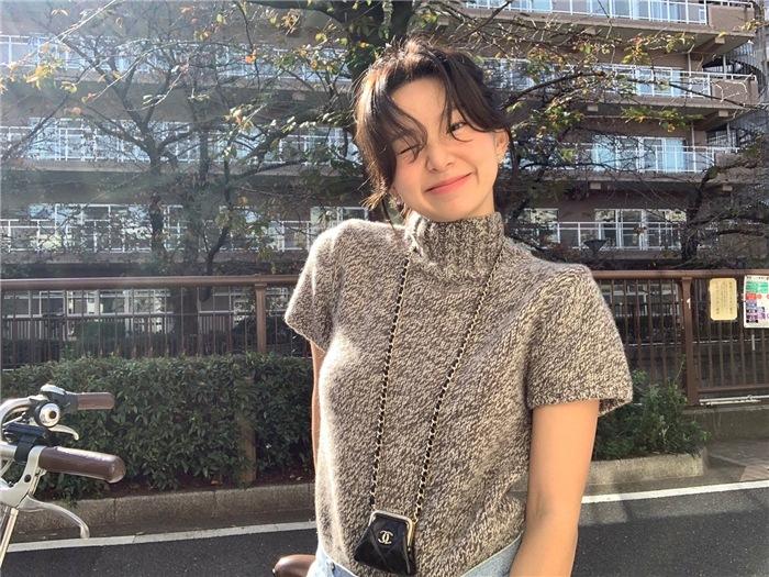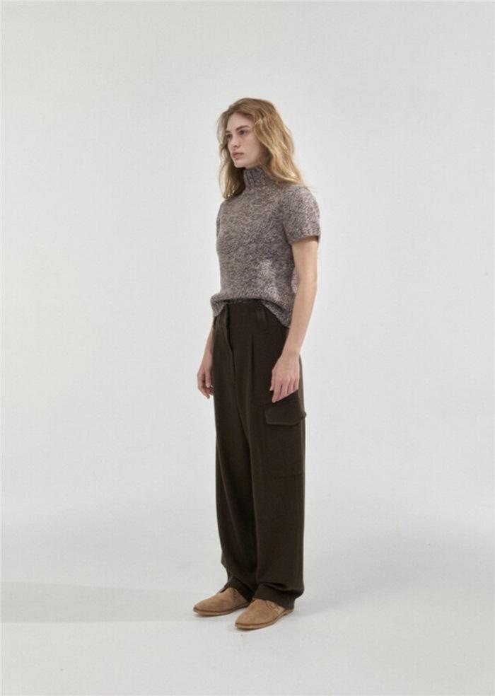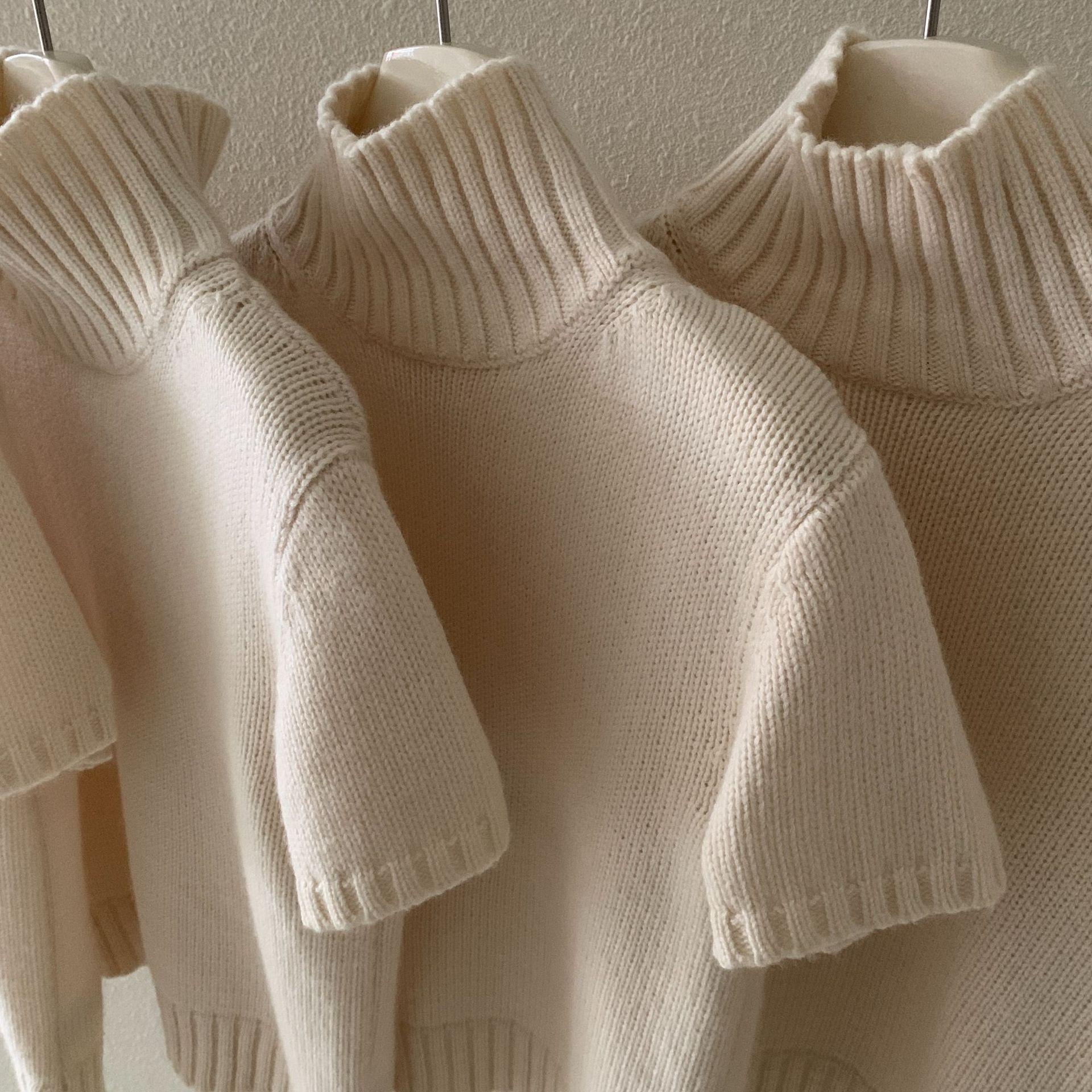 En stock Otoño 2025 Nuevo Coreano Dongdaemun th*Bar*net Holgado Adelgazante Cuello Semialto Manga Corta Top de Punto