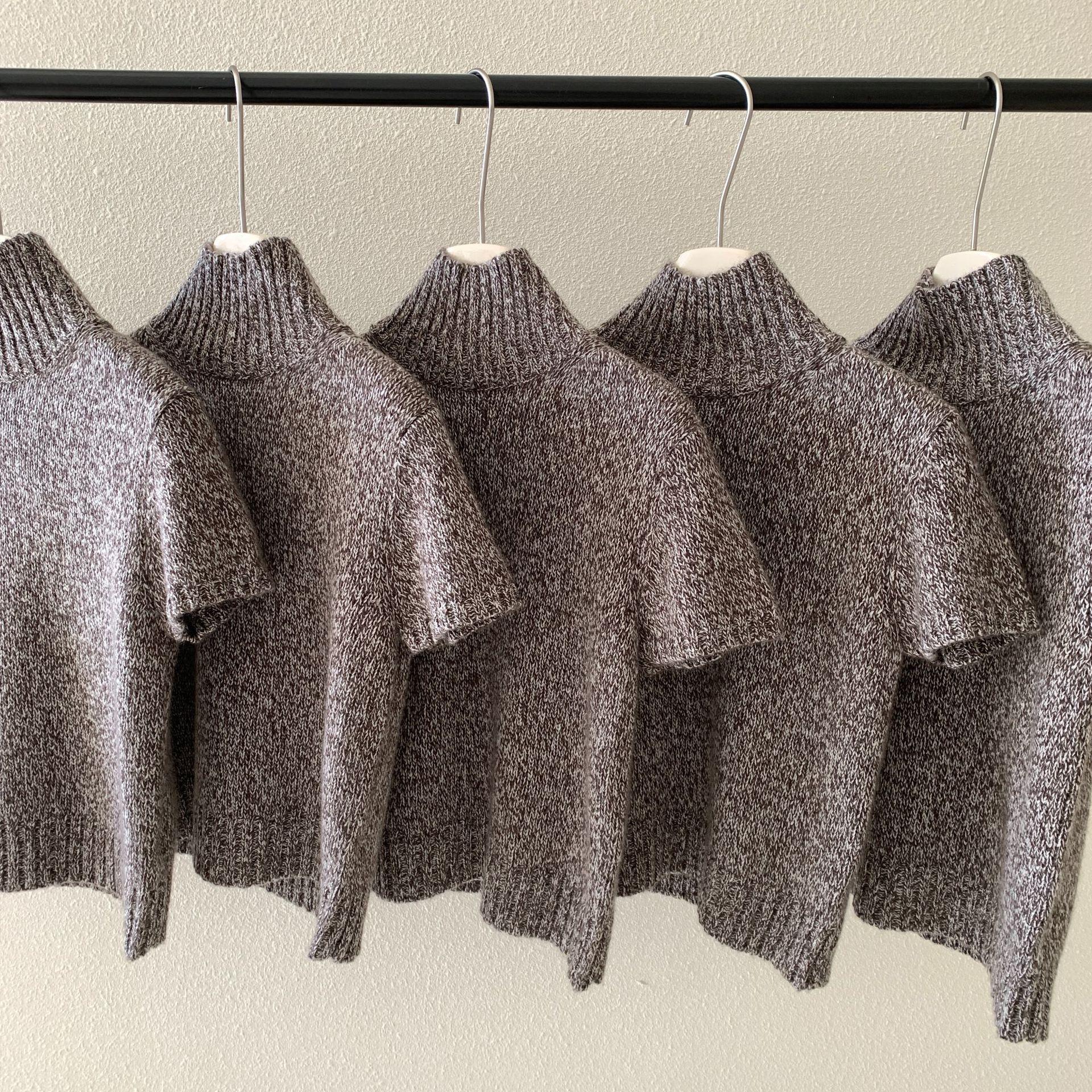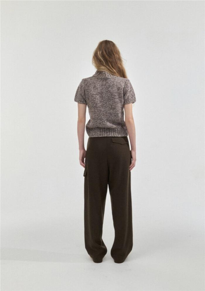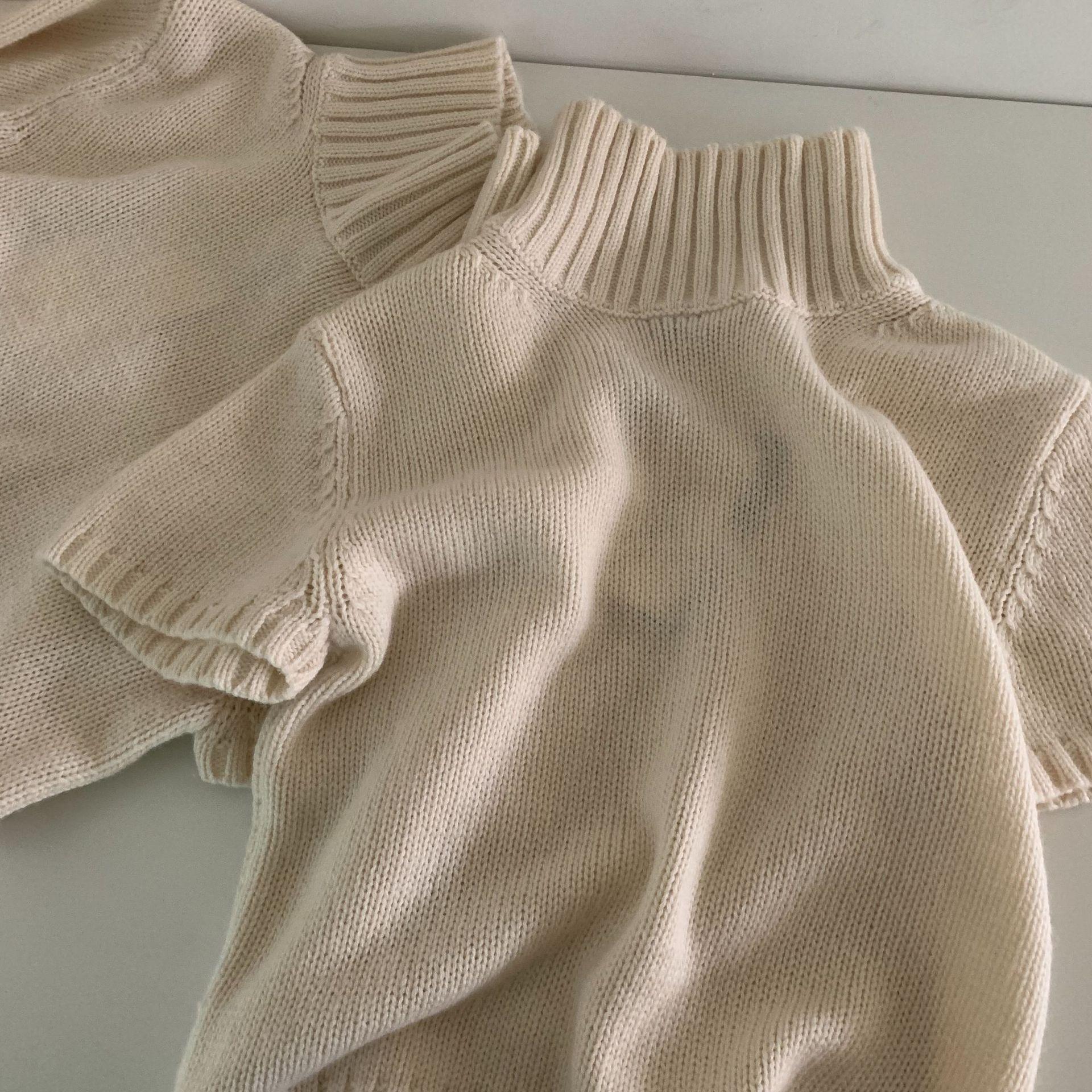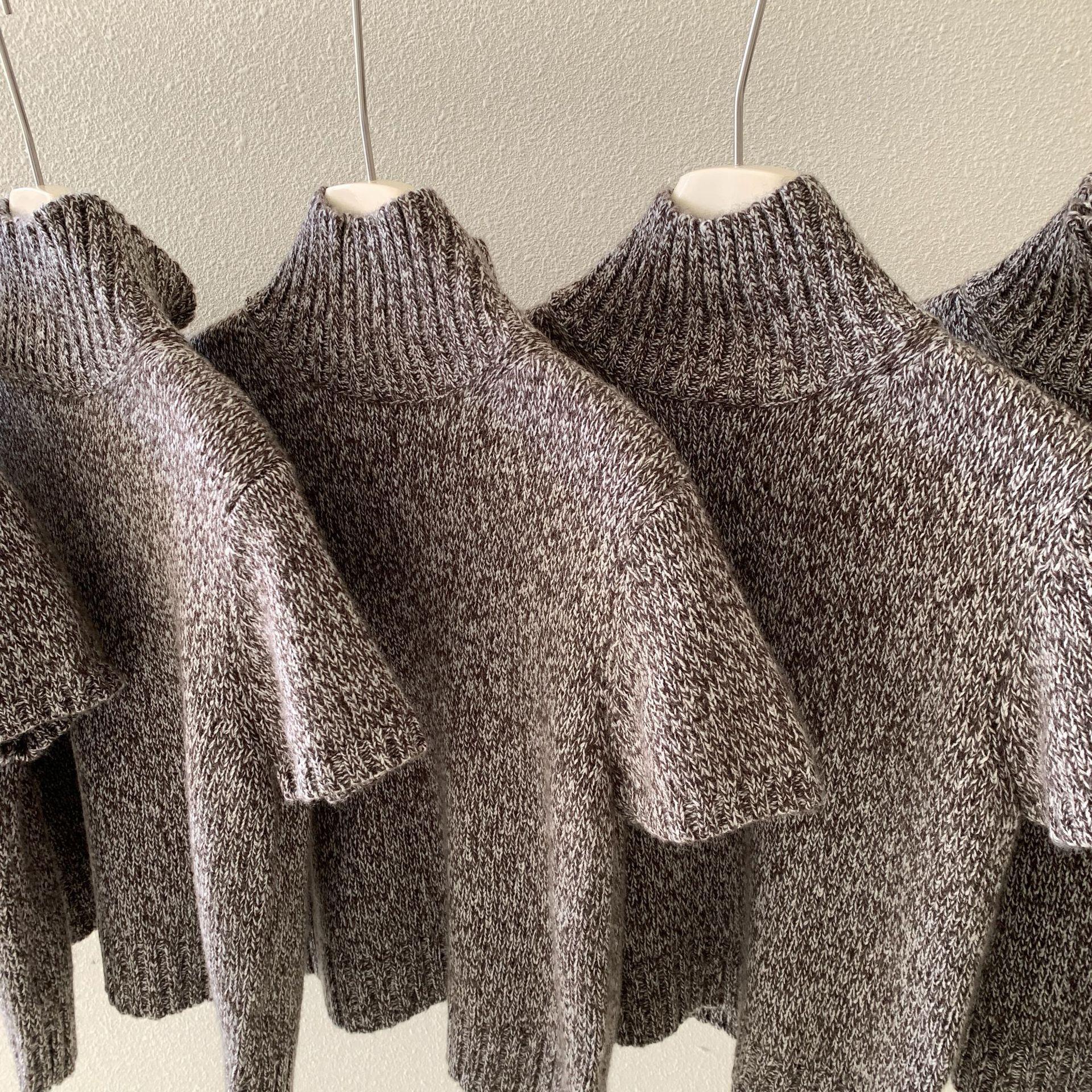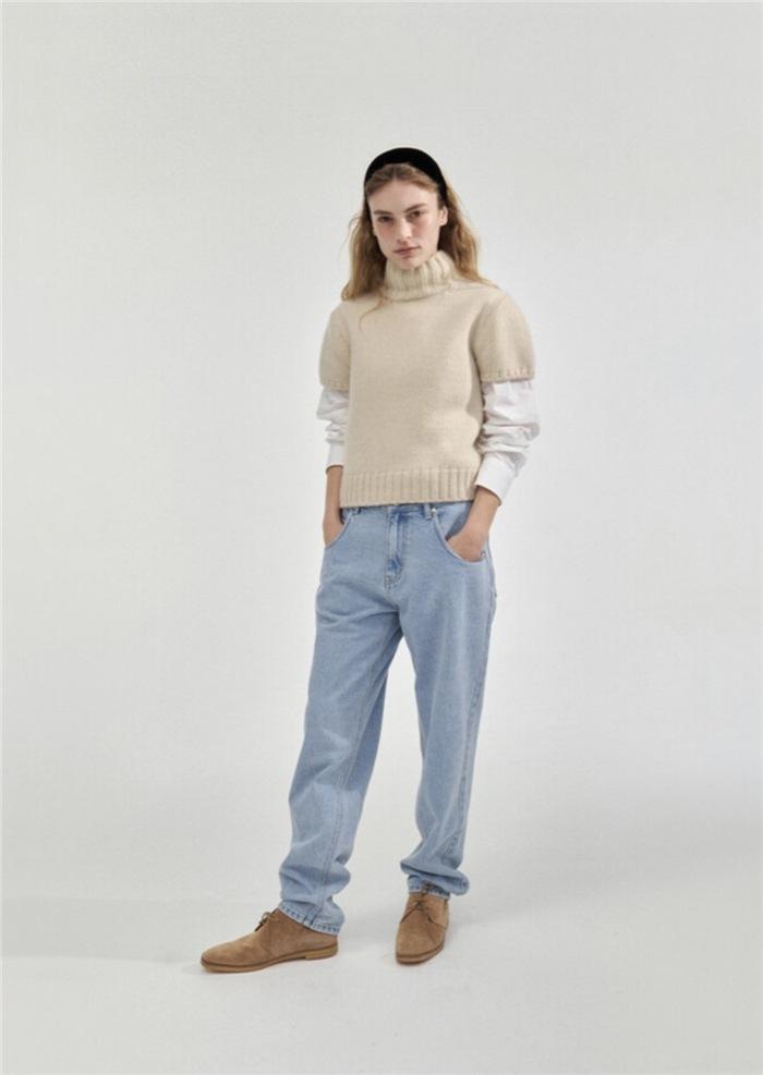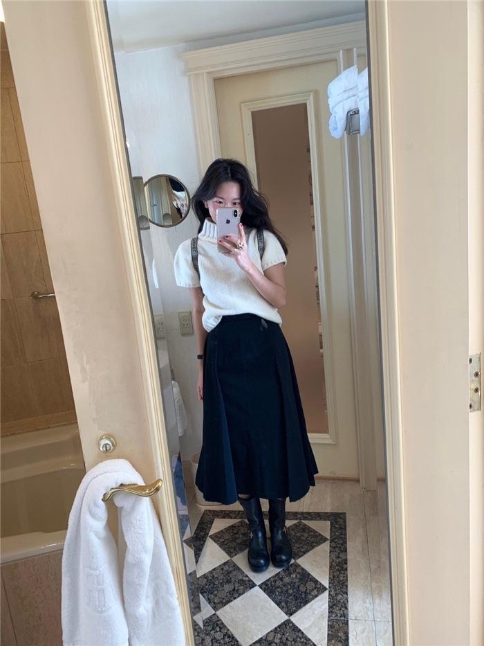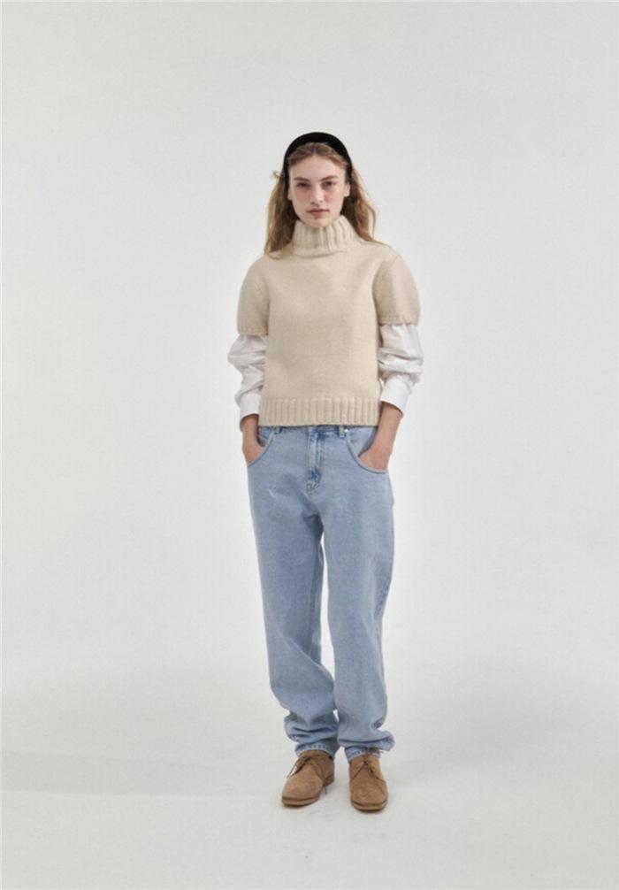 En stock Otoño 2025 Nuevo Coreano Dongdaemun th*Bar*net Holgado Adelgazante Cuello Semialto Manga Corta Top de Punto