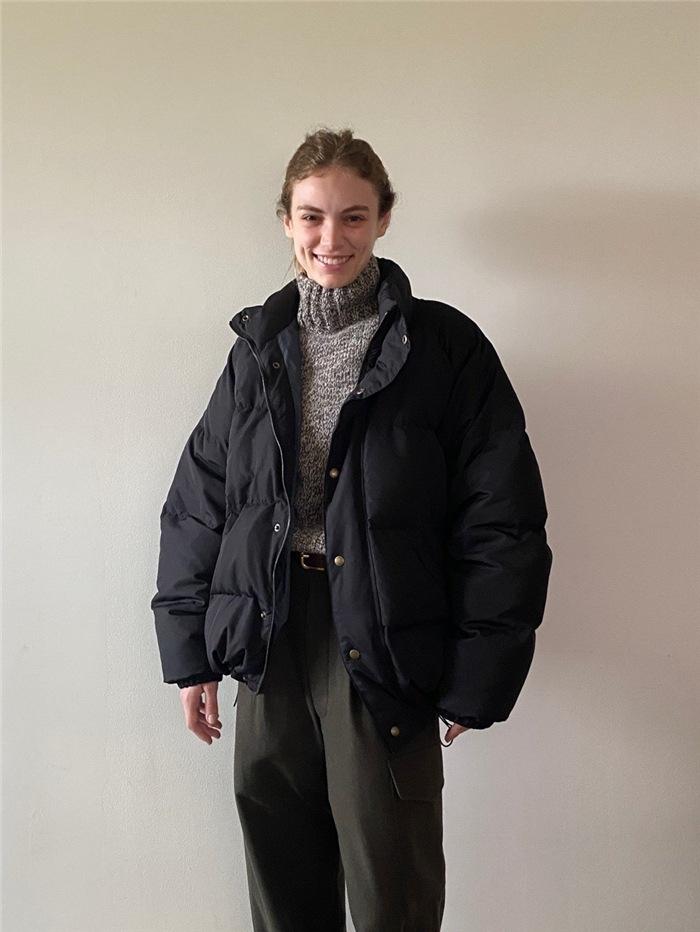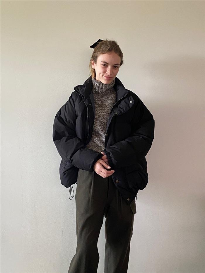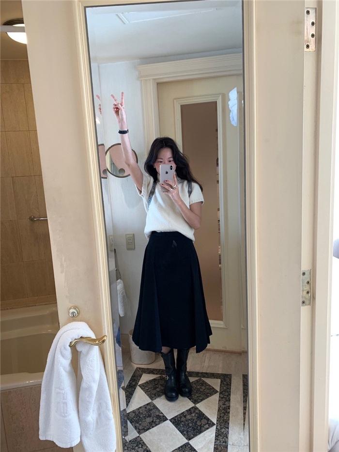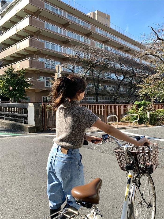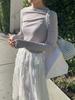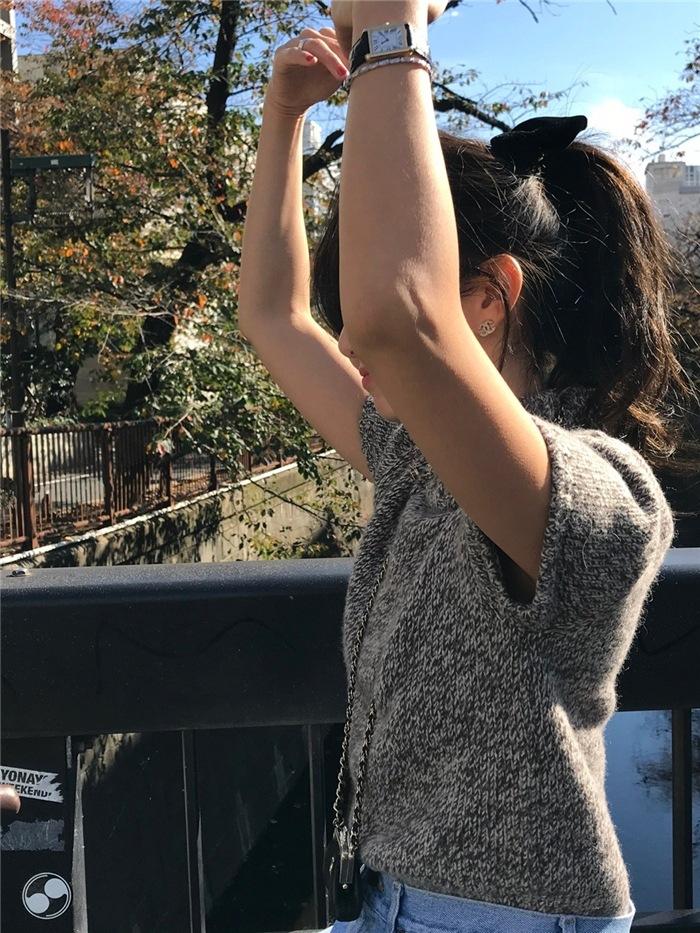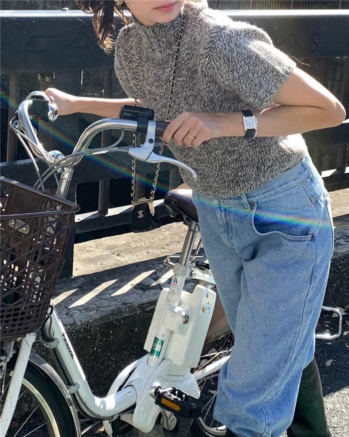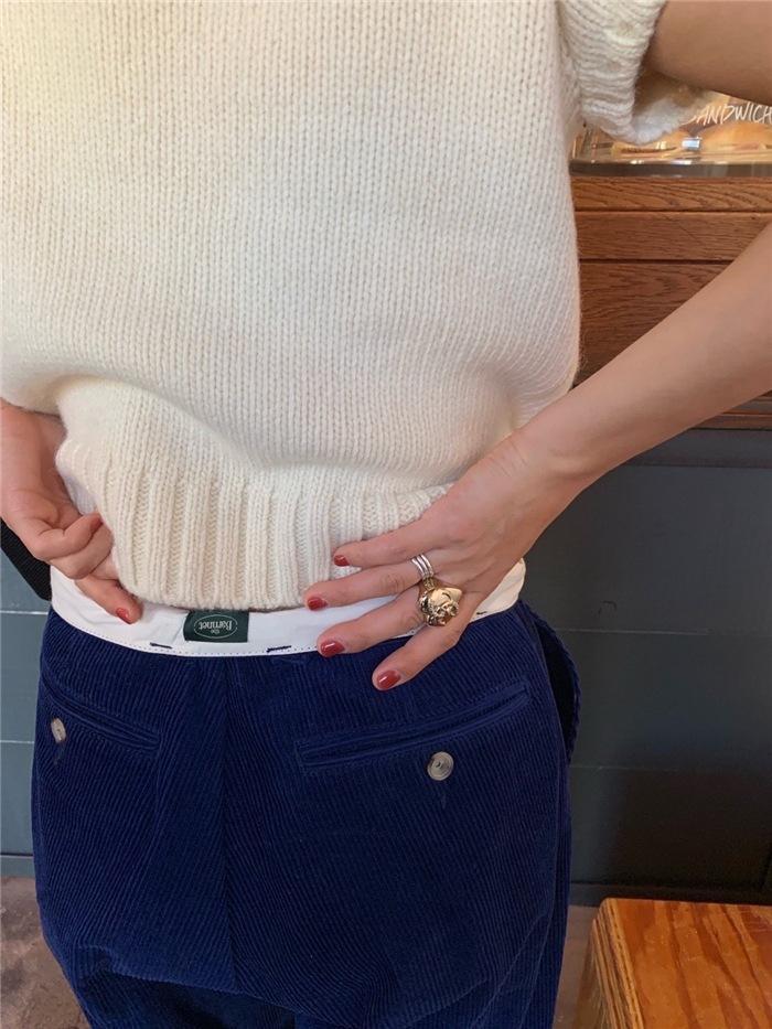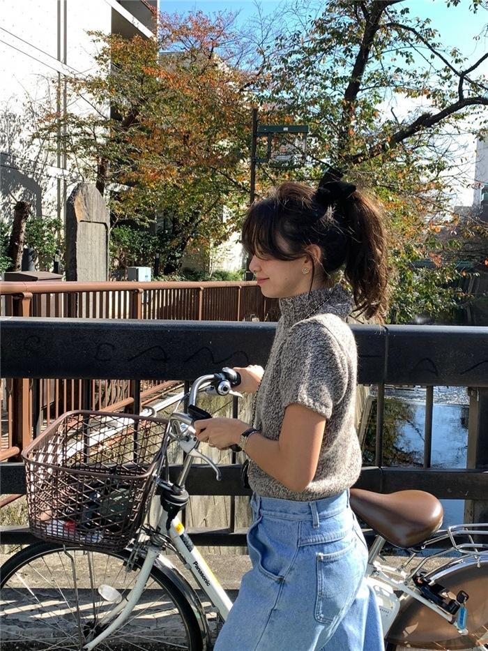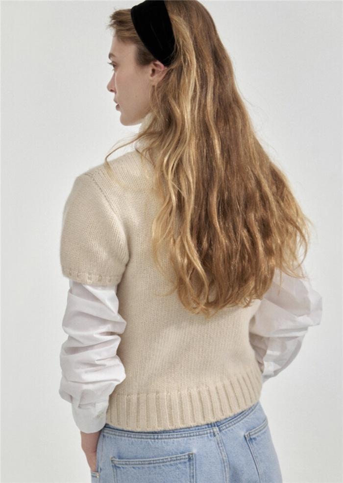 En stock Otoño 2025 Nuevo Coreano Dongdaemun th*Bar*net Holgado Adelgazante Cuello Semialto Manga Corta Top de Punto