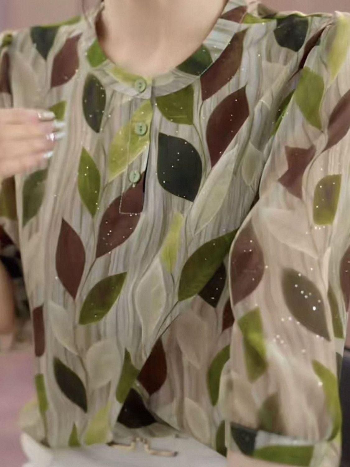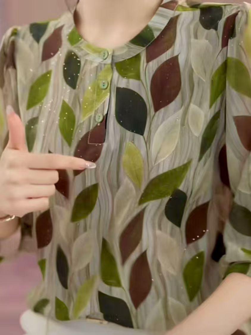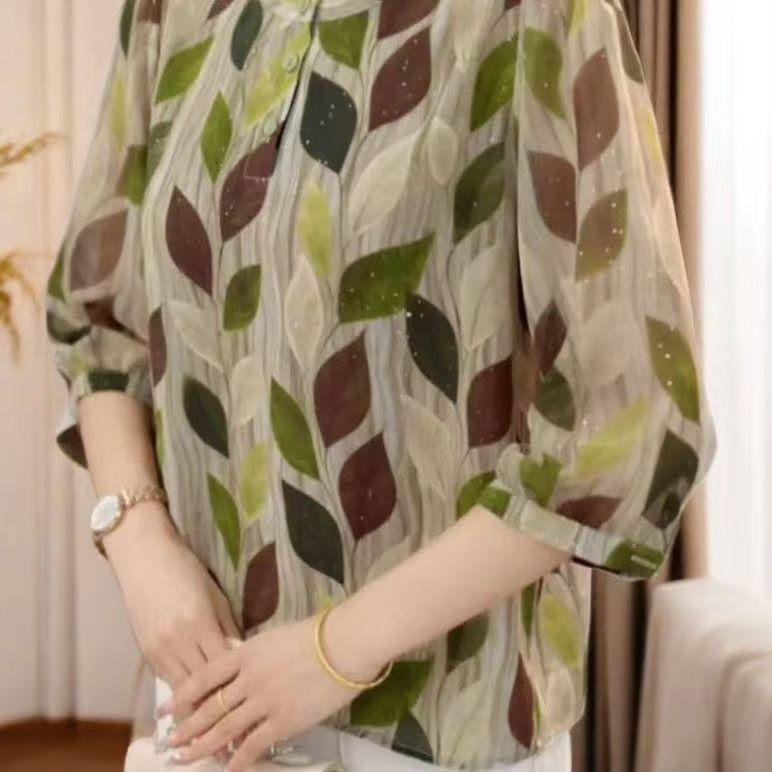 2025 Nuevo Estilo de Verano Moda Temperamento Camisa Delgada Casual Mediana Edad y Mujeres Mayores Floral Reductor de Edad D Mamá Suelta