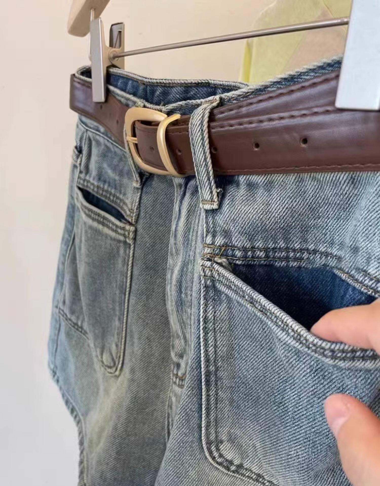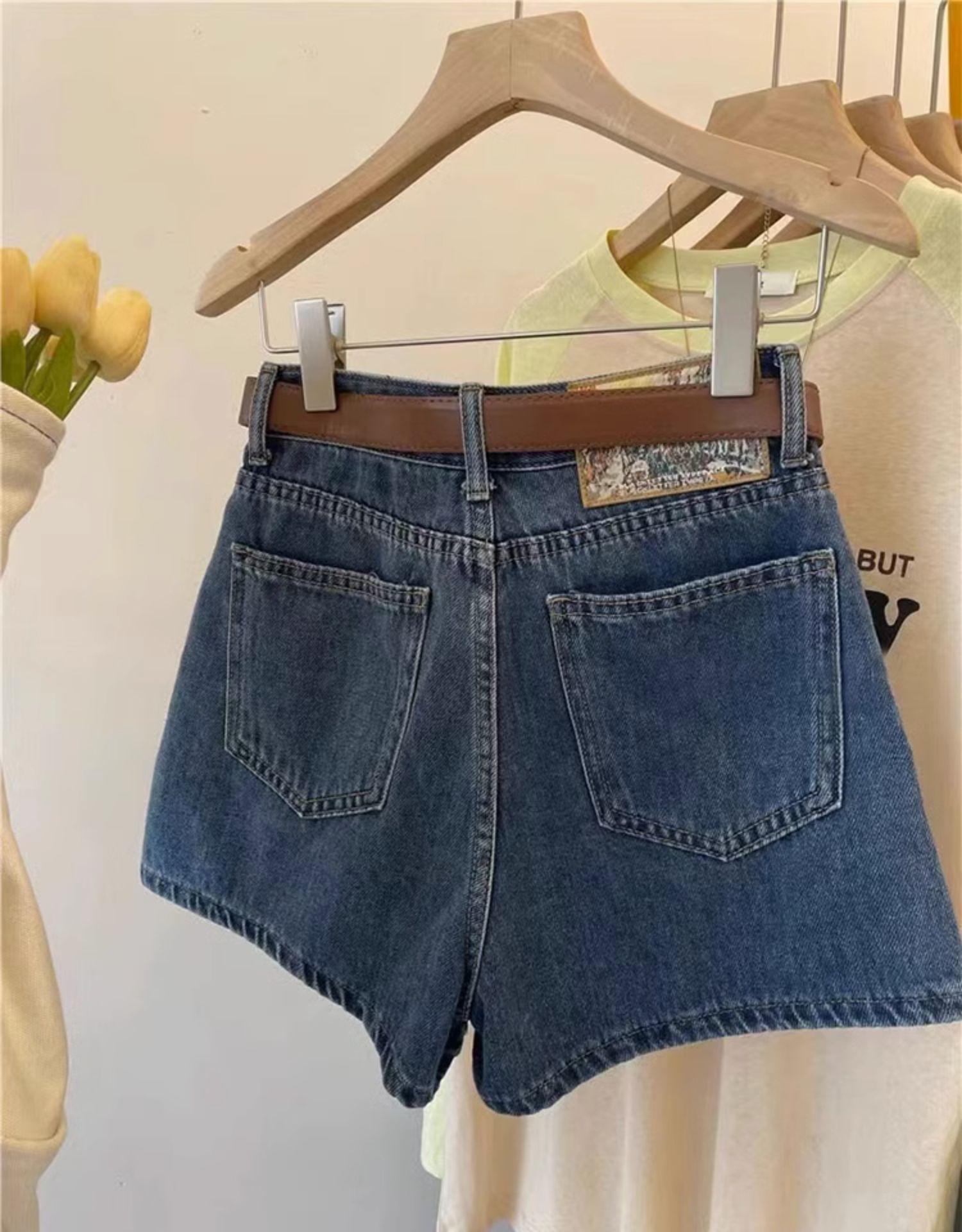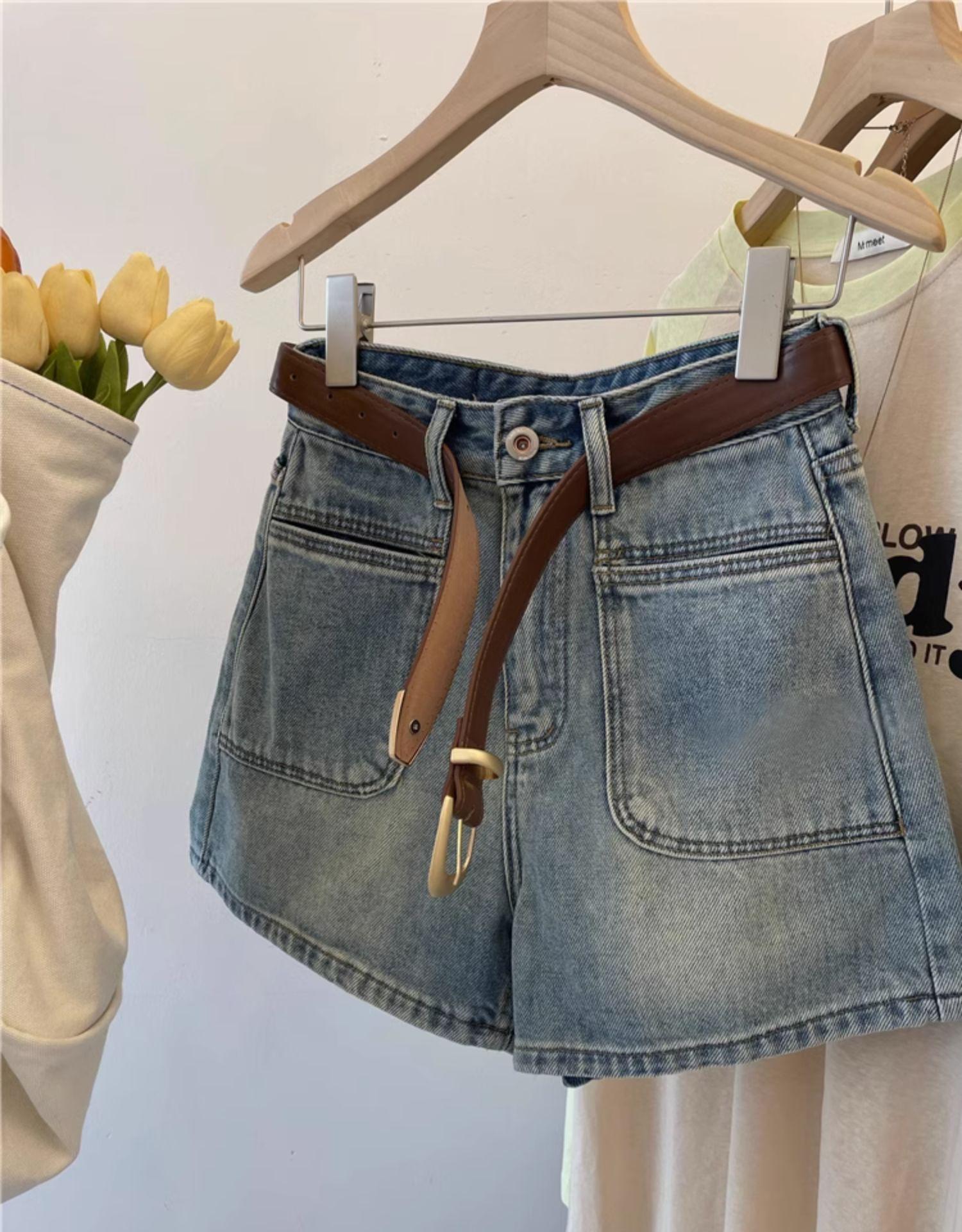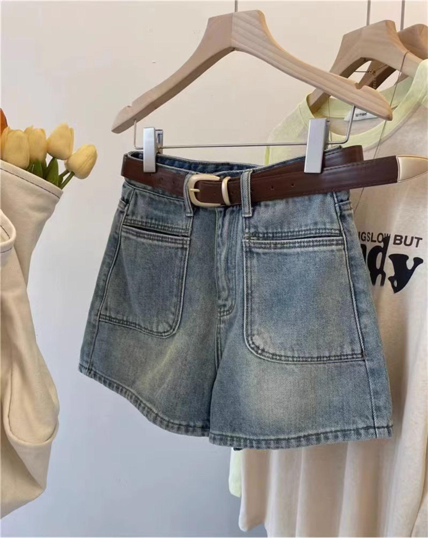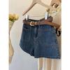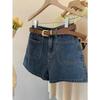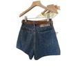 Shorts de mezclilla retro de talla grande para mujer Verano Delgados mm Gorditos Cintura alta Aspecto adelgazante Sueltos Línea A Rectos Pierna ancha Pantalones cortos