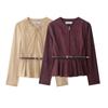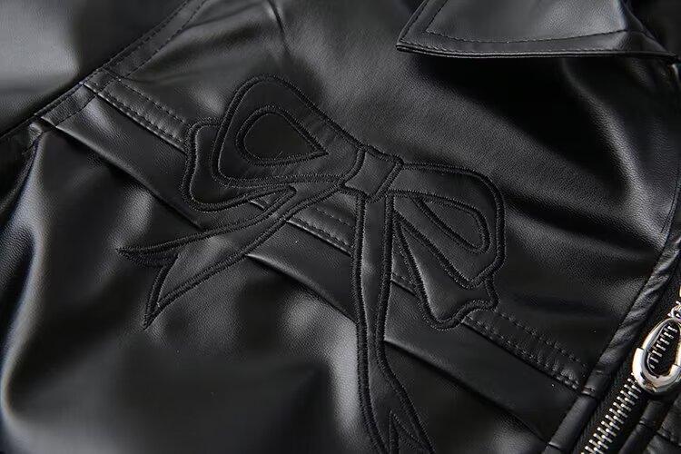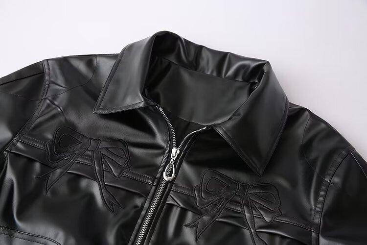 Z Amazon Europeo y Americano Transfronterizo Venta al por Mayor Primavera 2025 Nuevo Chaqueta de Cuero Negra Dulce y Cool con Lazo para Mujer