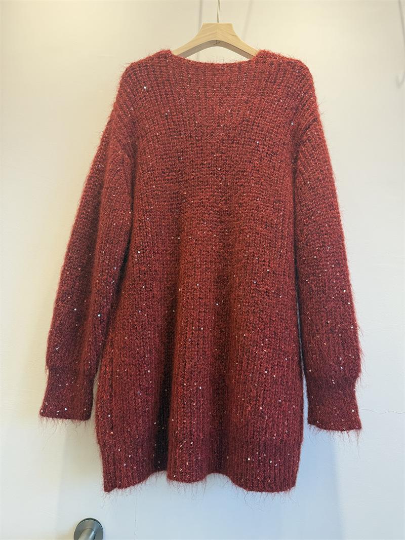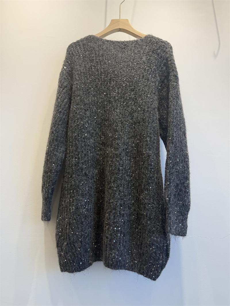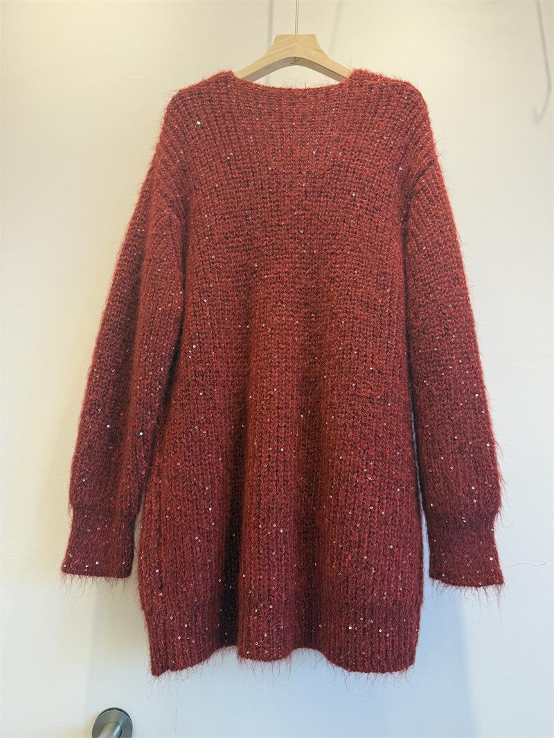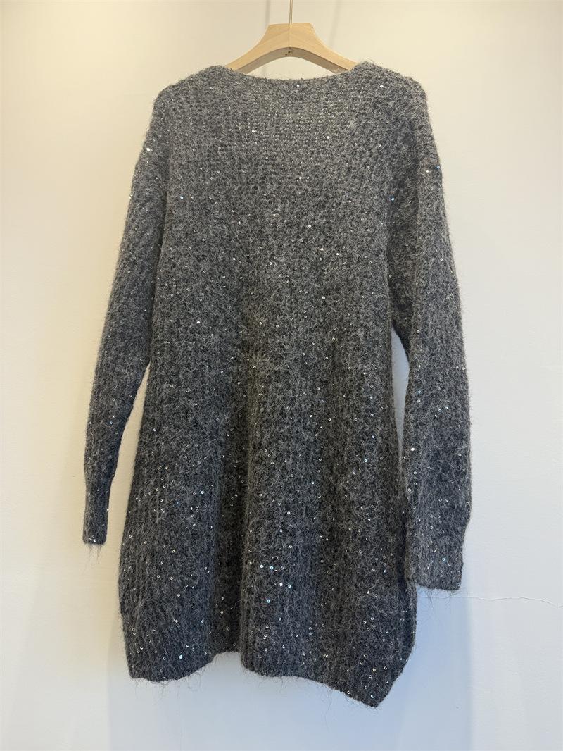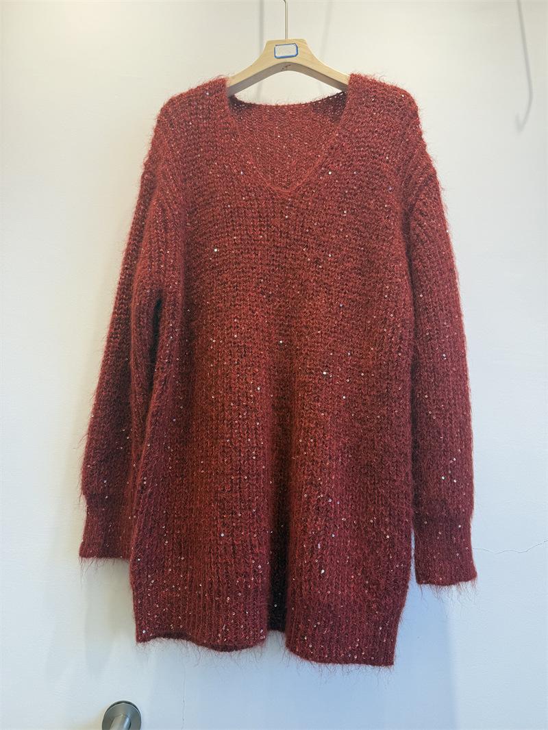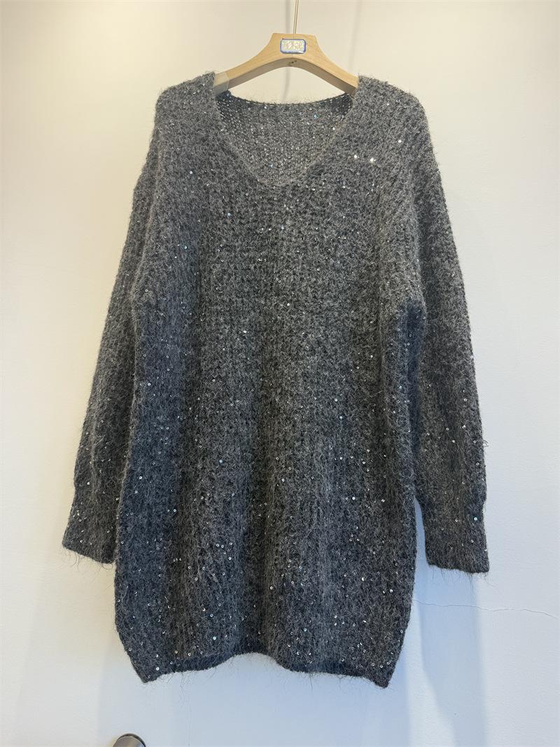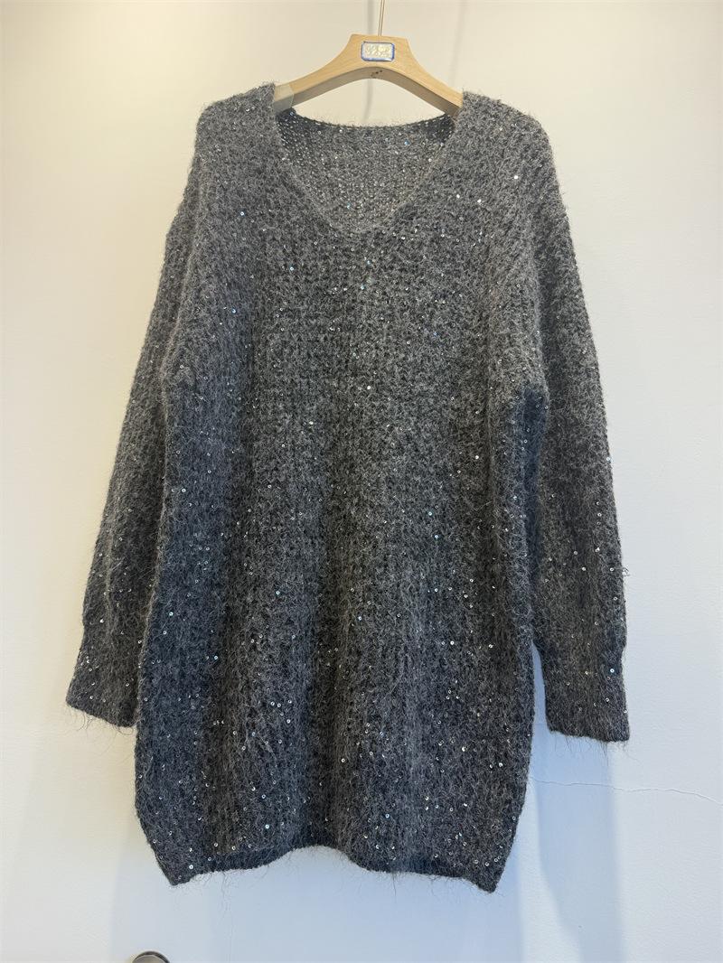 Ropa de mujer transfronteriza superventas 2025 nuevo suéter con lentejuelas para recoger estrellas holgado perezoso de cuello en V jersey de media longitud de manga larga