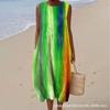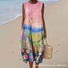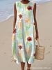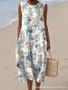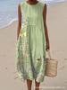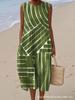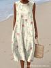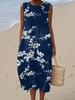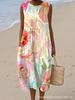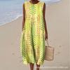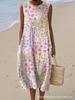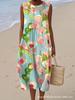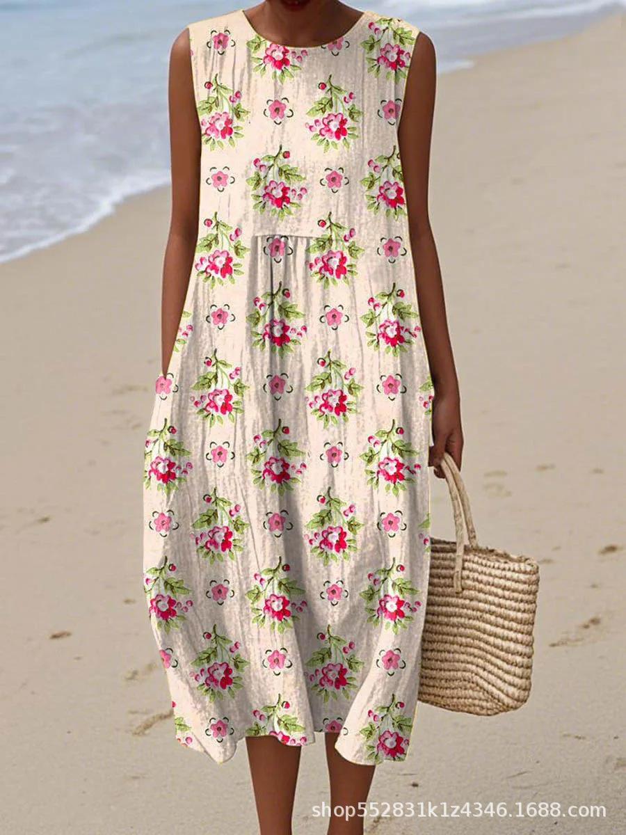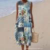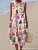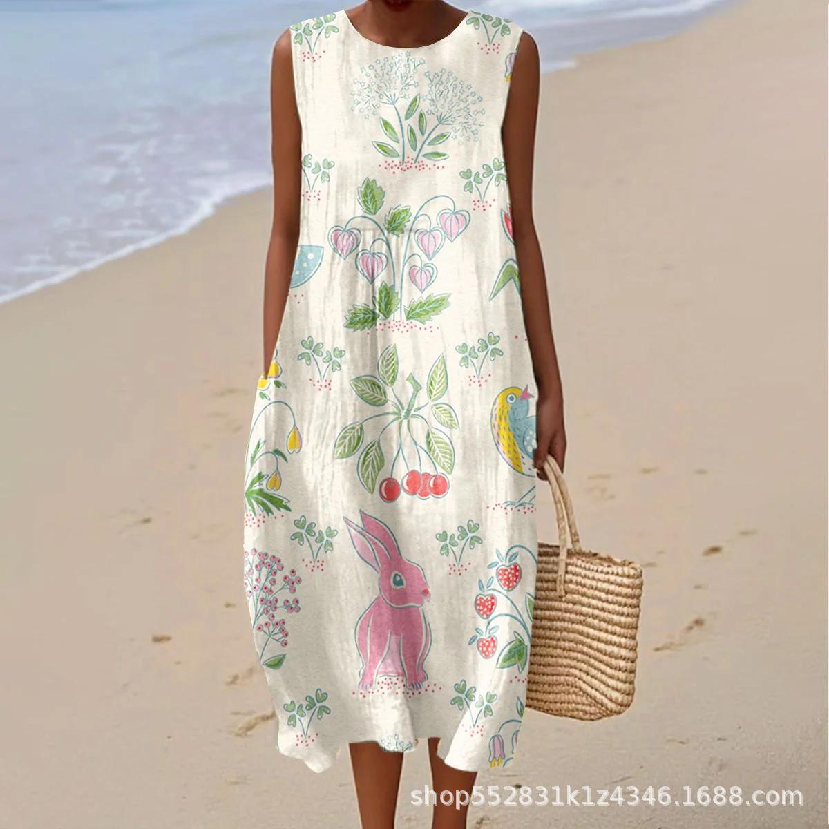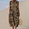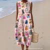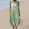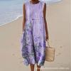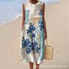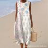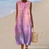 2025 Europeo y Americano Primavera y Verano Nuevo Sin Mangas Casual Estampado Elegante Vestido Largo Falda Casual Fresca Pequeña Ajuste Slim