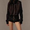 Otoño 2025 Nuevo Temperamento Chaqueta de Motocicleta Top Abrigo Corto Retro Americano Negro Mujer
