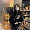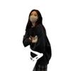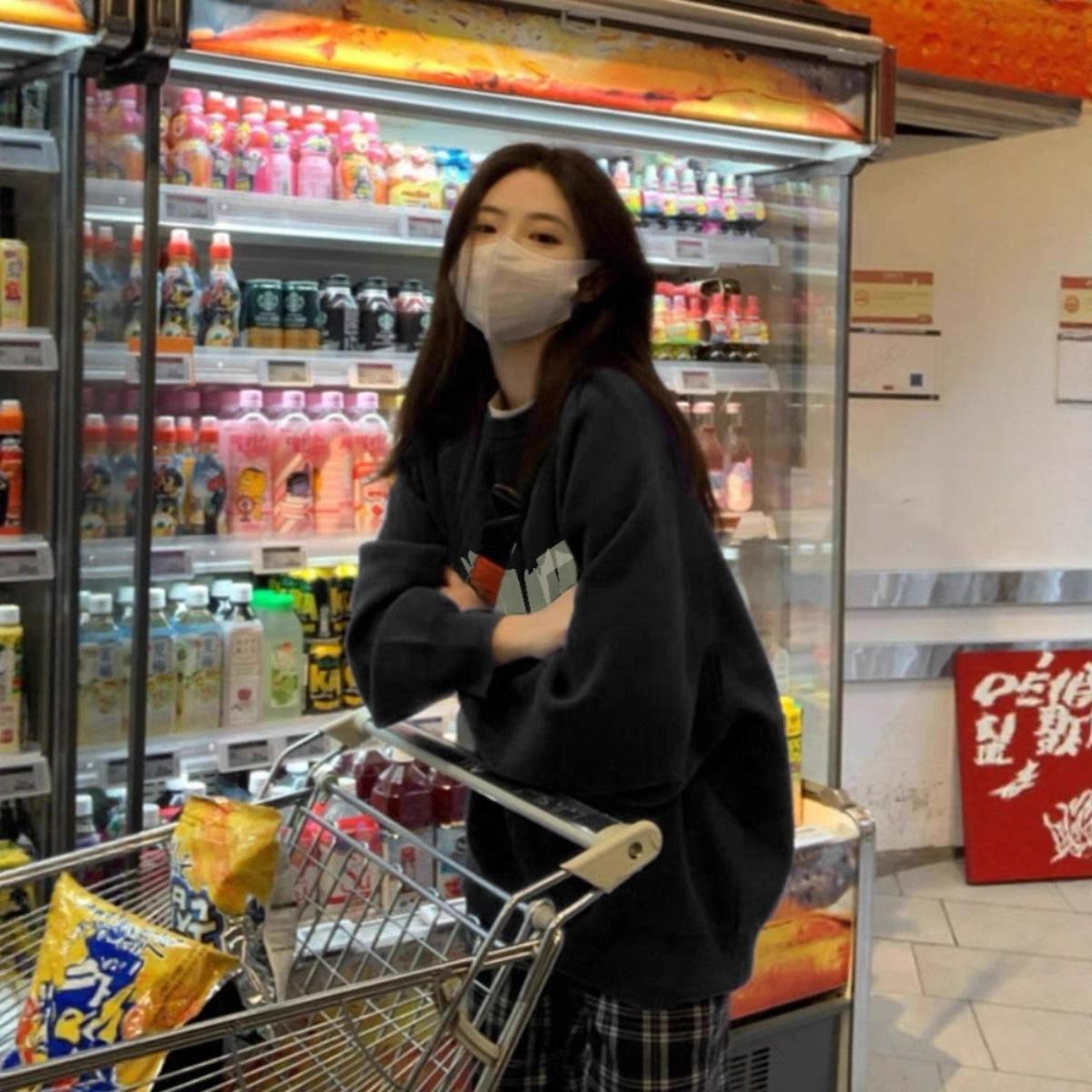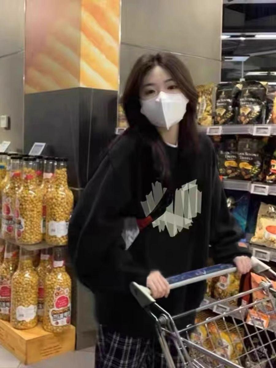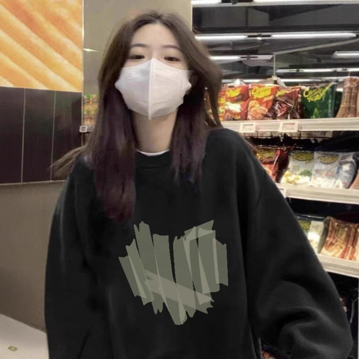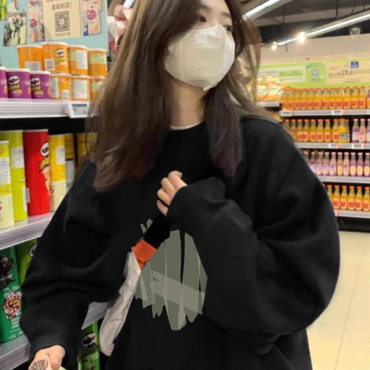 Sudadera Negra de Nuevo Estilo Caliente 2025 para Mujer Americana Peso Pesado Primavera y Otoño Estilo Delgado Petite Manga Larga Top Cuello Redondo para Mujer