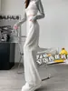 Pantalón de chándal recto gris para mujer Verano 2025 Nuevo Cintura alta Caído Primavera Otoño Petite Casual Pierna ancha Holgado