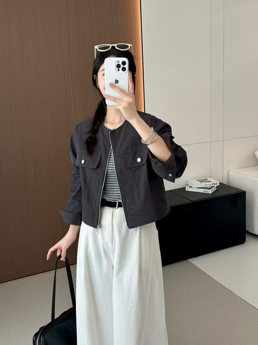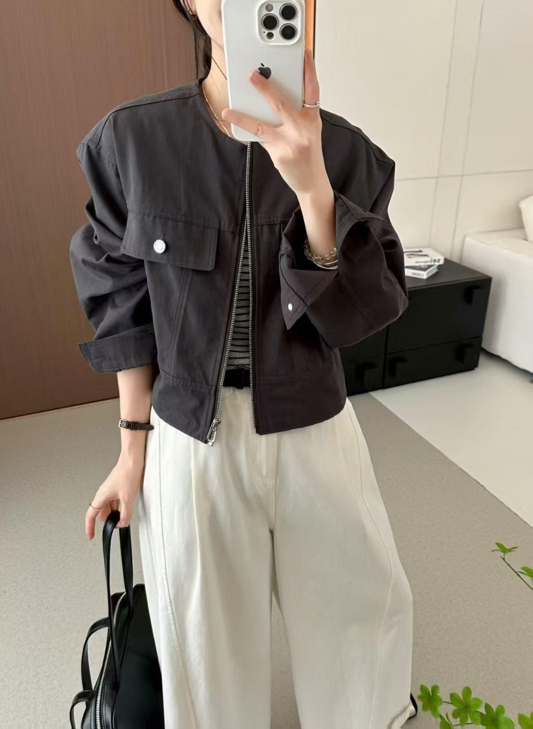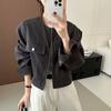 2025 Primavera y Otoño Nuevo Estilo Coreano Suelto Adelgazante Delgado Chaqueta Corta + Chaleco Mujer Petite Conjunto de Dos Piezas Trendy