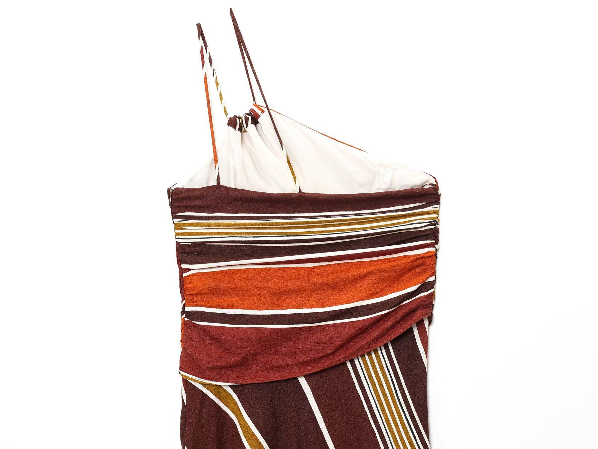 Moda transfronteriza europea y americana para mujer AliExpress vestido midi a rayas de moda asimétrico de un hombro más vendido