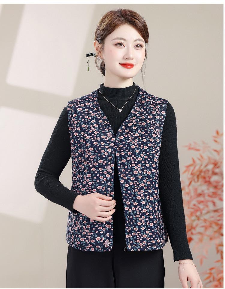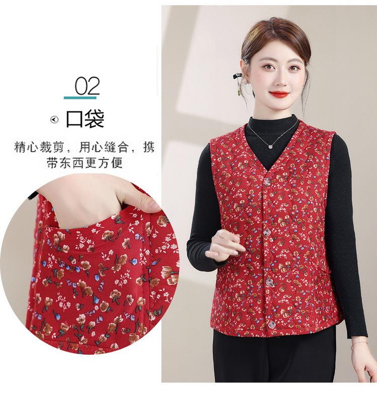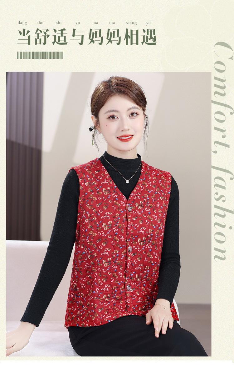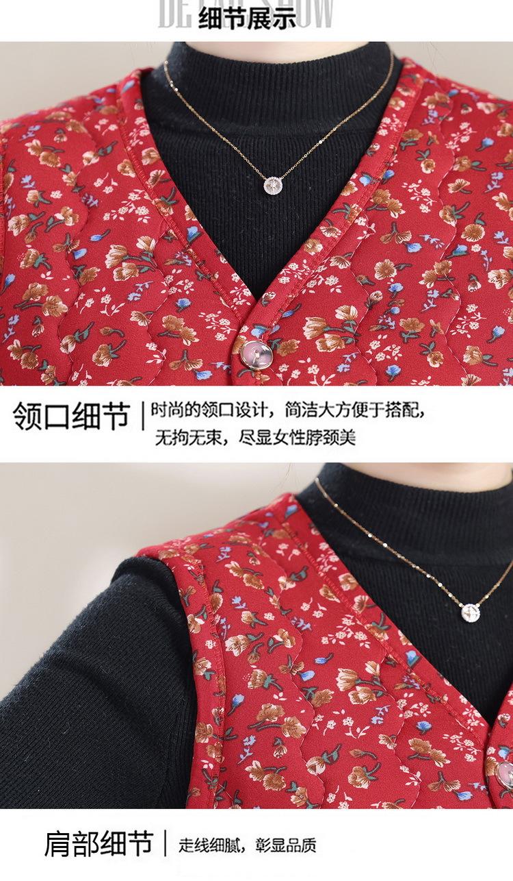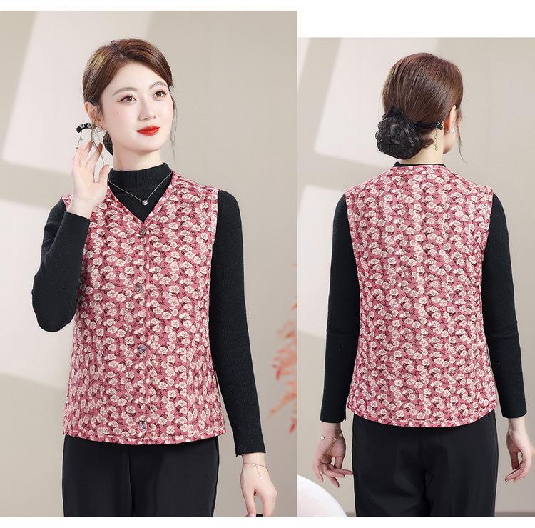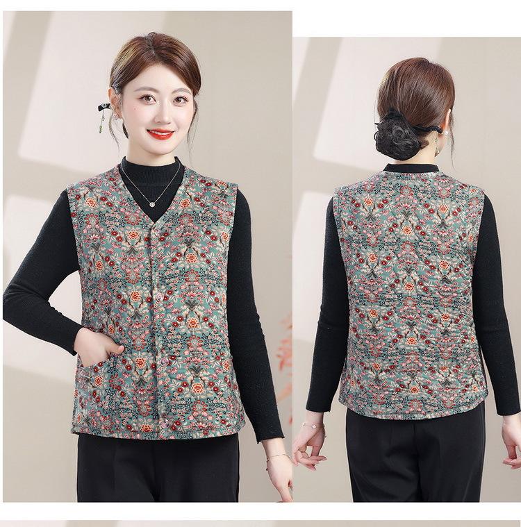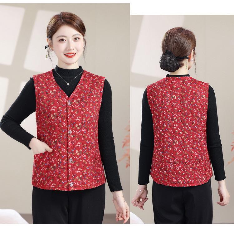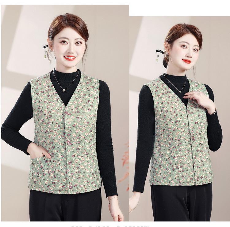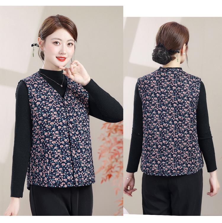 Chaleco para mujer de mediana edad y anciana para otoño e invierno, nuevo estilo, acolchado de algodón, cálido, forro floral, sin mangas, chaqueta, madre, moderno, chaleco pequeño